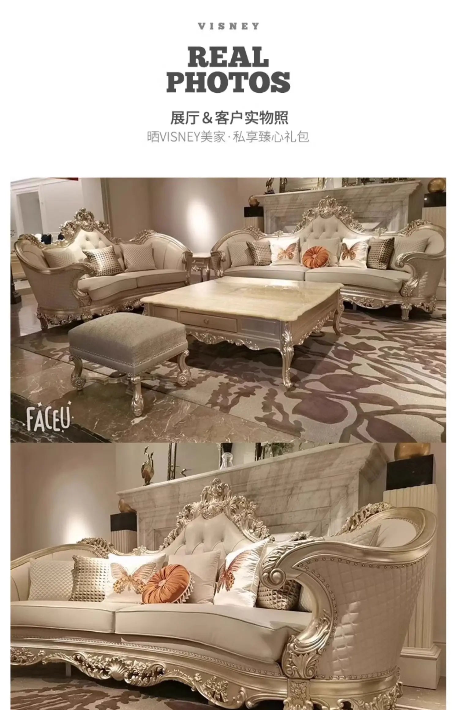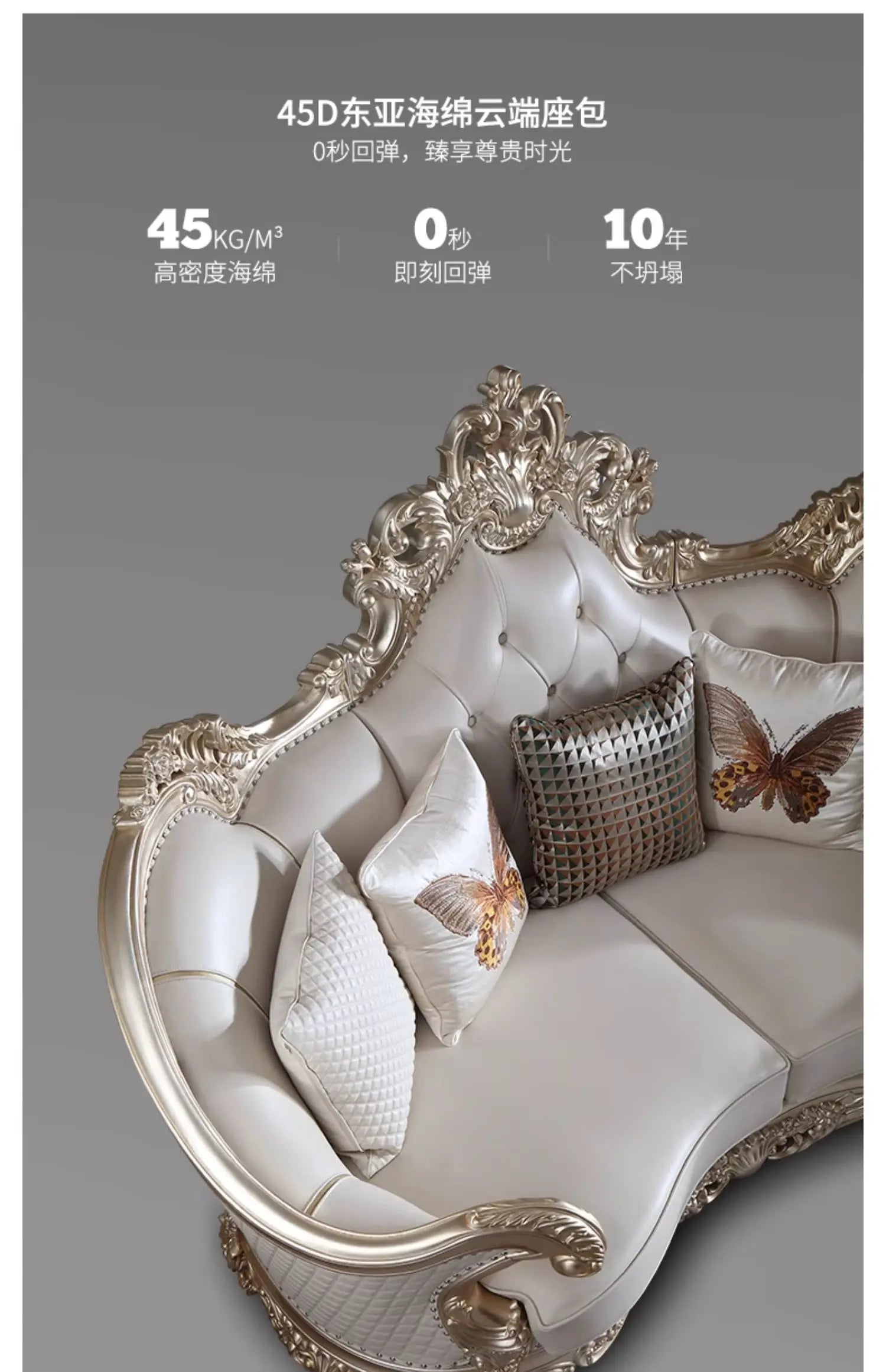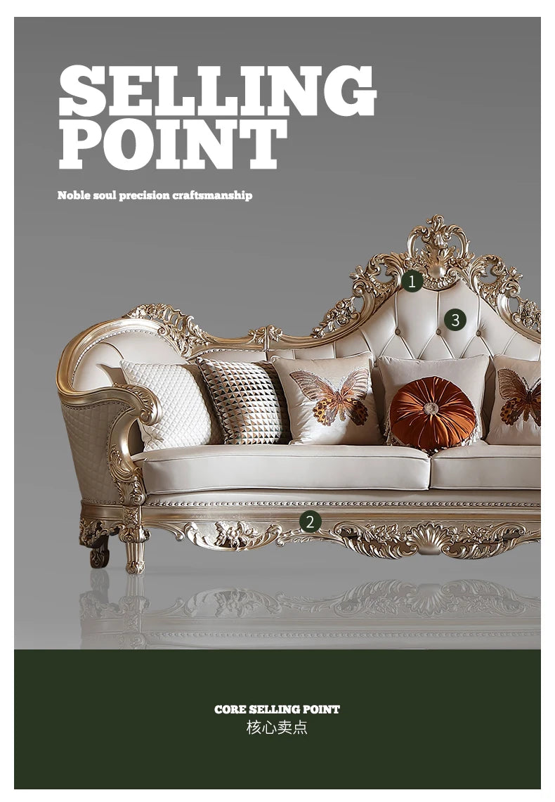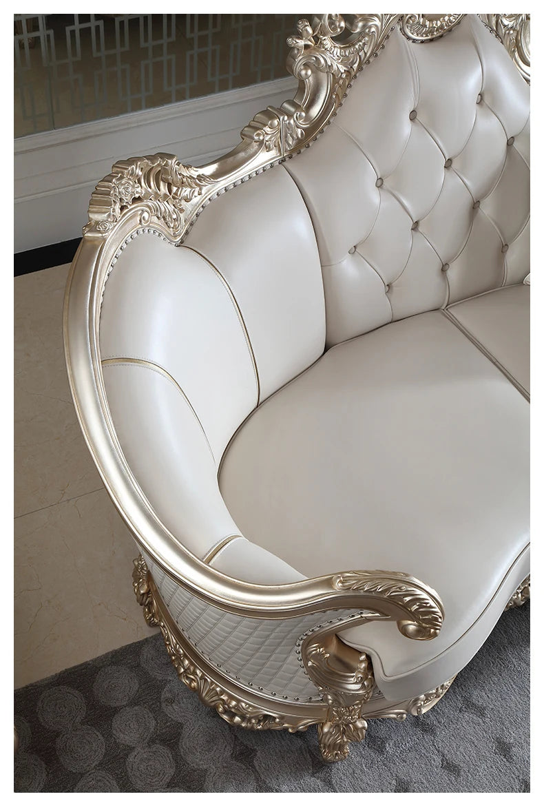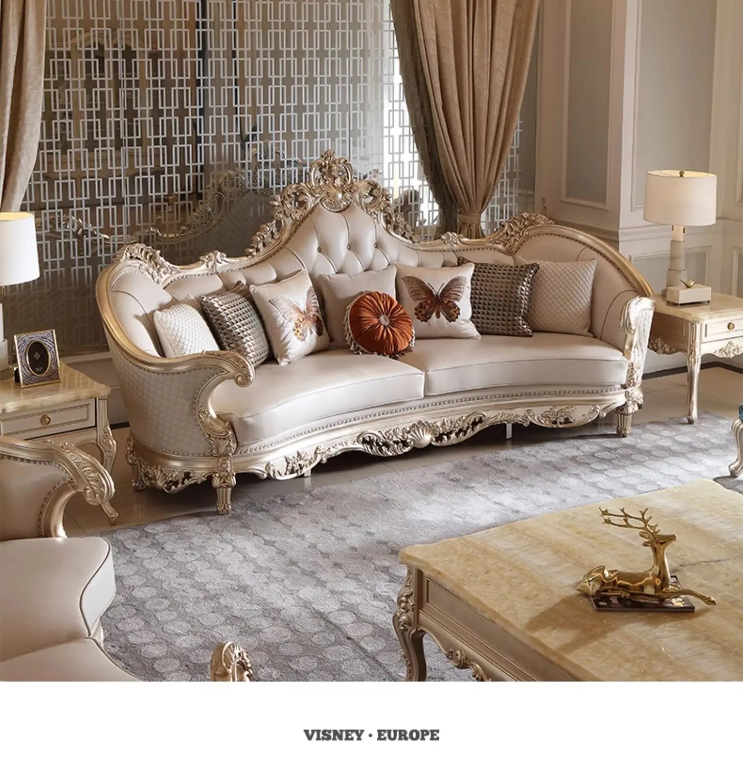 Leather Living Room Sofas Luxury European Beige Wooden Curved Modern Couch Double Lounge Designer Canape Salon Furniture
