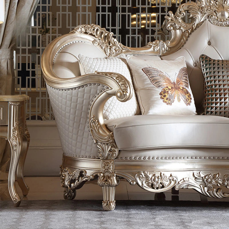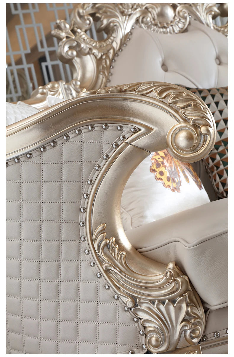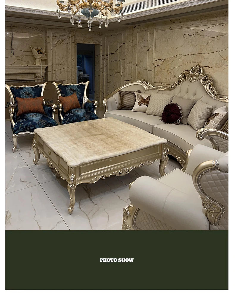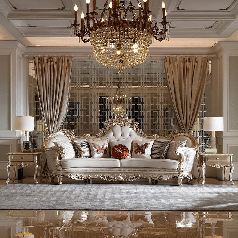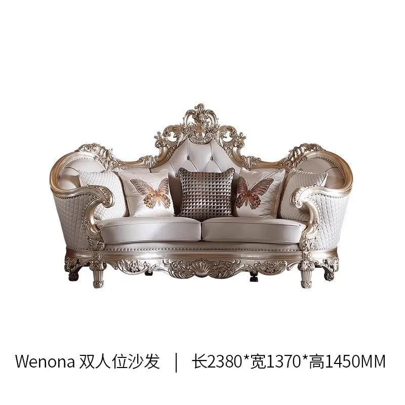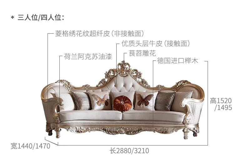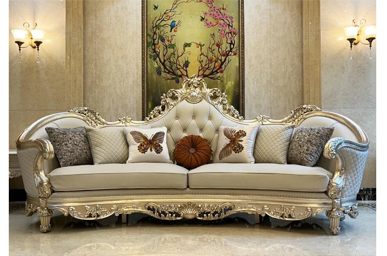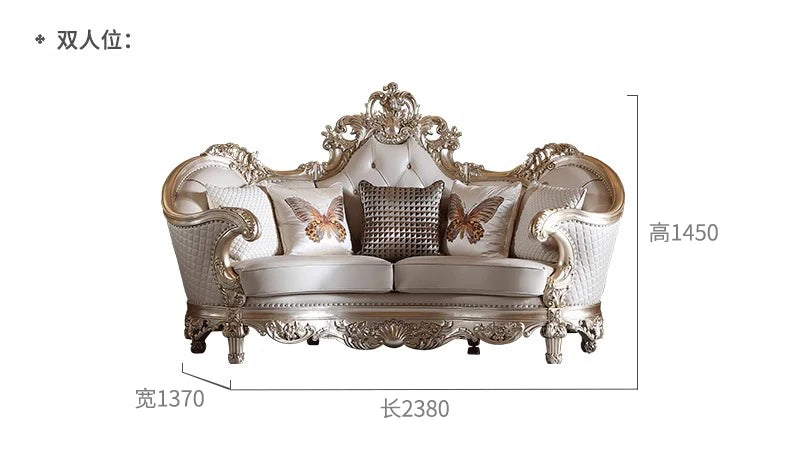 Leather Living Room Sofas Luxury European Beige Wooden Curved Modern Couch Double Lounge Designer Canape Salon Furniture
