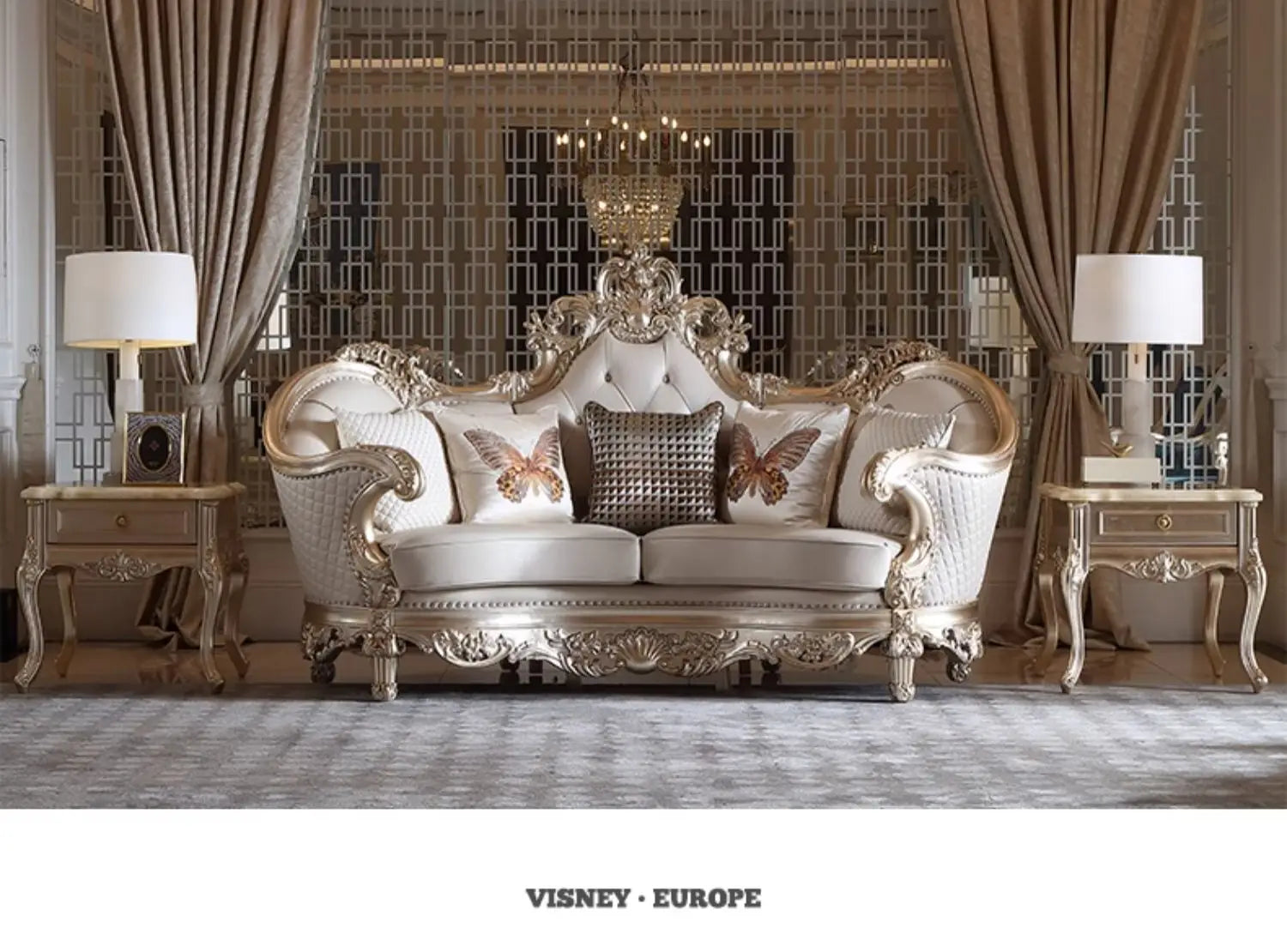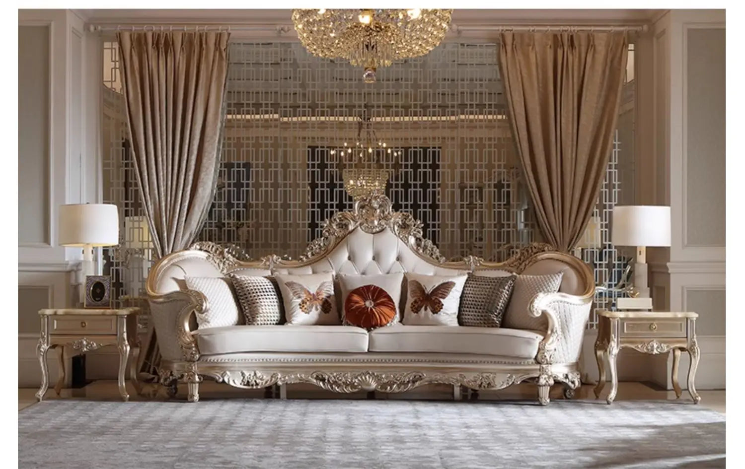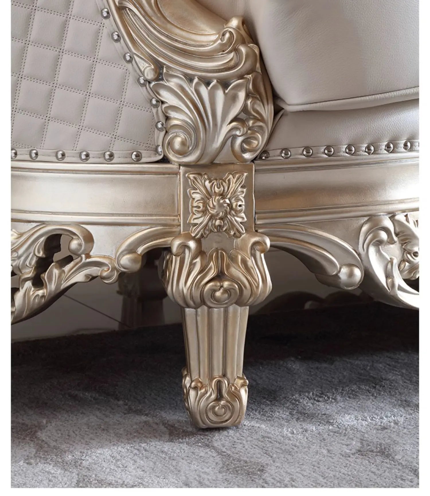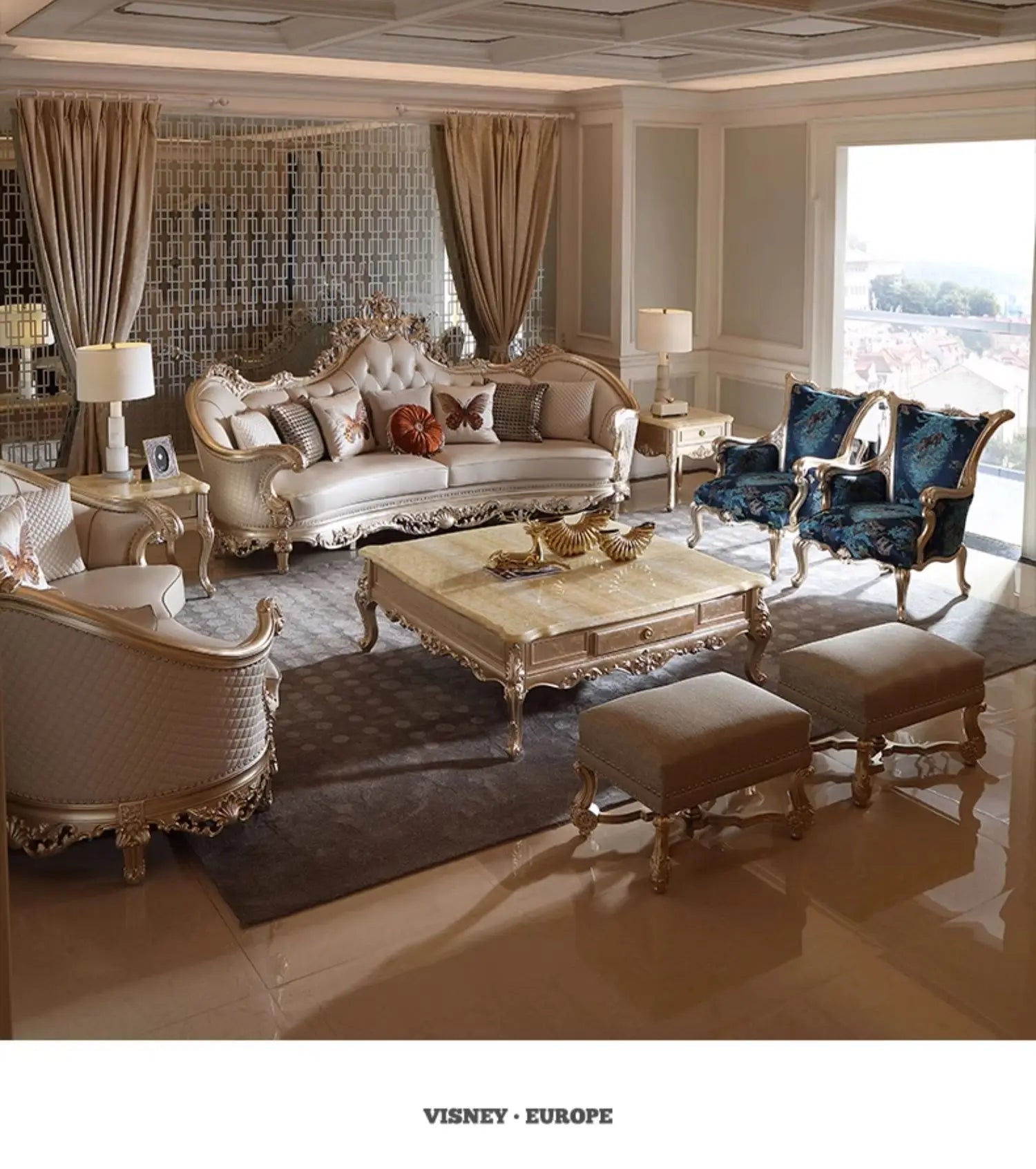 Leather Living Room Sofas Luxury European Beige Wooden Curved Modern Couch Double Lounge Designer Canape Salon Furniture