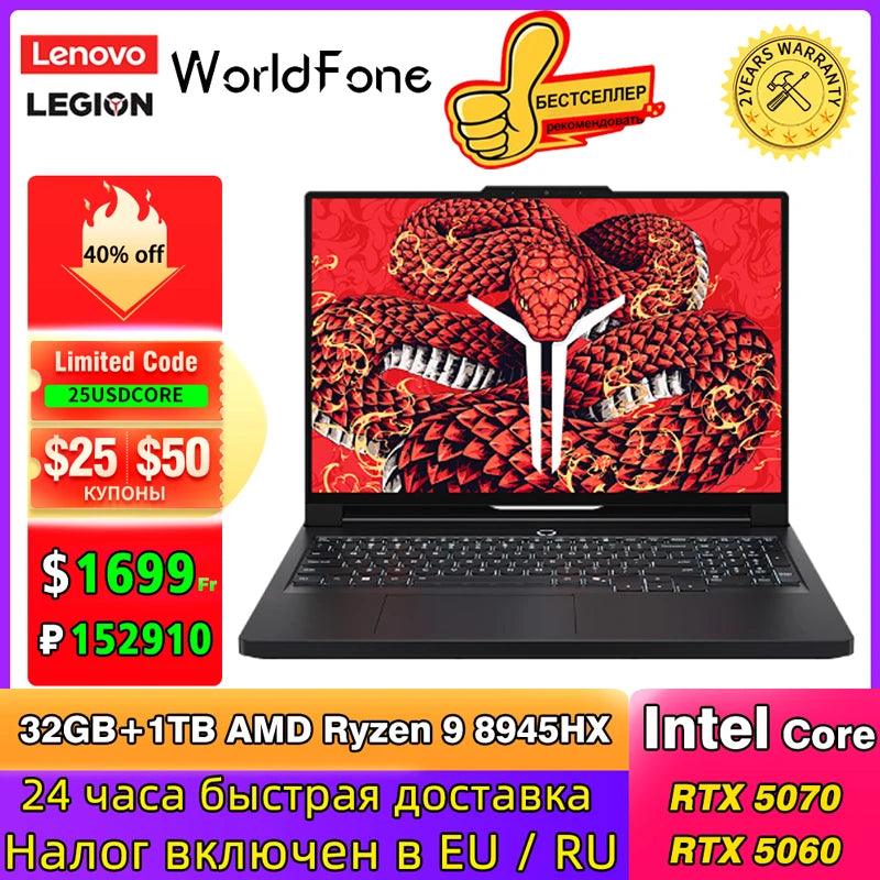 Lenovo 2025 NEW LEGION R9000P Gaming Laptop Ryzen 9 8945HX GeForce RTX 5060/5070 RAM 32GB 1T SSD 16-inch 240Hz Game Notebook PC