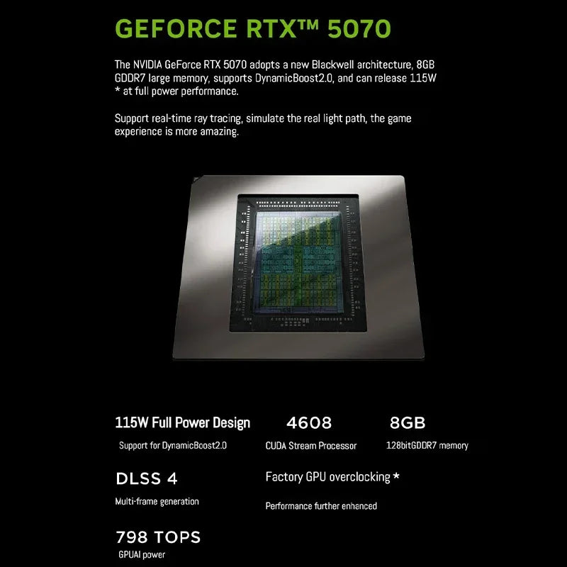Graphics card chips:NVIDIA® GeForce RTX™ 5070