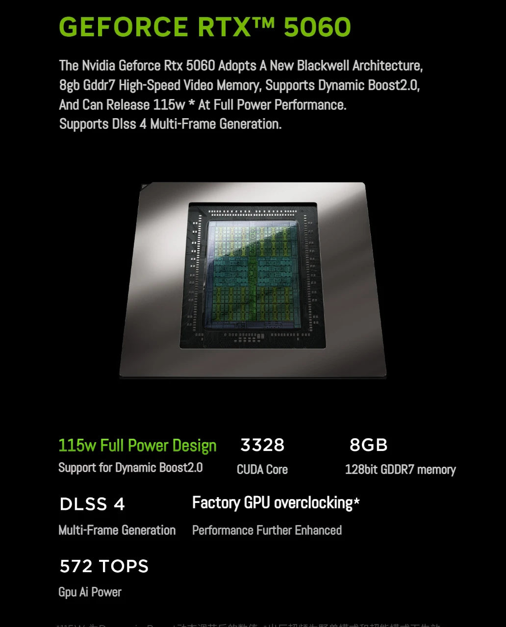 Graphics card chips:NVIDIA® GeForce RTX™ 5060