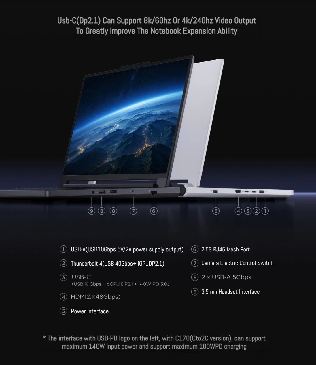 Data interface:USB-C x 1 + Thunderbolt 4 x 1 + USB-A x 1 + USB-A x 2