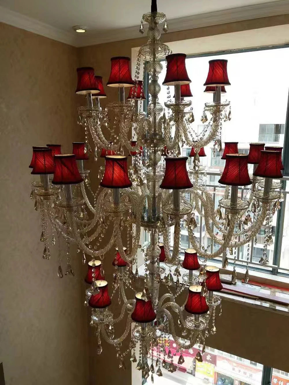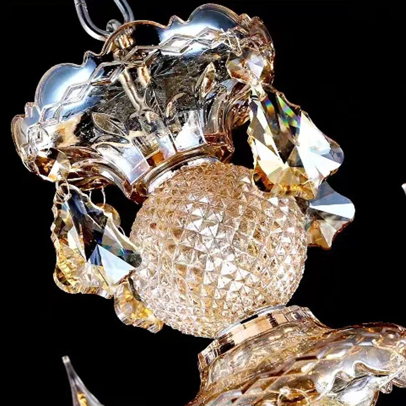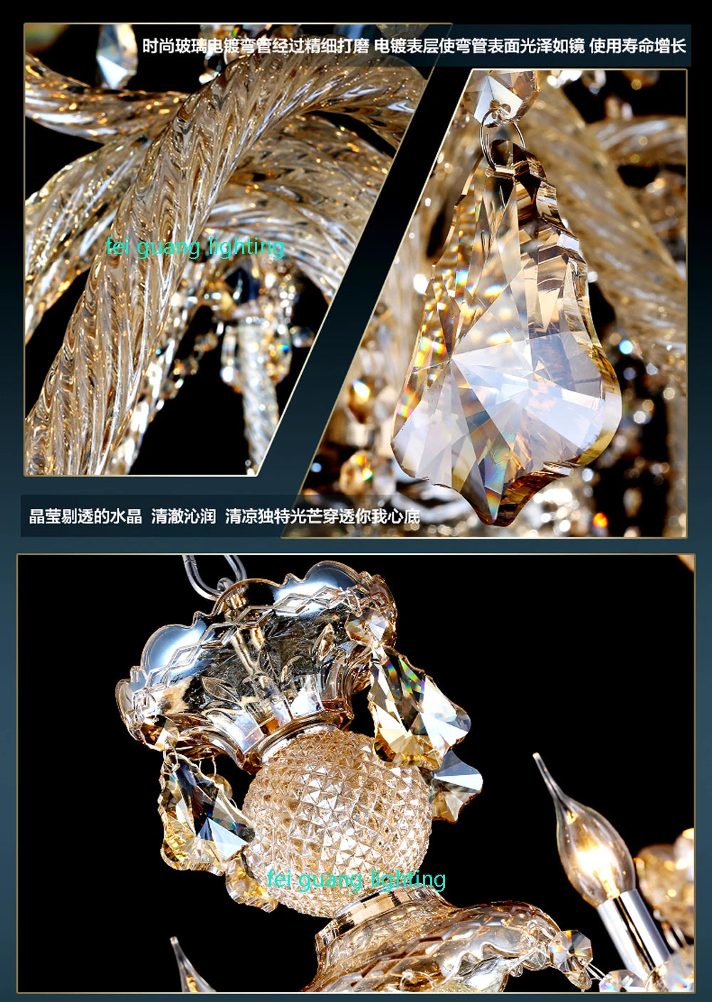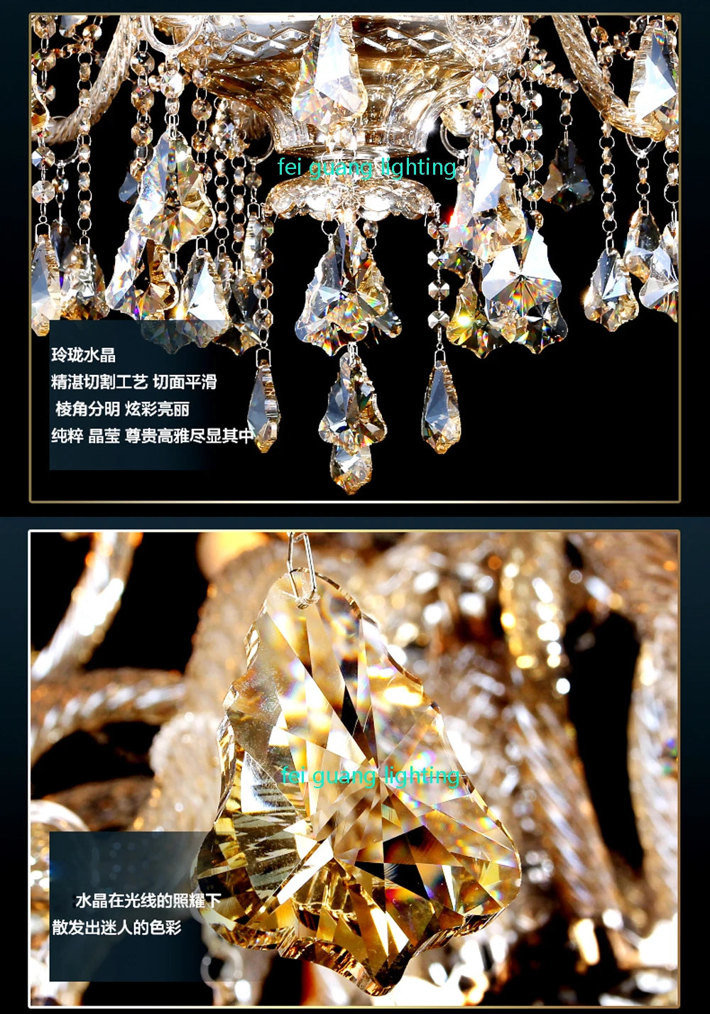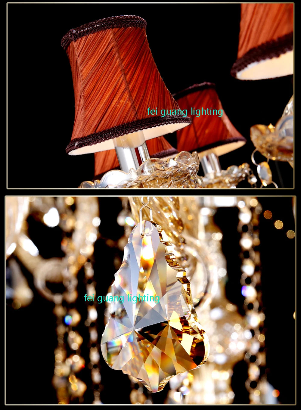 Light Luxury Cognac Color Crystal Chandelier For Stairway Sitting Room Big Chandelier For Staircase Iron Hanging Lamp Lustre Led