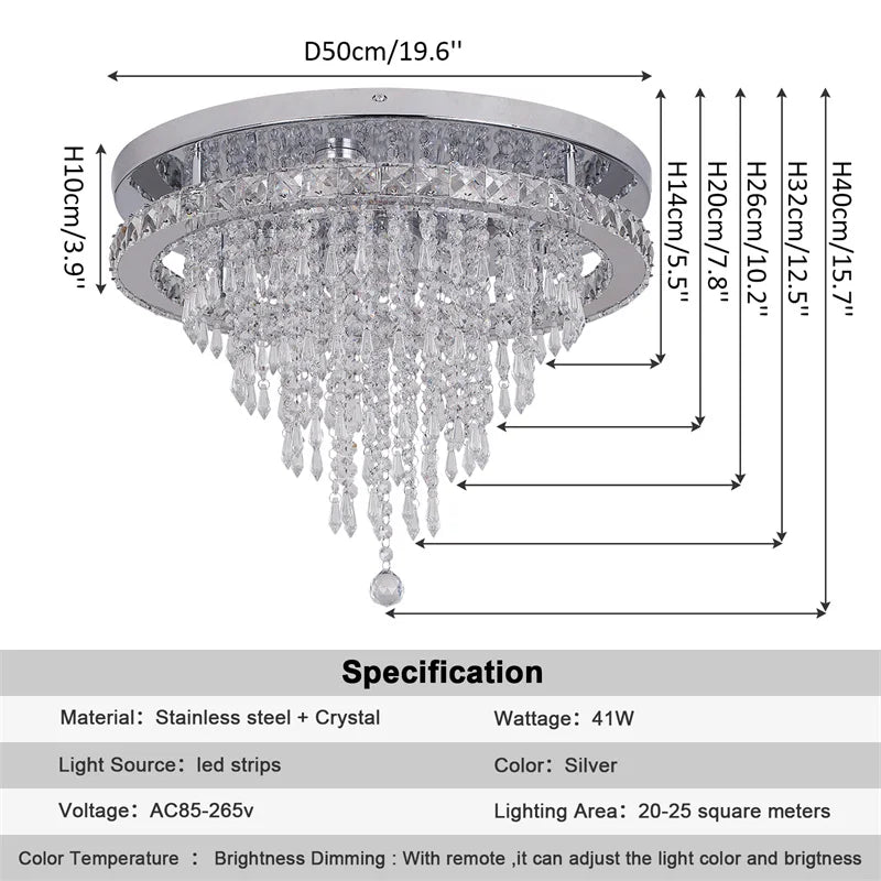 Luxury Crystal Modern LED Ceiling Chandelier Light Remote Dimming Round Ceiling Lamp for Home Decoration Indoor Hanging Lamps