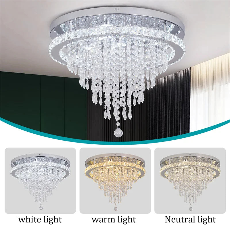 Luxury Crystal Modern LED Ceiling Chandelier Light Remote Dimming Round Ceiling Lamp for Home Decoration Indoor Hanging Lamps