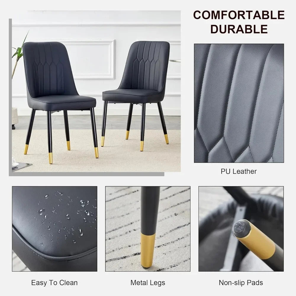 - 【4 Comfortable Dining Chairs】This modern dinner table set includes 4 ergonomically designed chairs with straight metal legs. Ergonomic curved backrest, soft padded seat and premium leather provide maximum comfort, makes you feel really soft when you sit on this modern dining chair, perfect for socializing and enjoying meals.