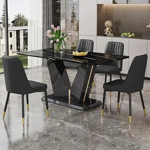 - 【Modern Dining Room Table Set for 4】Our black dining table set for 4 brings a blend of style and function to any space, provides an elegant touch to your dining or kitchen area, perfect for home kitchen, apartment, office, restaurant, meeting office, lounge, hallway and so on.
