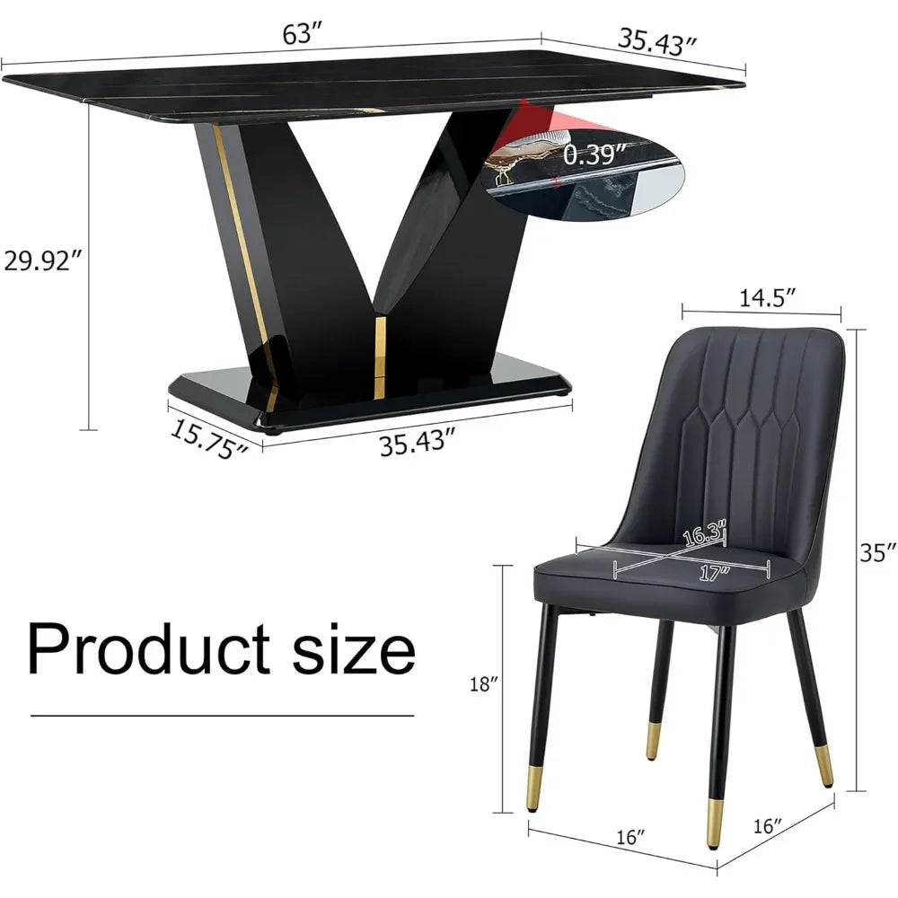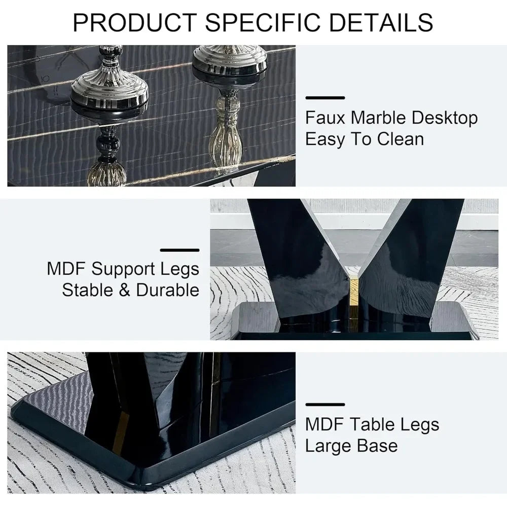 - 【Stable Structure and Fashionable】The faux marble table boasts a durable, 0.4-inch tempered glass top with a black marble finish, supported by robust and eco-friendly V-shaped MDF base, represent "Victory" and "Good Luck", ensures the kitchen table and chair set both style and longevity, ready to adorn your dining space for years to come.