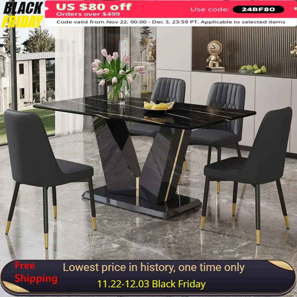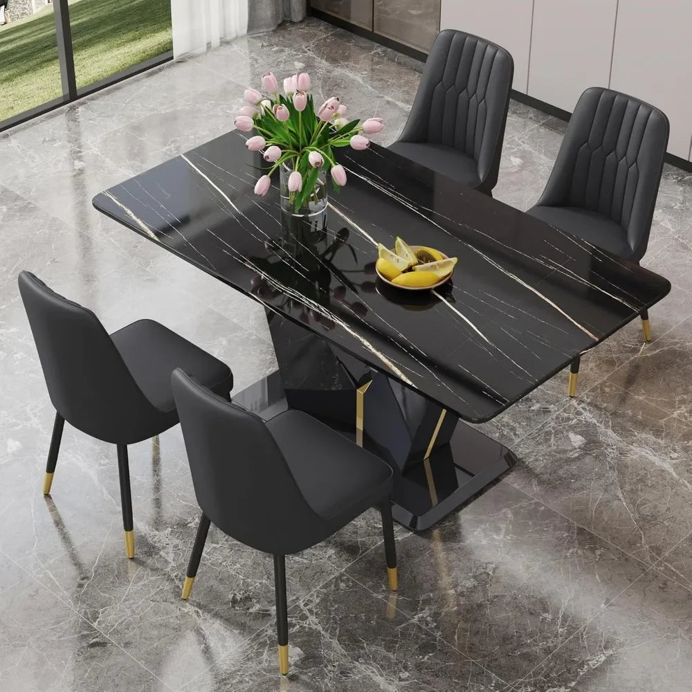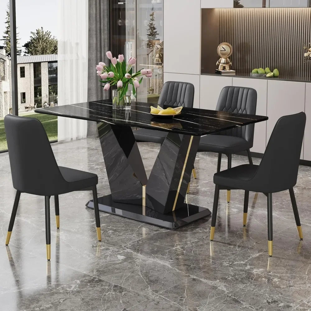 Marble Dining Table Set,Modern Dinings TablewithMDF Base Dinings Room Table and 4 Upholstered Metal Leg Chairs,Dining Room Sets