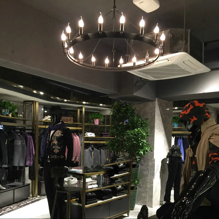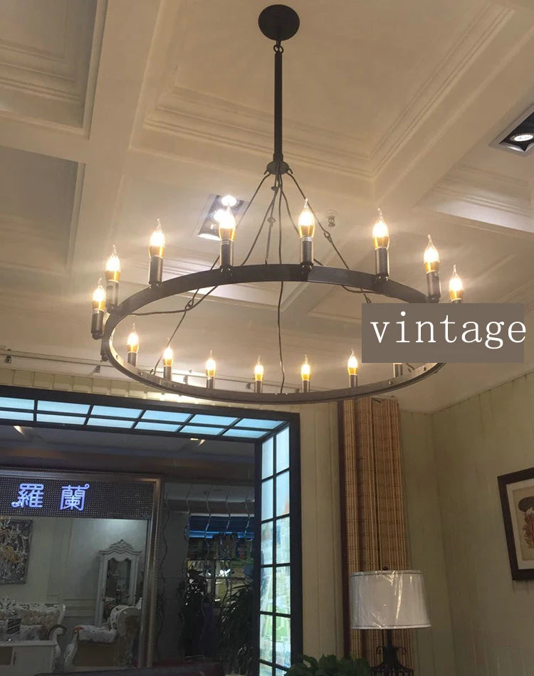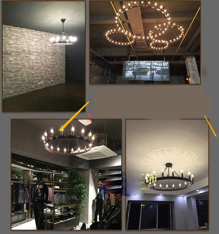 Modern American Retro Iron Pendant Lamp Vintage Industrial Led Droplight Round Cafe Restaurant Bar Knight Candle Chandelier