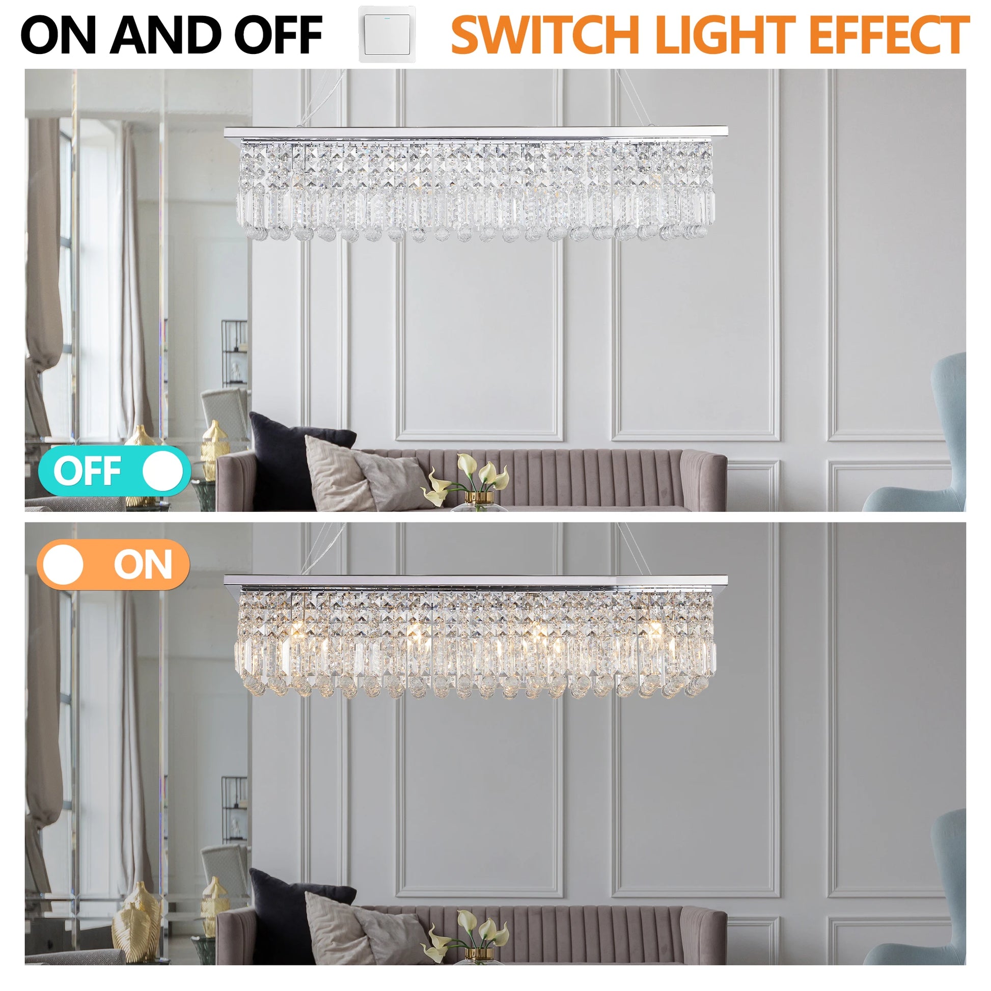 Modern Crystal Chandelier for Dining Room 8-Light Rectangle Raindrop Chandelier Contemporary Rectangular Fixture Pendant Light