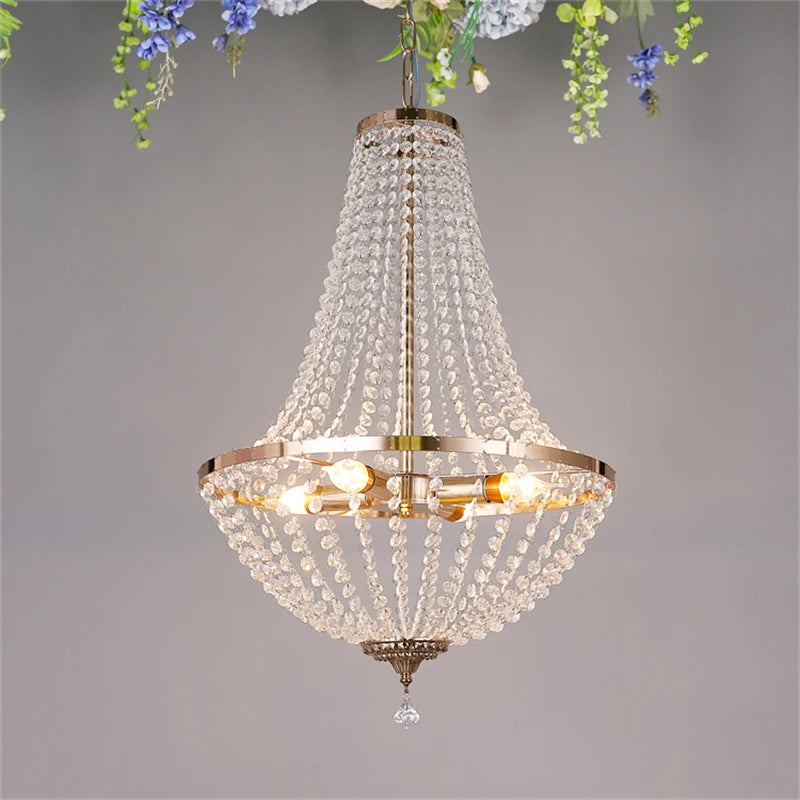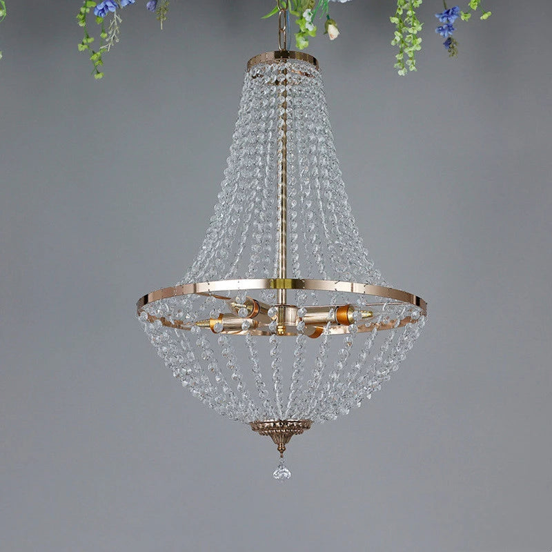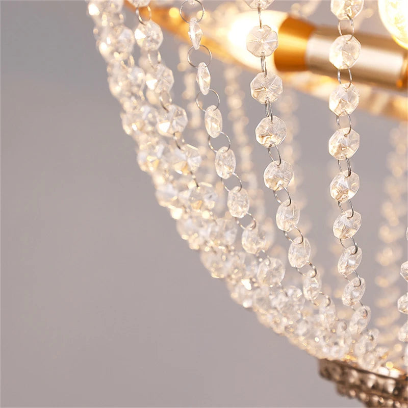 Modern Crystal Chandelier Retro Living Room Pendant Lighting Gold Finish Ceiling Light Fixture for Dining Room Foyer Bedroom