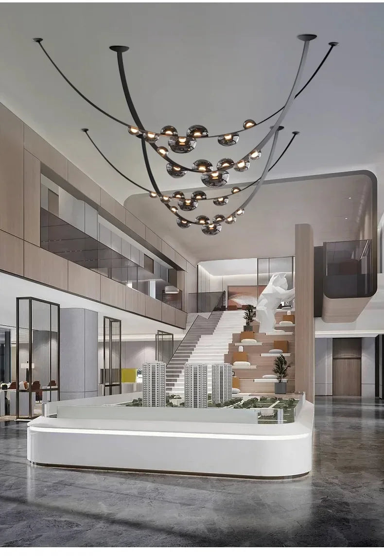 Modern Minimalist Restaurant Gray Decorative Chandelier Nordic Art Designer Villa Duplex Suspended Living Room Staircase Chandel