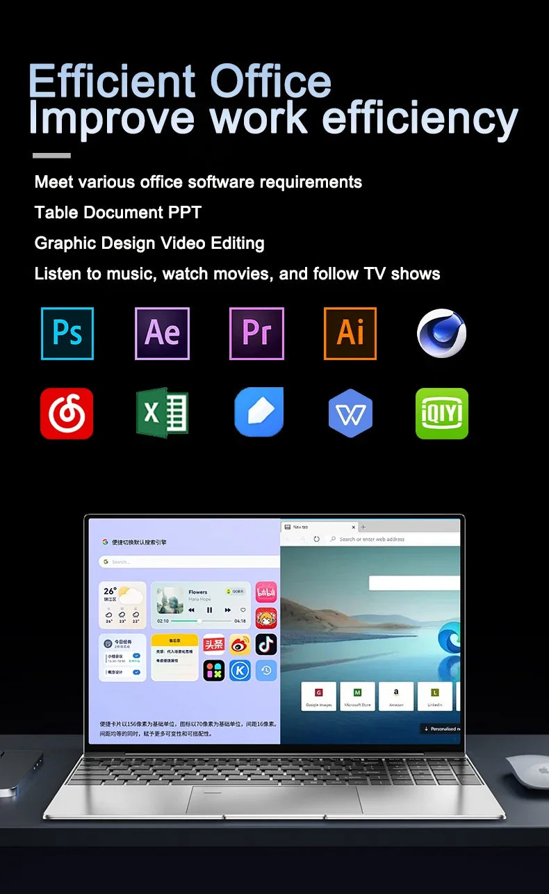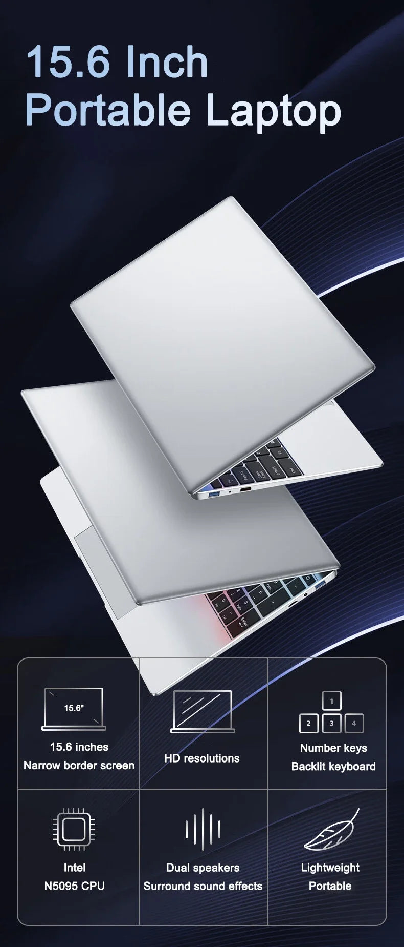 New 15.6" Inch Laptop Windows 11 Pro N5095 1920x1080 32GB+2048 GB Backlit Keyboard Portable Office Entertainment Laptop