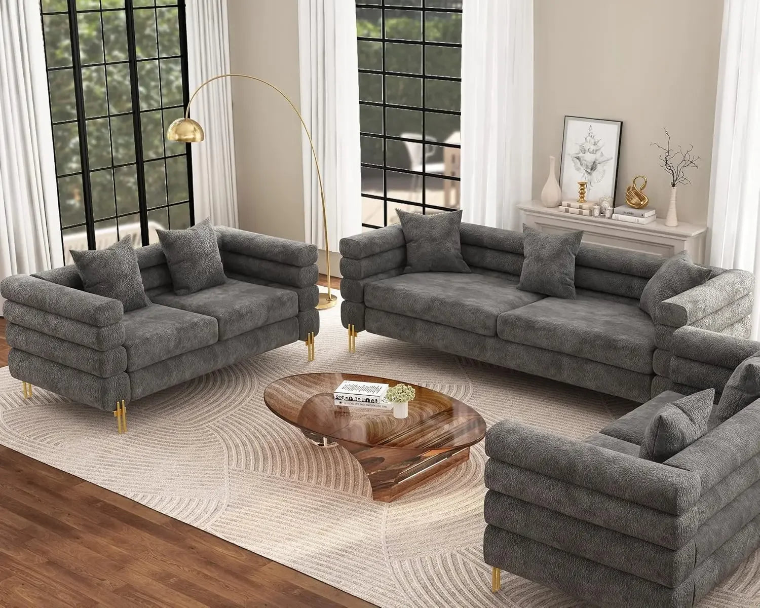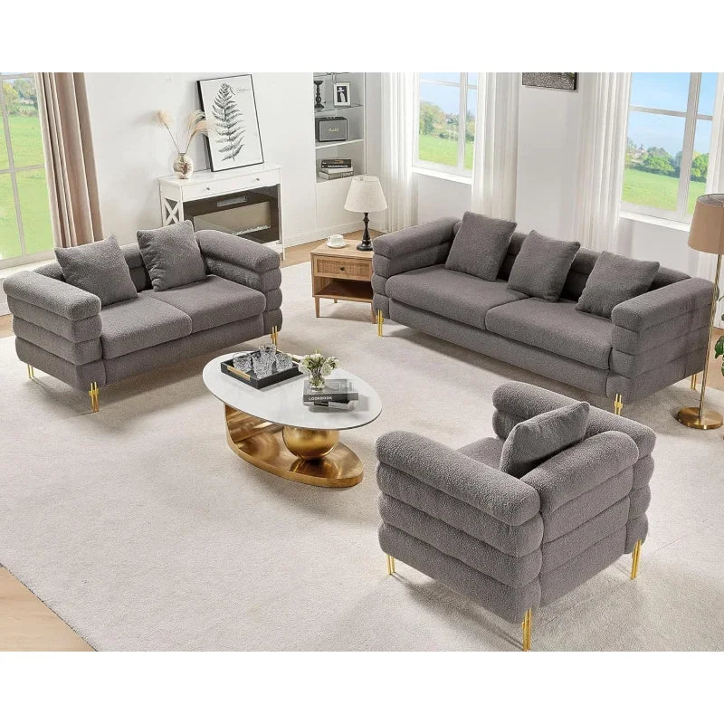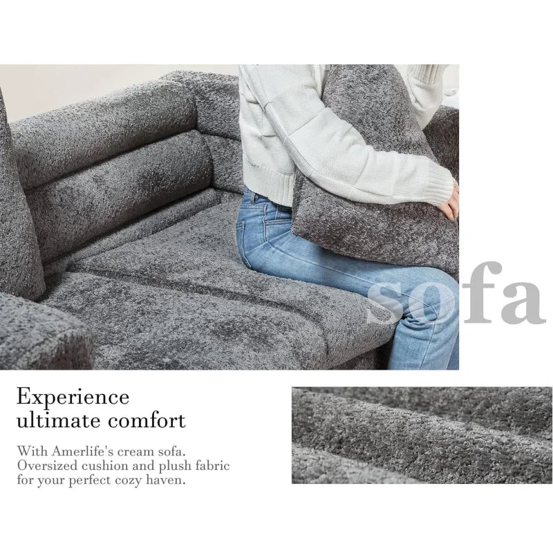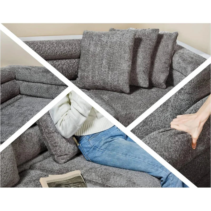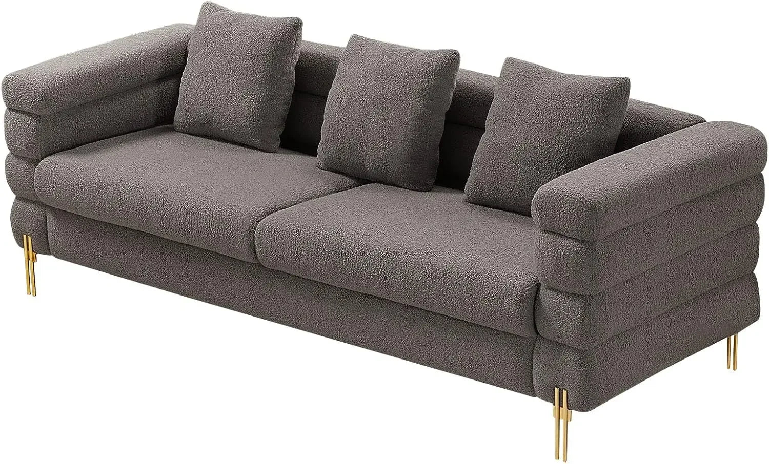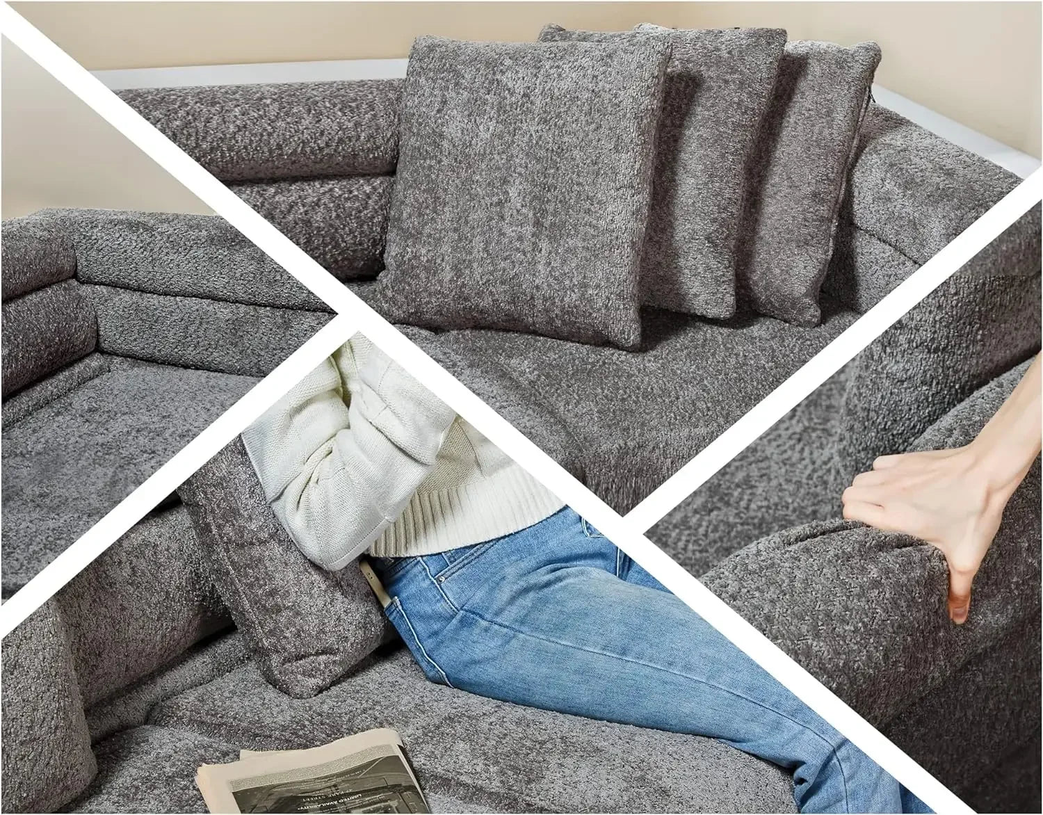 Oversized sofa-85 inch sofa couch, 3 seater comfy bouclé deep seat sofa for living room-Grey