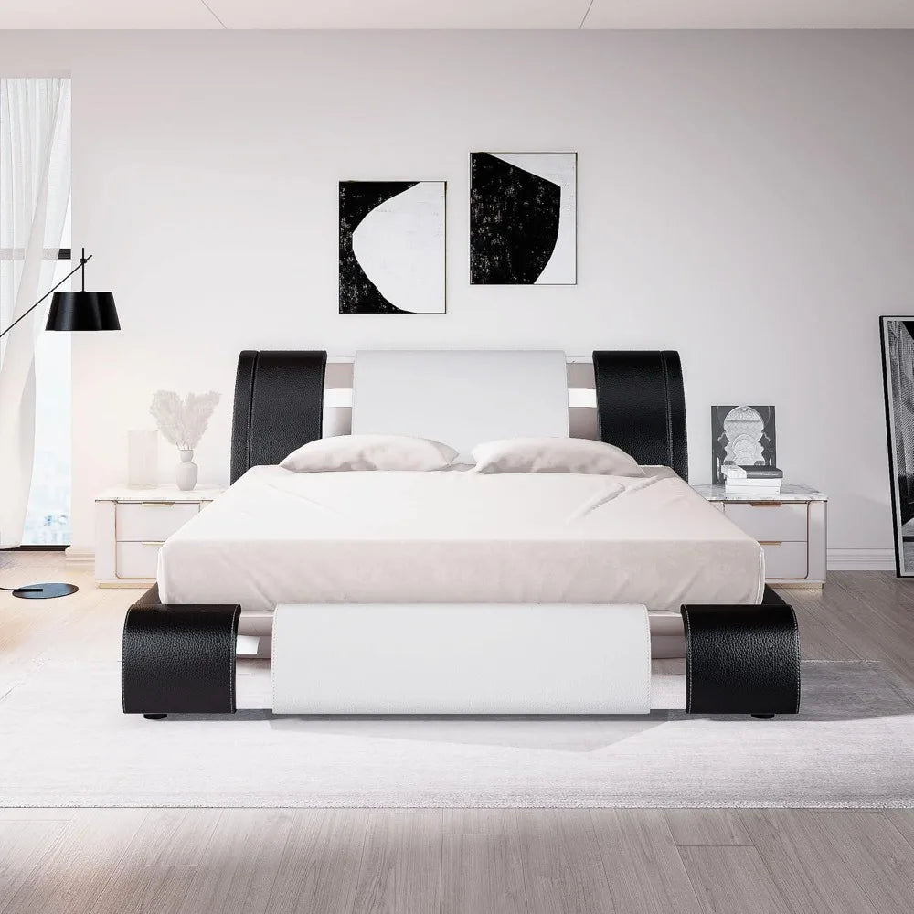 - All-Round Design: This chic platform bed frame, upholstered by lasted leather, has all-around soft surface with no sharp edges, which can protect your beloved ones