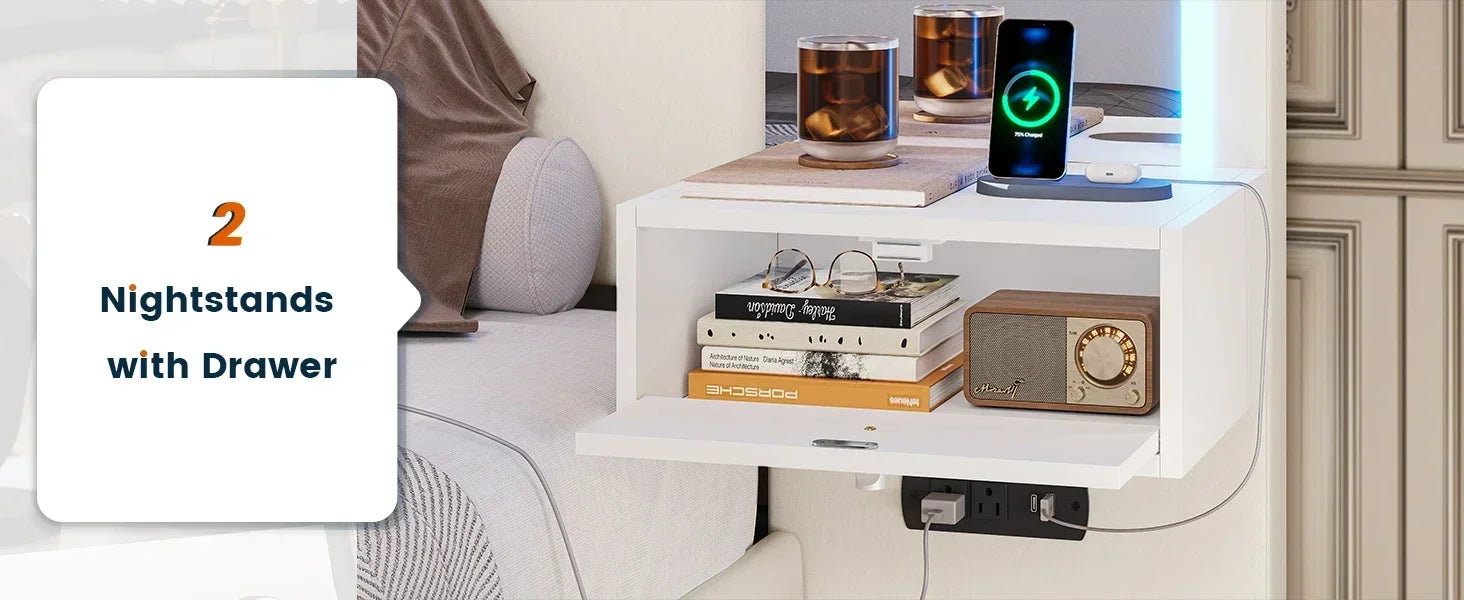 1 Storage Drawers 2 2-Outlet & 2 USB Ports 3 LED Lights