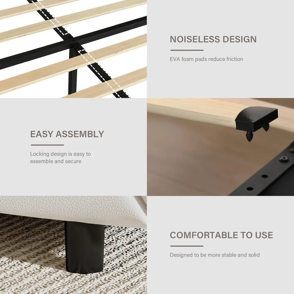 - 【Stable & Noise-free】The queen bed frame with storage drawer is made of durable metal frame and wooden slats, and the floor-standing design makes the bed more solid without springs. The silent foam strips on the bed frame can eliminate friction noise and ensure your sleeping environment