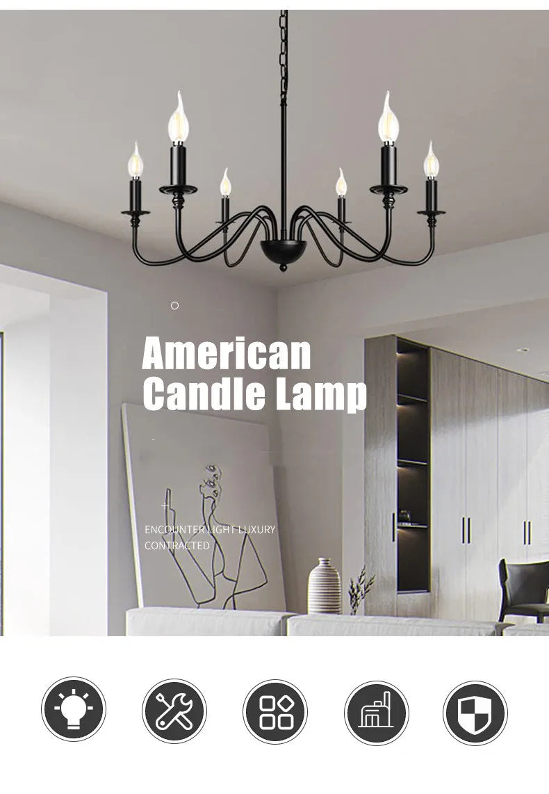 Retro Loft Living Room Chandelier Lighting E14 Vintage American Style Black/Gold Ceiling Chandelier Household Dining Room Light