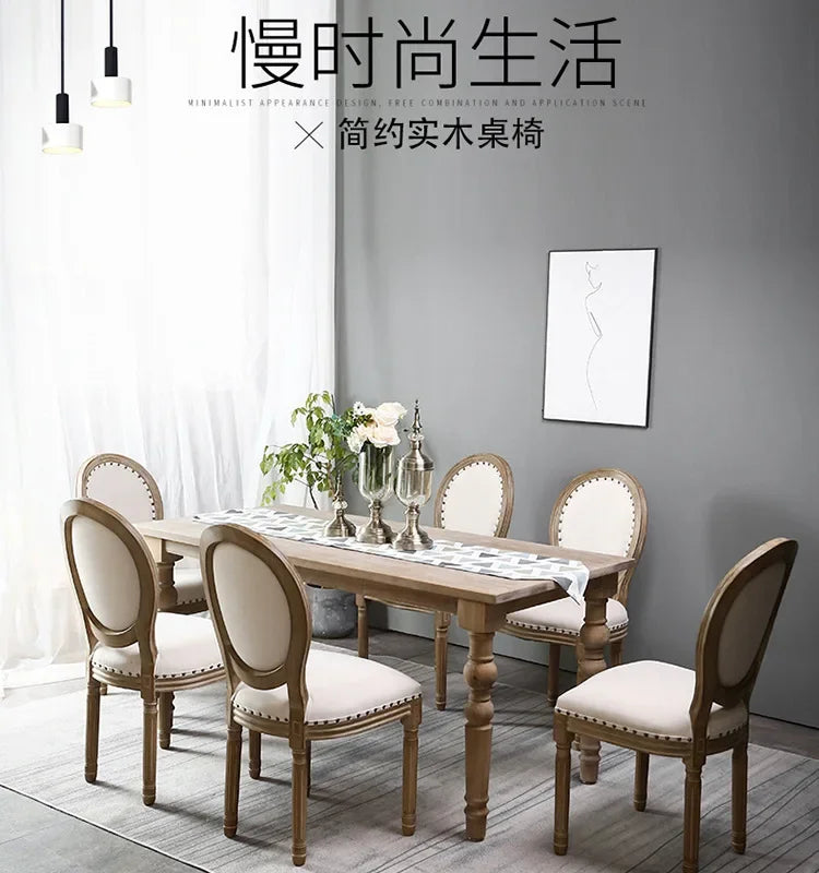 Retro Rattan Dining Chair Solid Wood French Chair Mobile Cafe Floor Modern American Country Leisure Chairs Home Furnitures