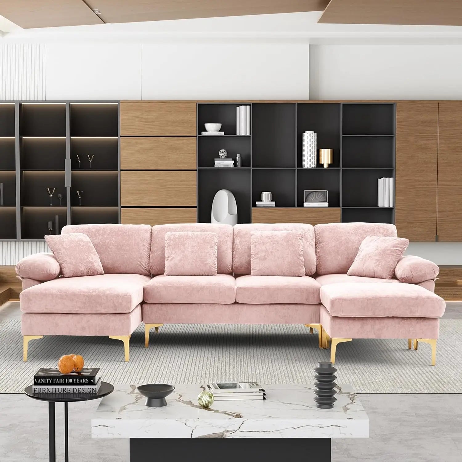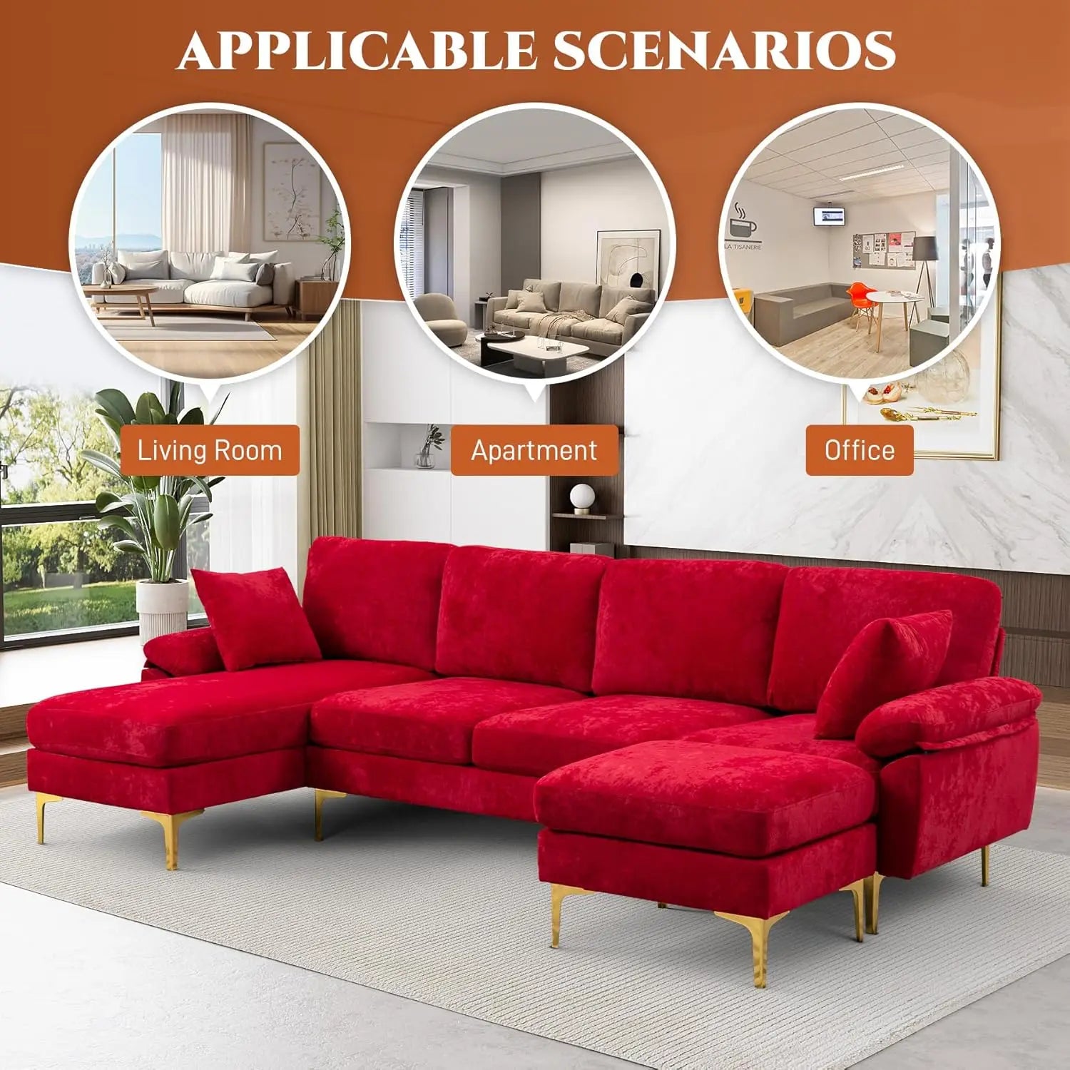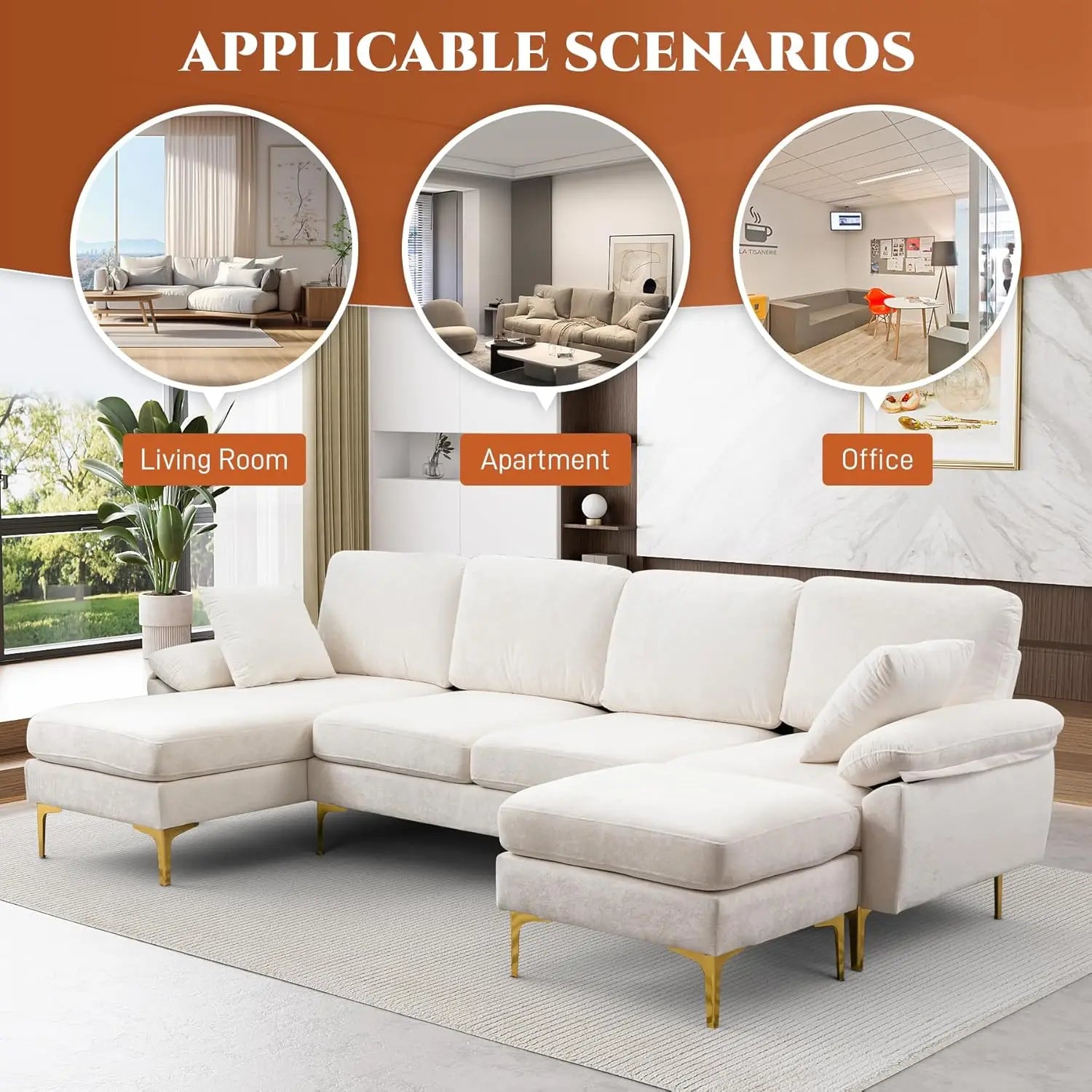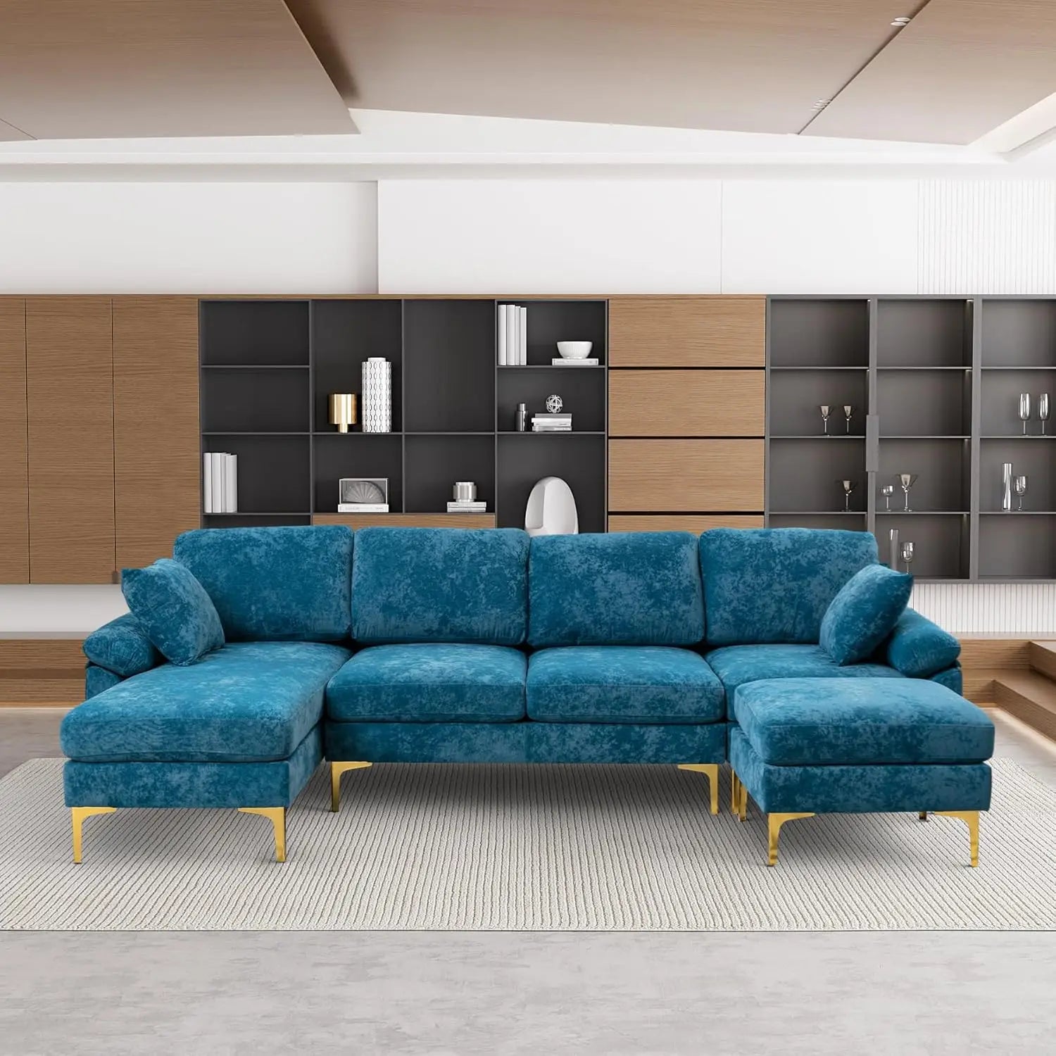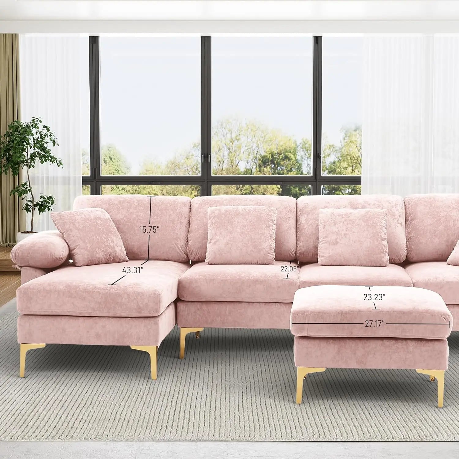 U-Shaped Sectional Sofa Couch, 4 Seat Sofa Set for Living Room, Convertible L-Shaped Velvet Couch Set with Chaise Lounge