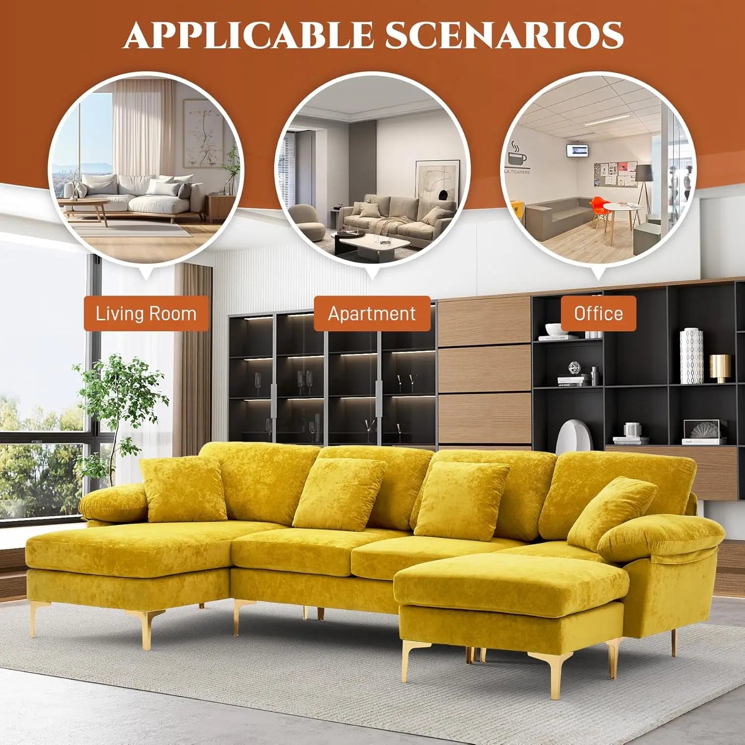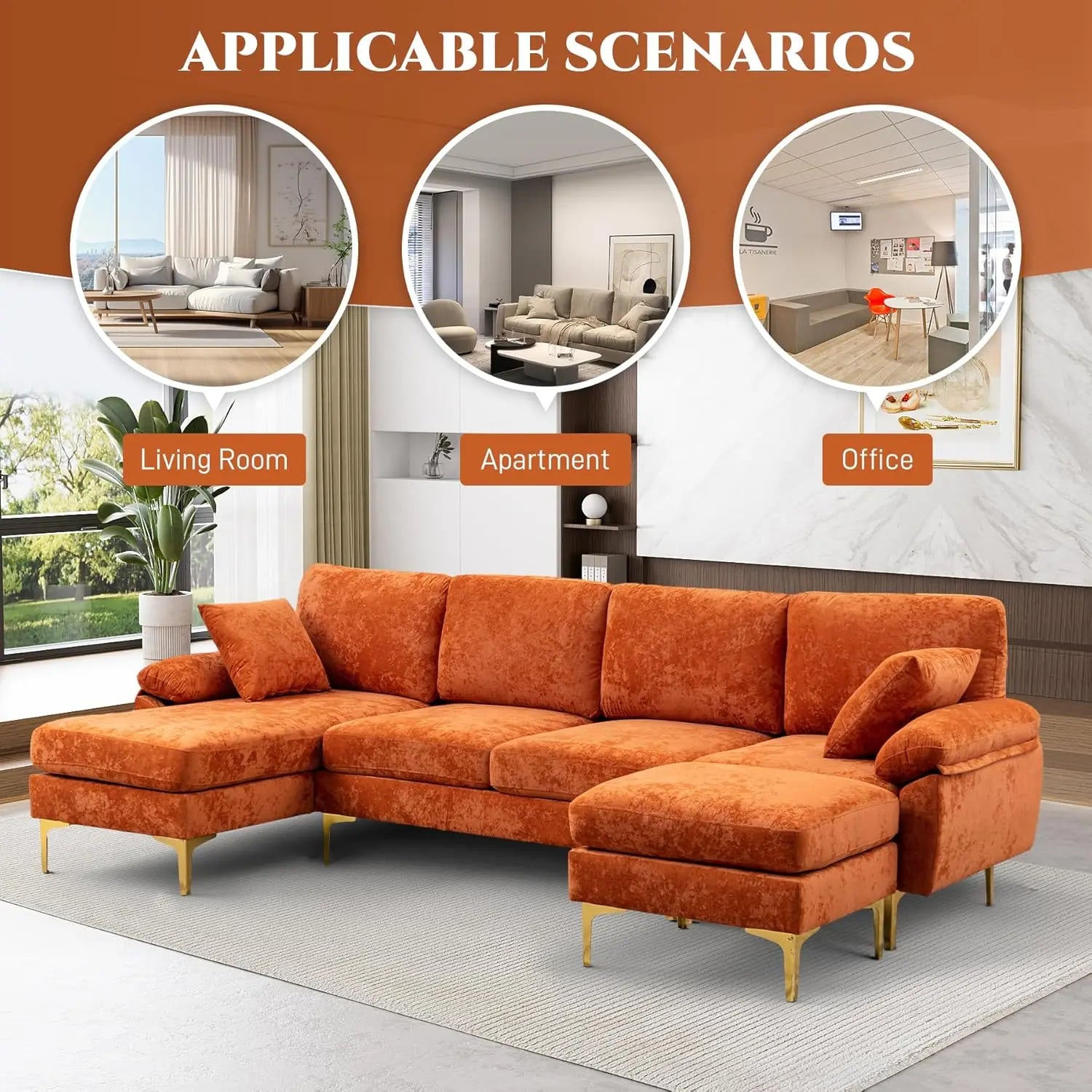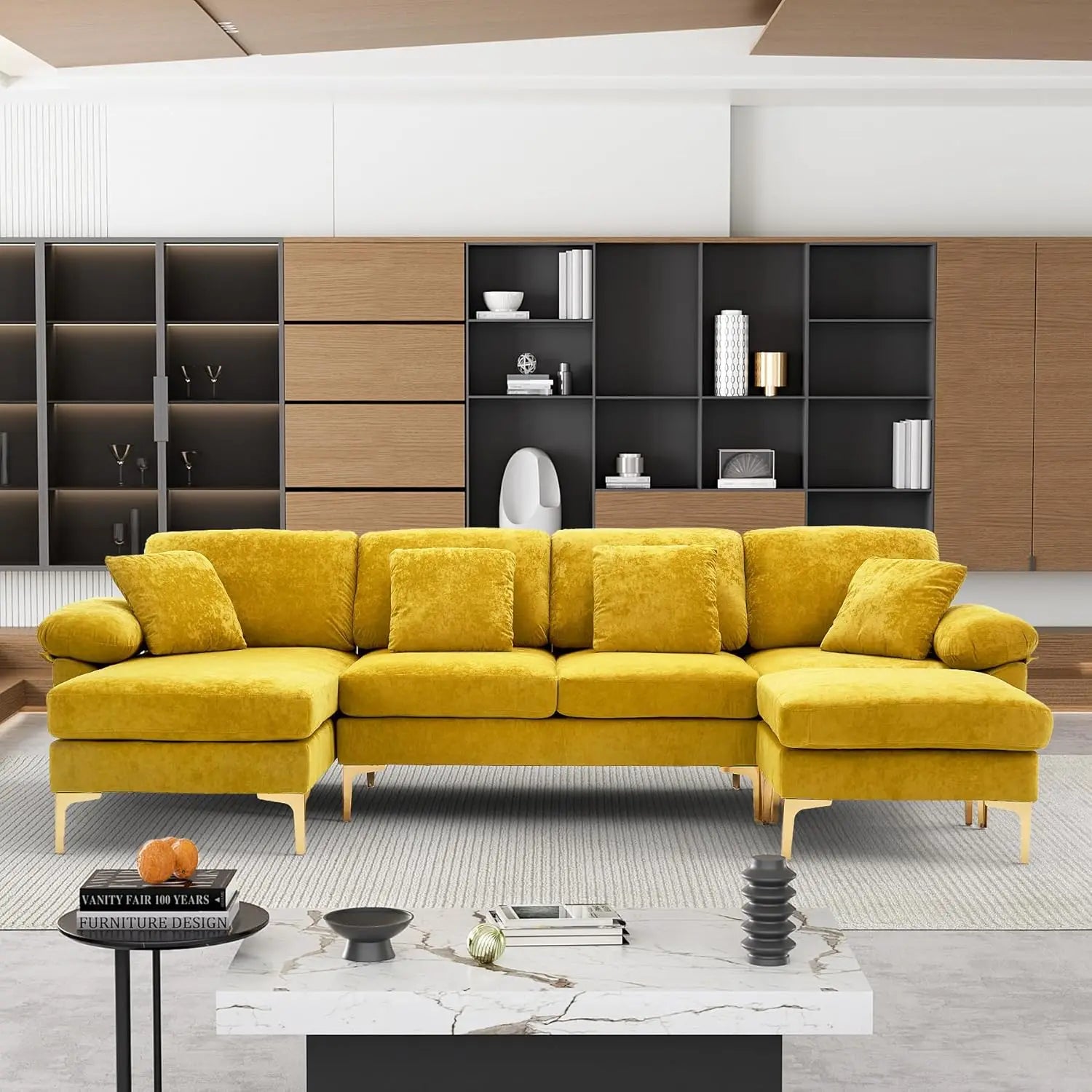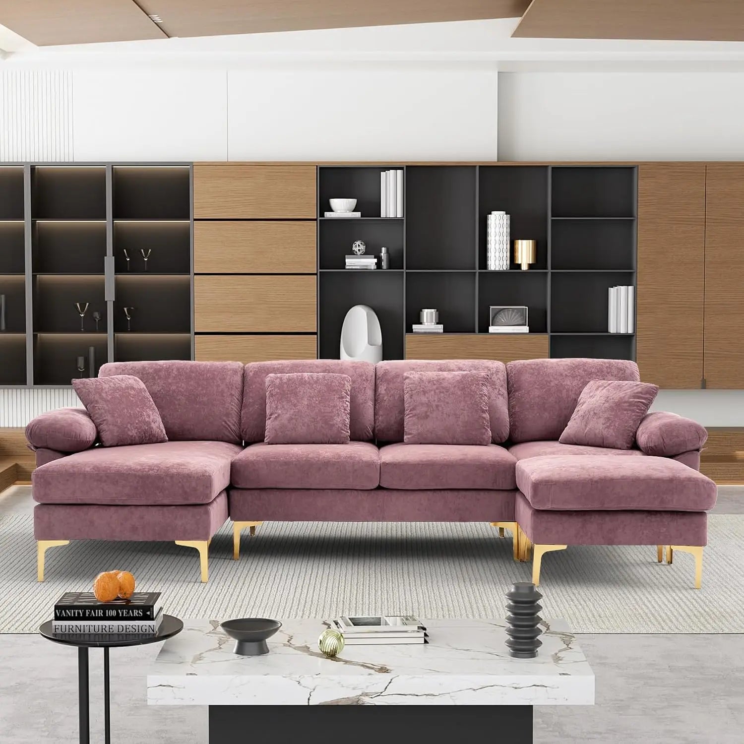 U-Shaped Sectional Sofa Couch, 4 Seat Sofa Set for Living Room, Convertible L-Shaped Velvet Couch Set with Chaise Lounge