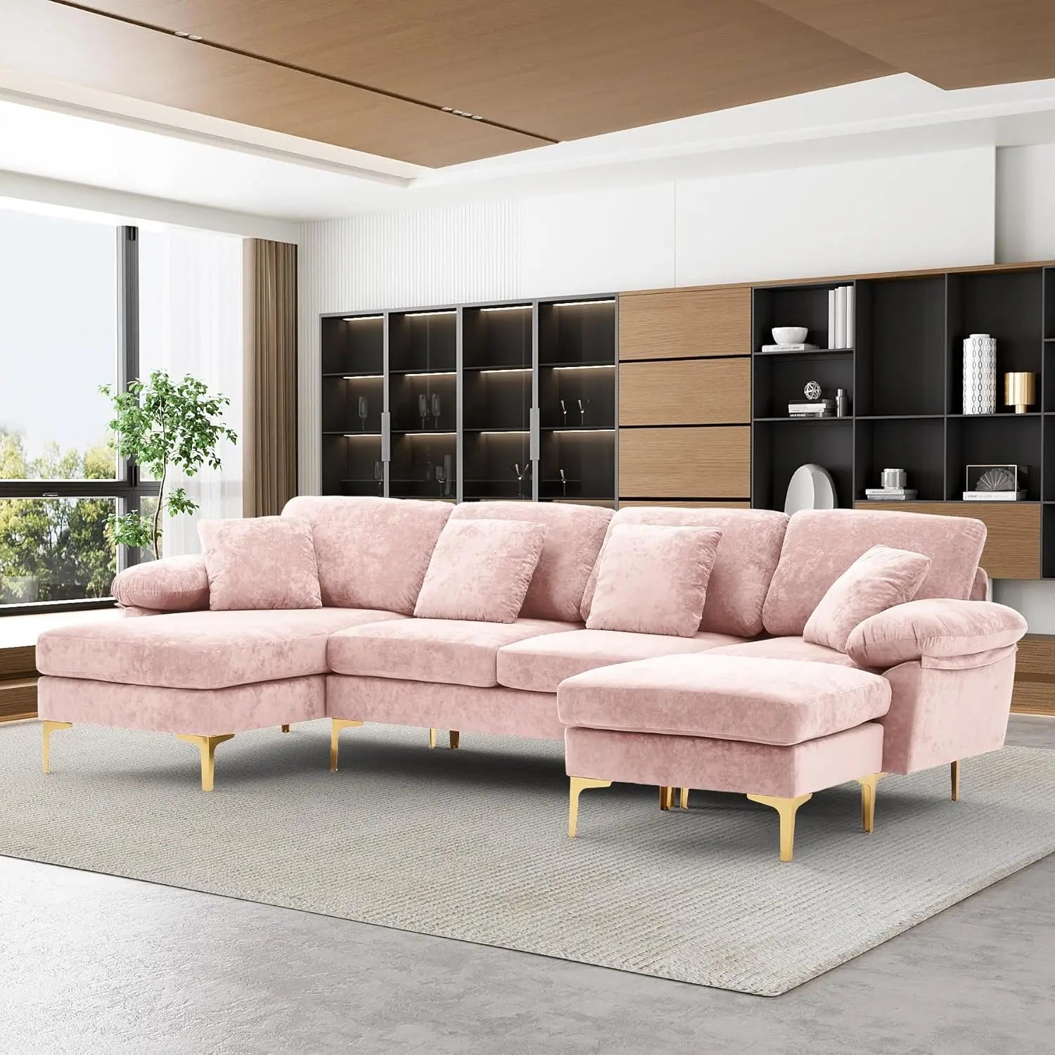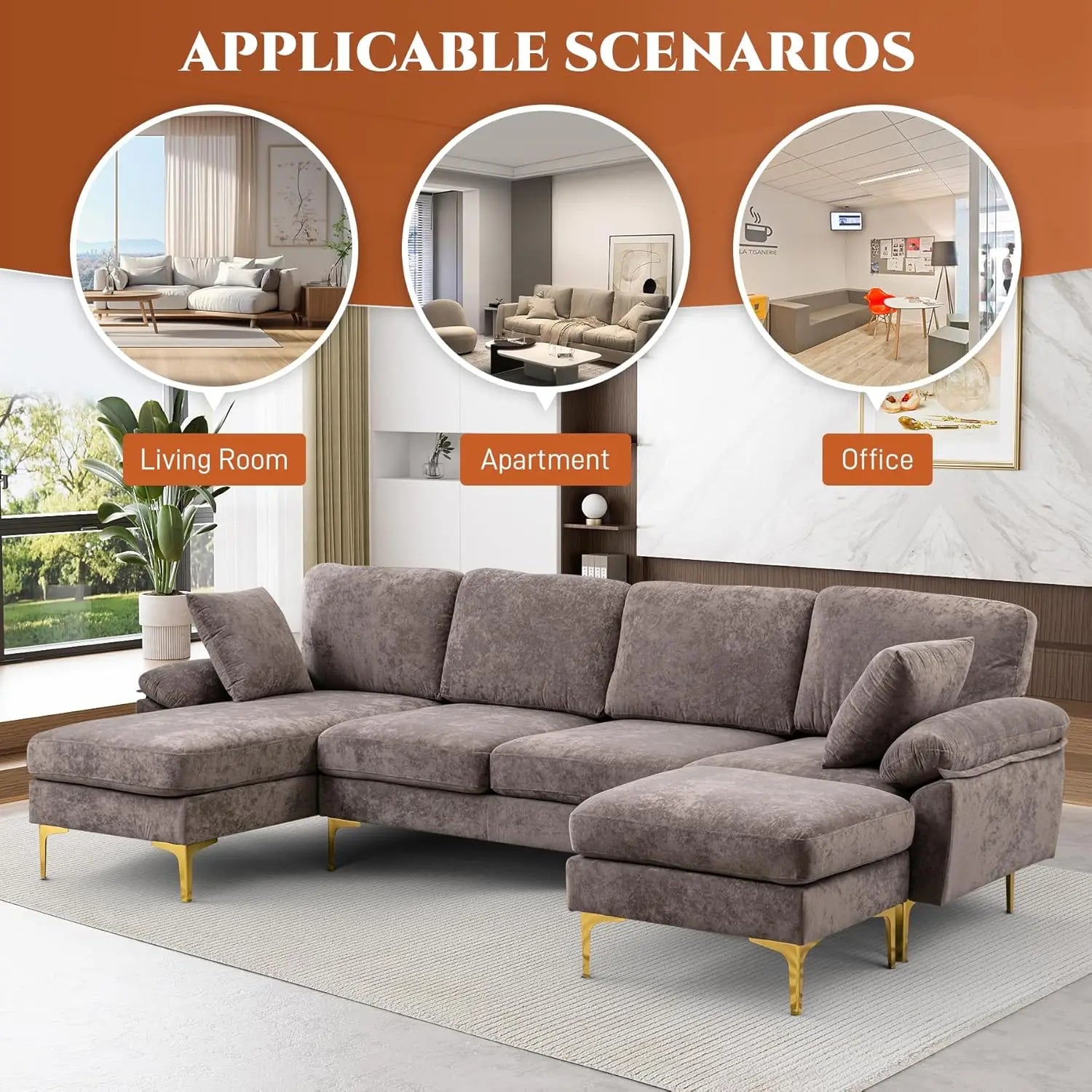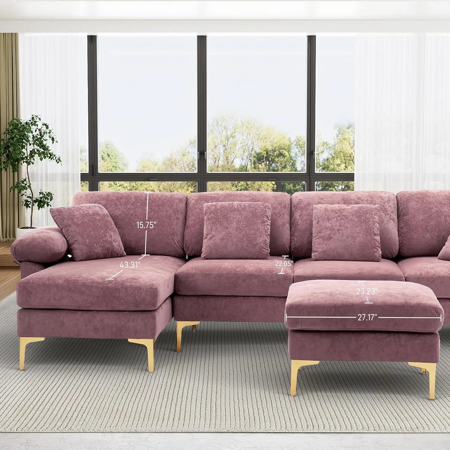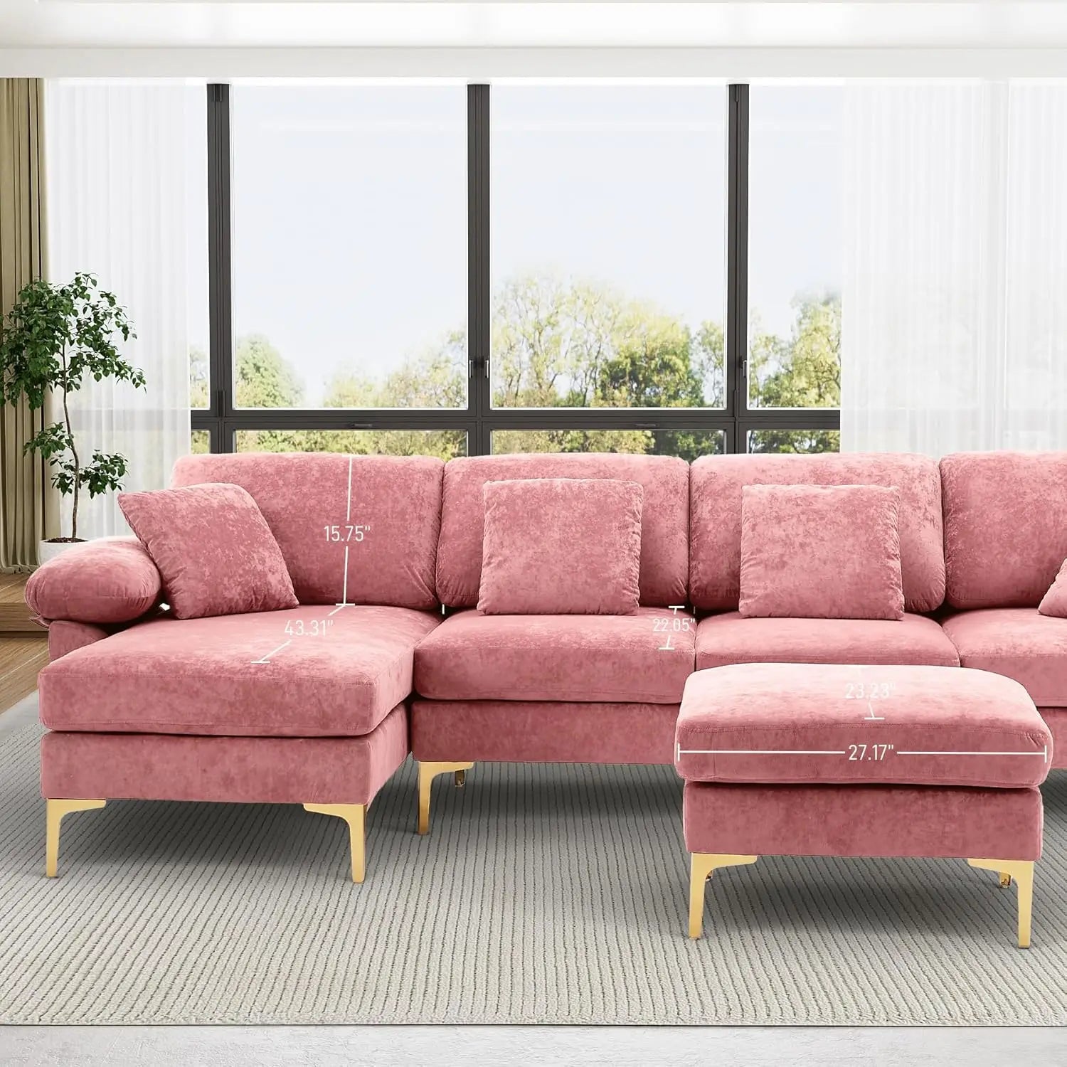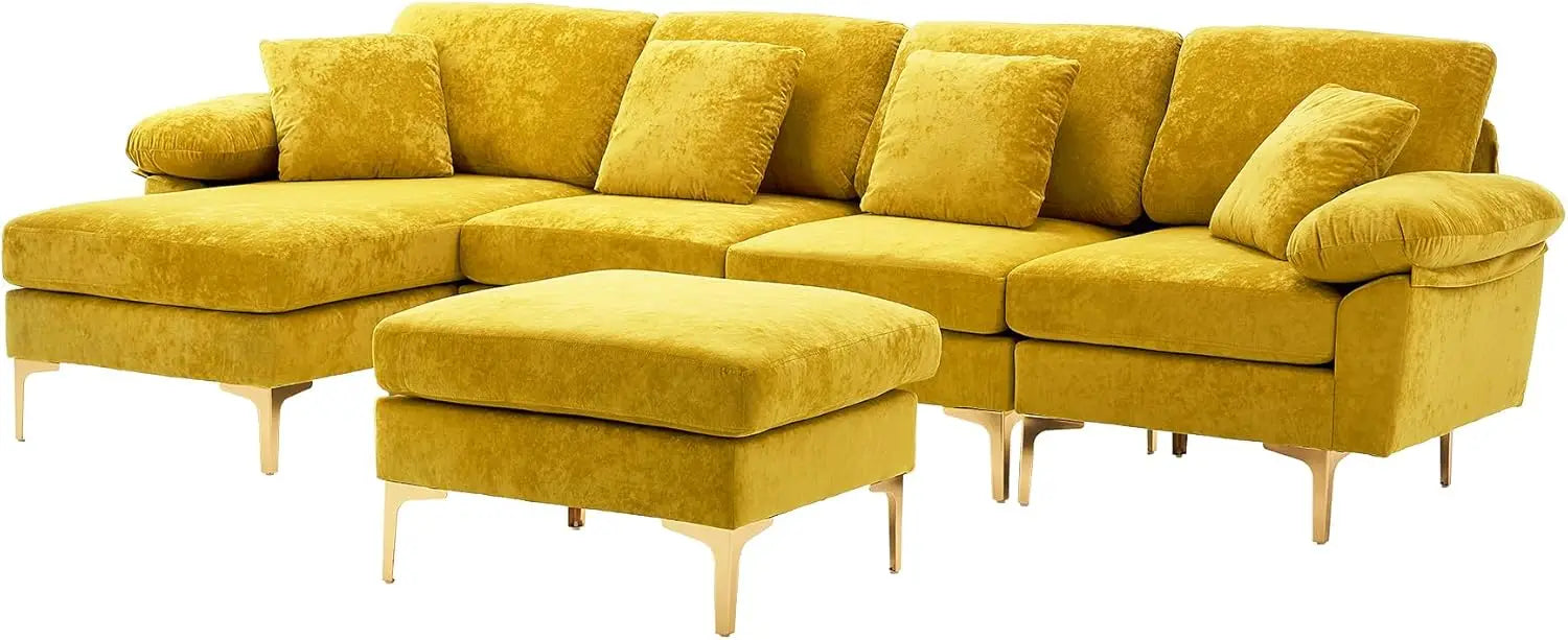 U-Shaped Sectional Sofa Couch, 4 Seat Sofa Set for Living Room, Convertible L-Shaped Velvet Couch Set with Chaise Lounge