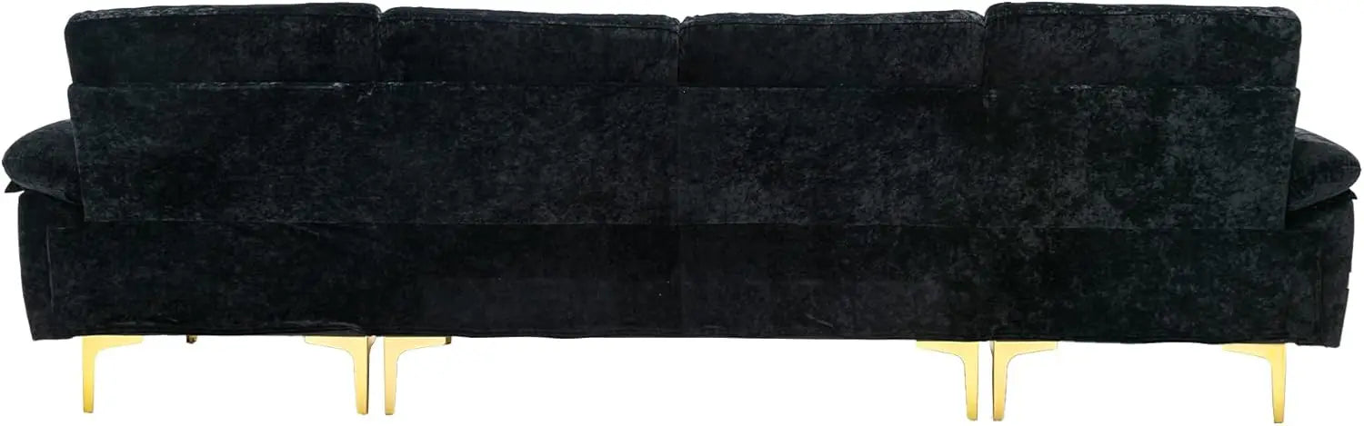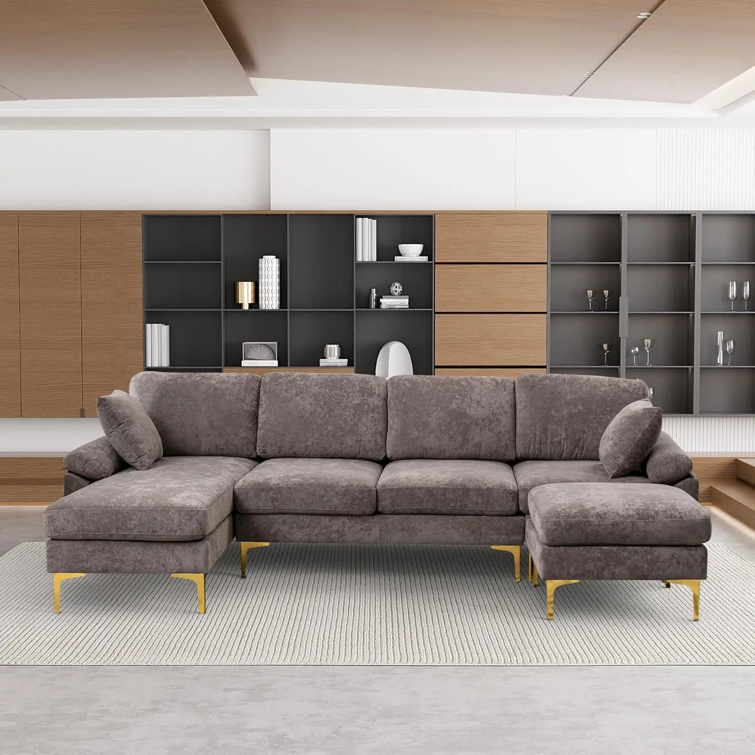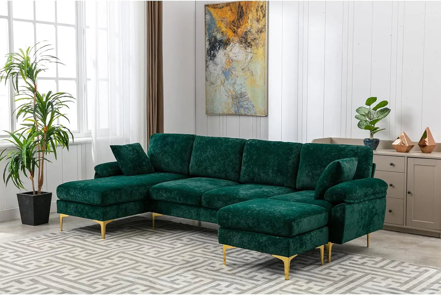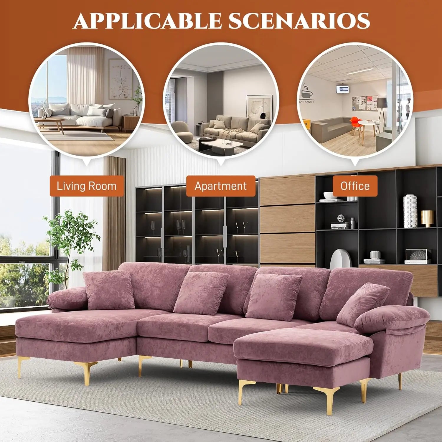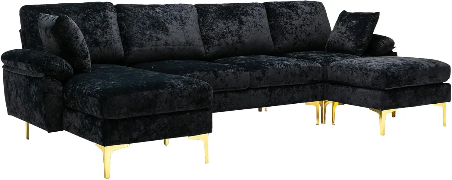 U-Shaped Sectional Sofa Couch, 4 Seat Sofa Set for Living Room, Convertible L-Shaped Velvet Couch Set with Chaise Lounge