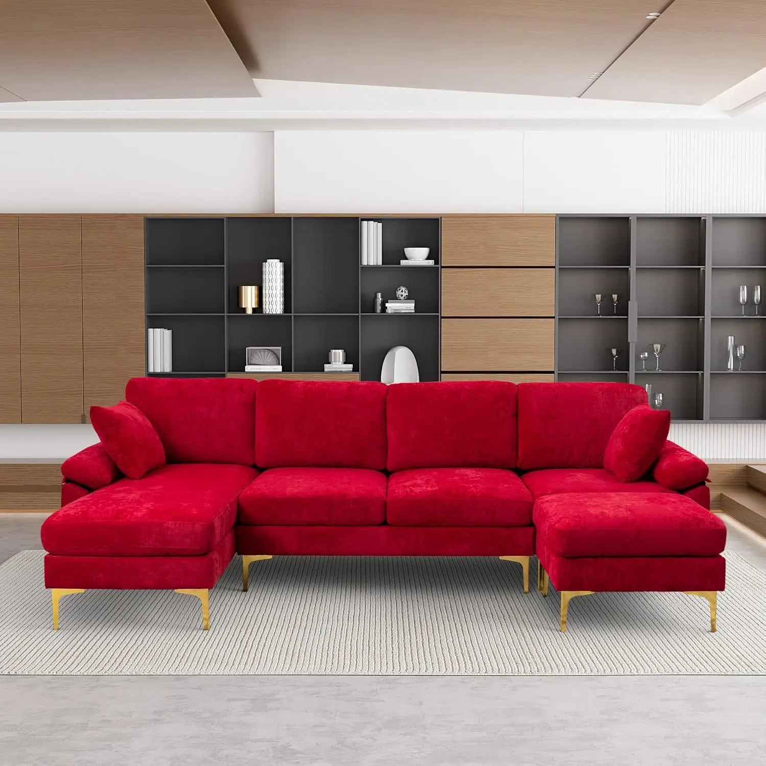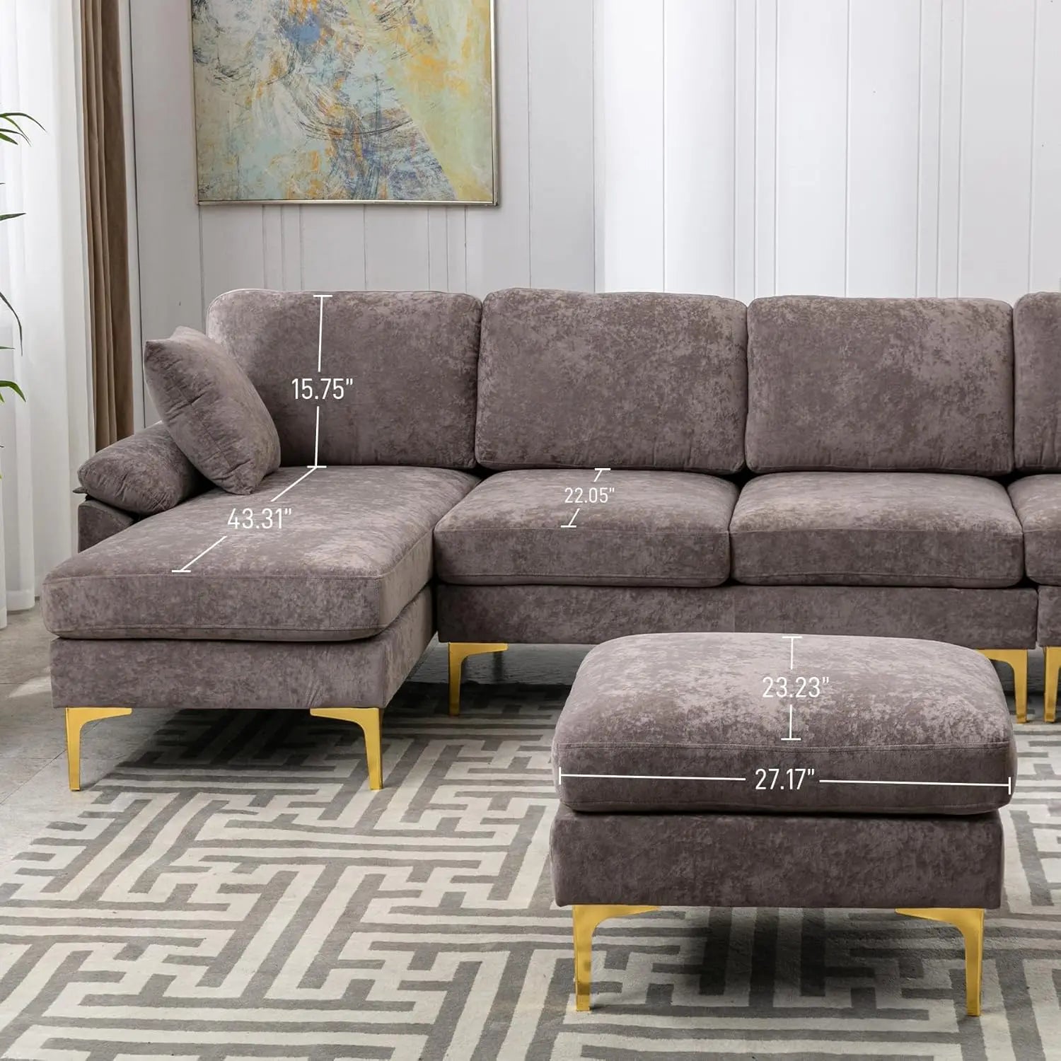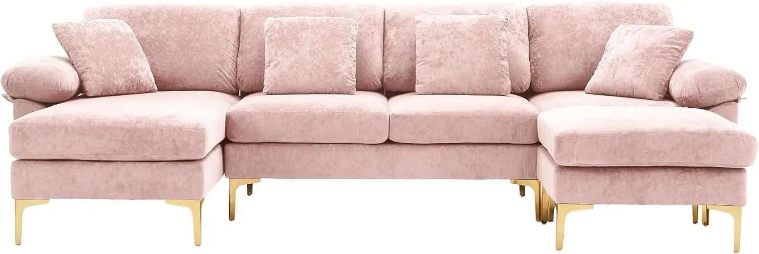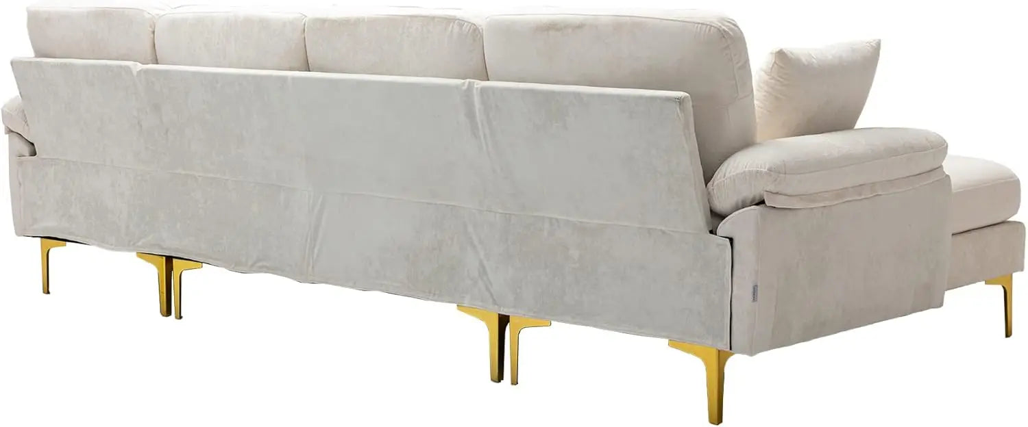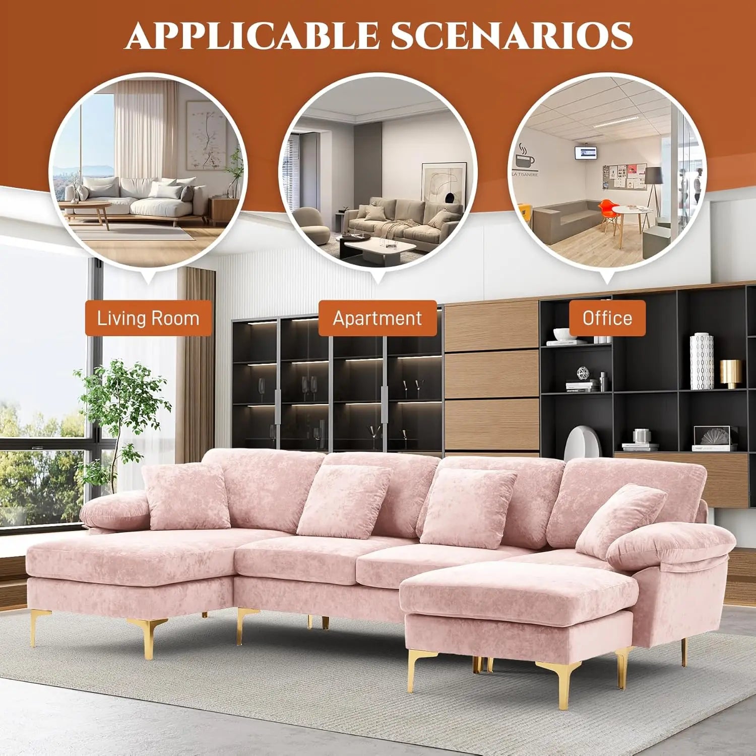 U-Shaped Sectional Sofa Couch, 4 Seat Sofa Set for Living Room, Convertible L-Shaped Velvet Couch Set with Chaise Lounge