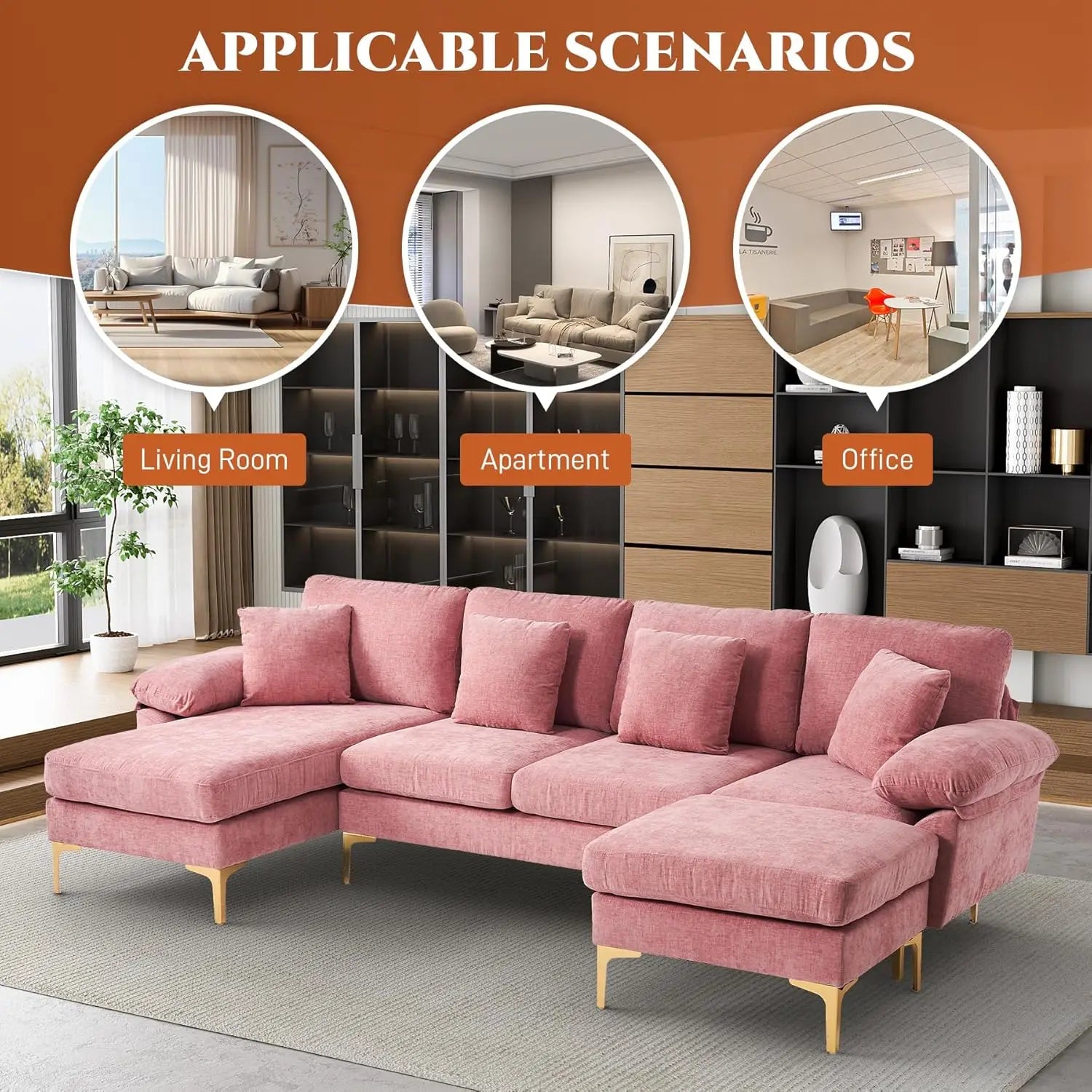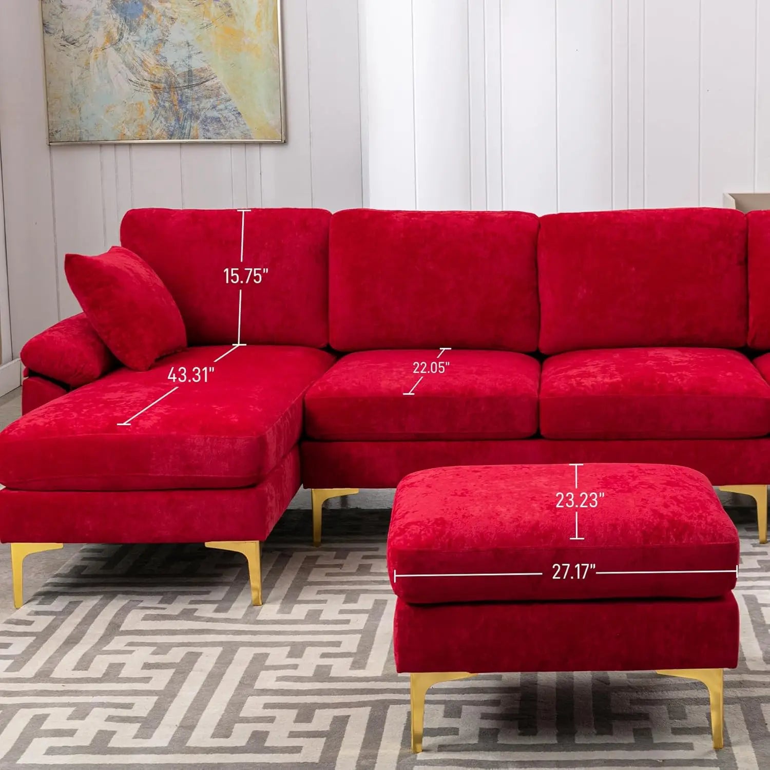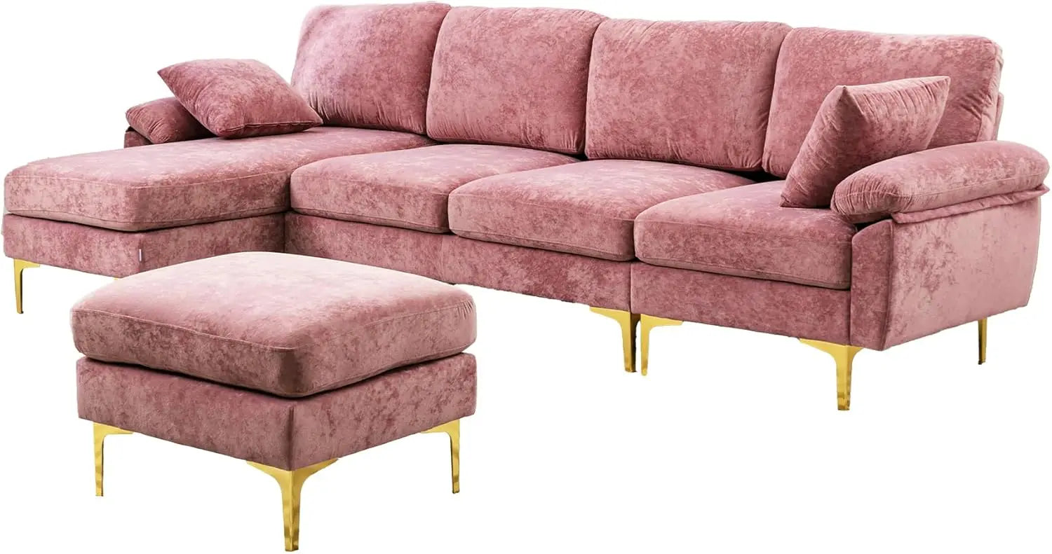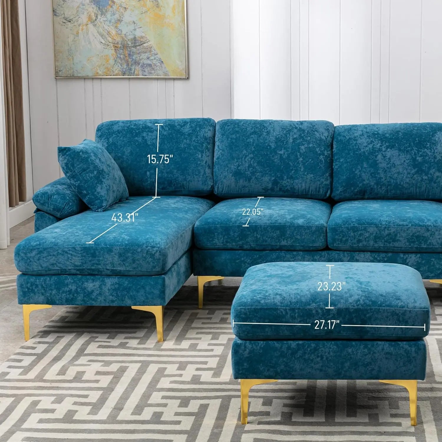 U-Shaped Sectional Sofa Couch, 4 Seat Sofa Set for Living Room, Convertible L-Shaped Velvet Couch Set with Chaise Lounge