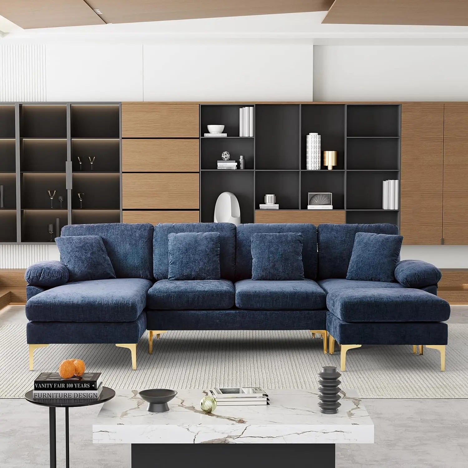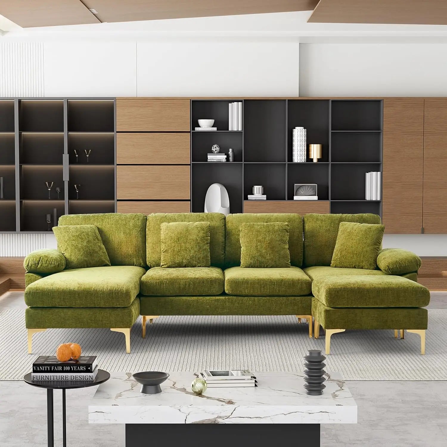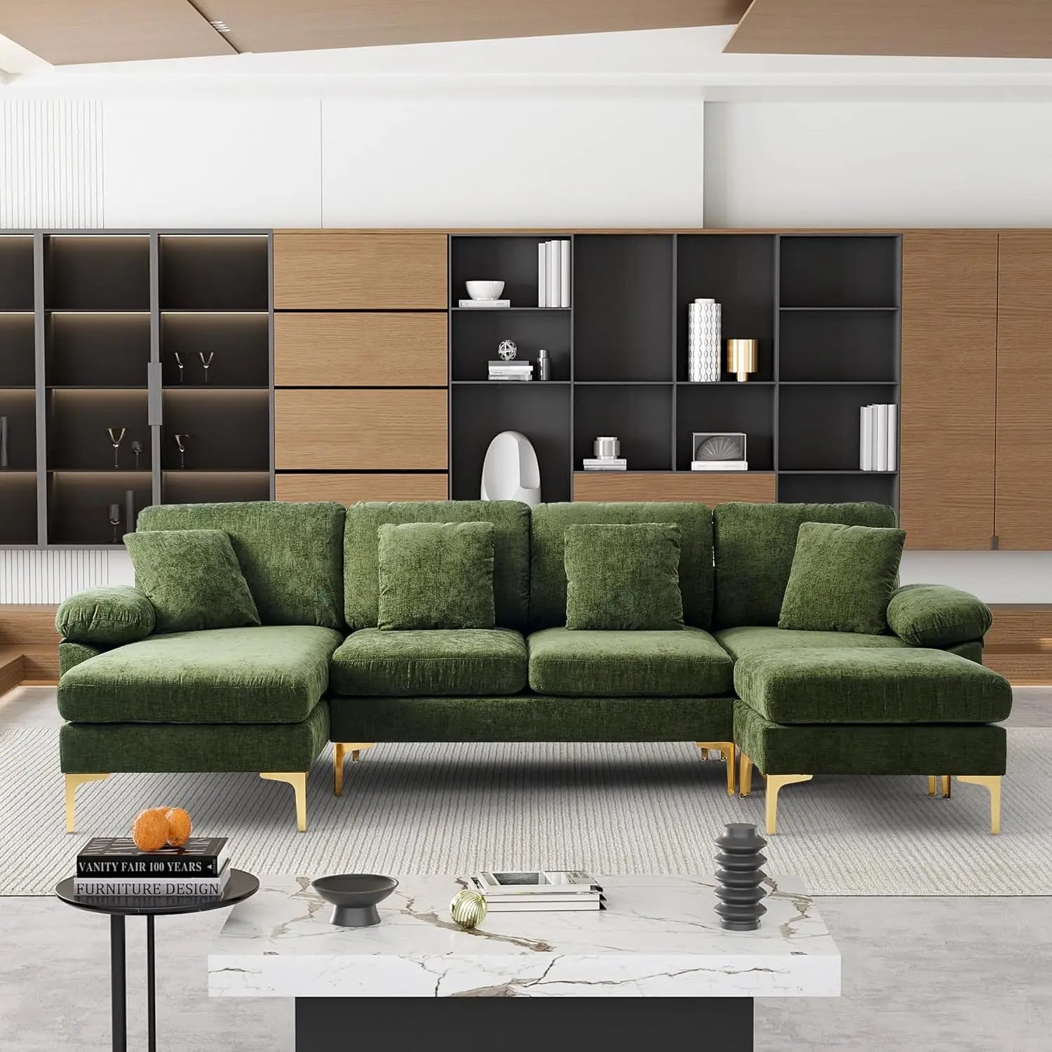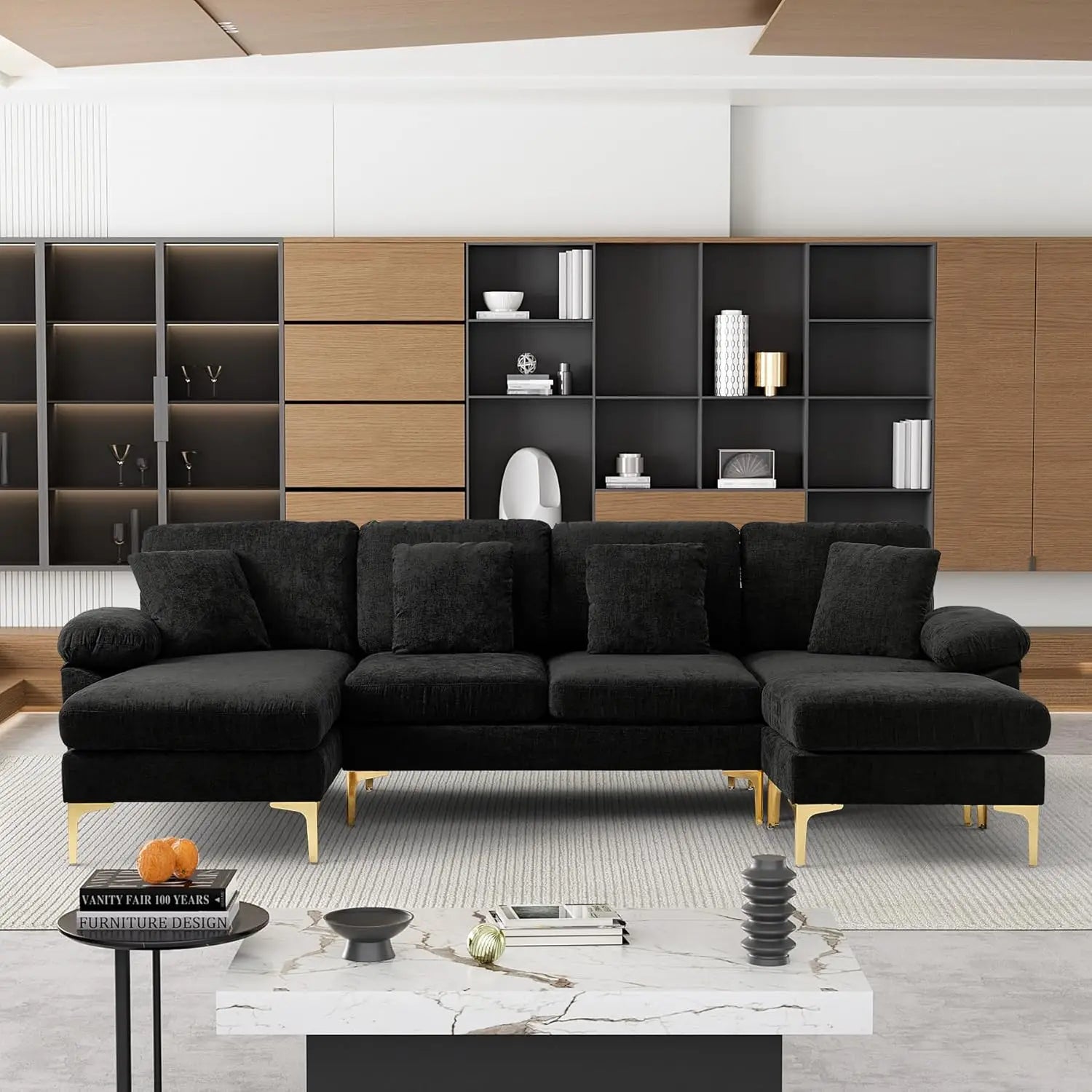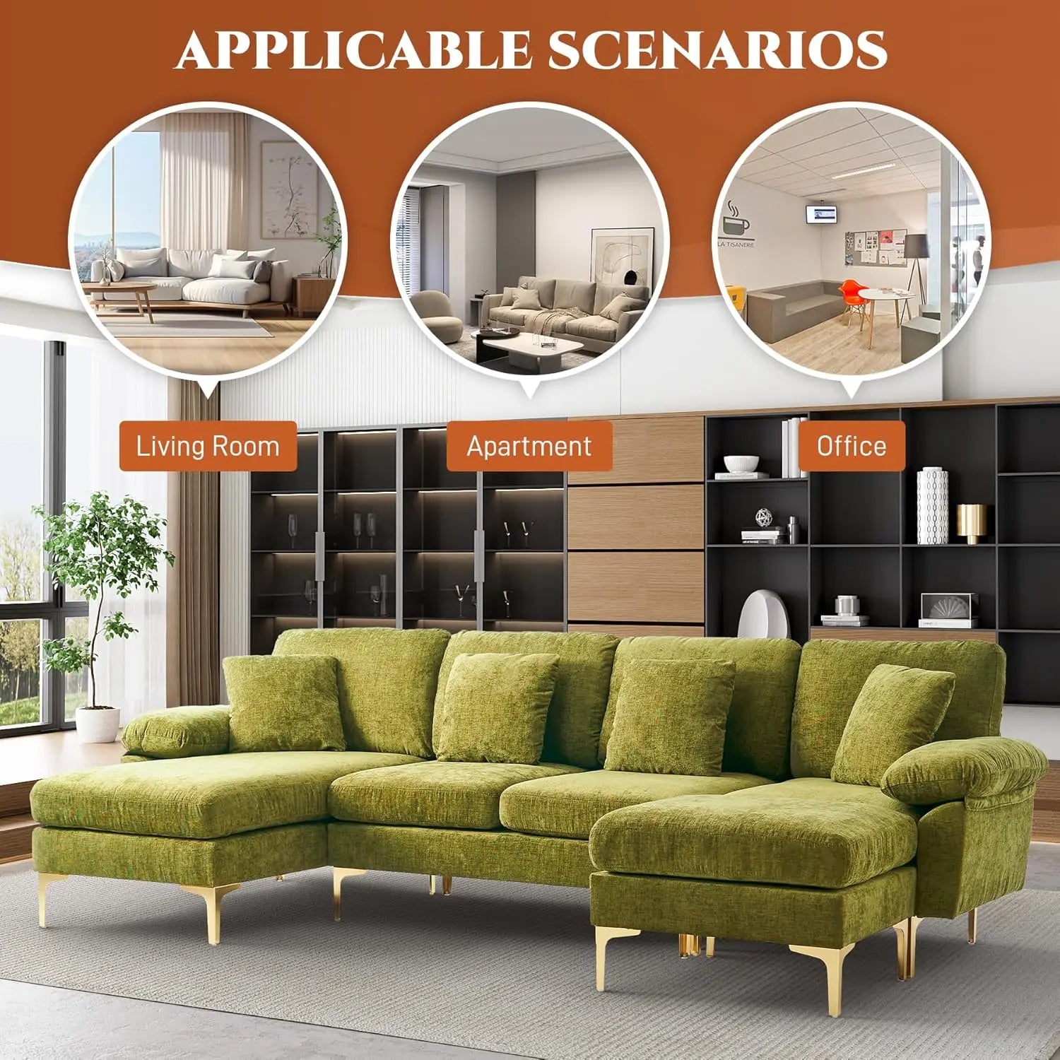 U-Shaped Sectional Sofa Couch, 4 Seat Sofa Set for Living Room, Convertible L-Shaped Velvet Couch Set with Chaise Lounge