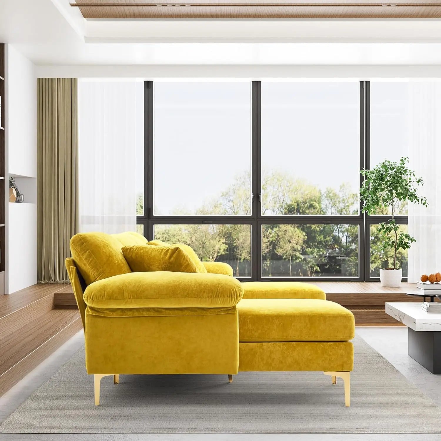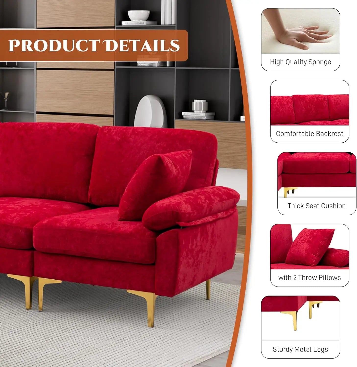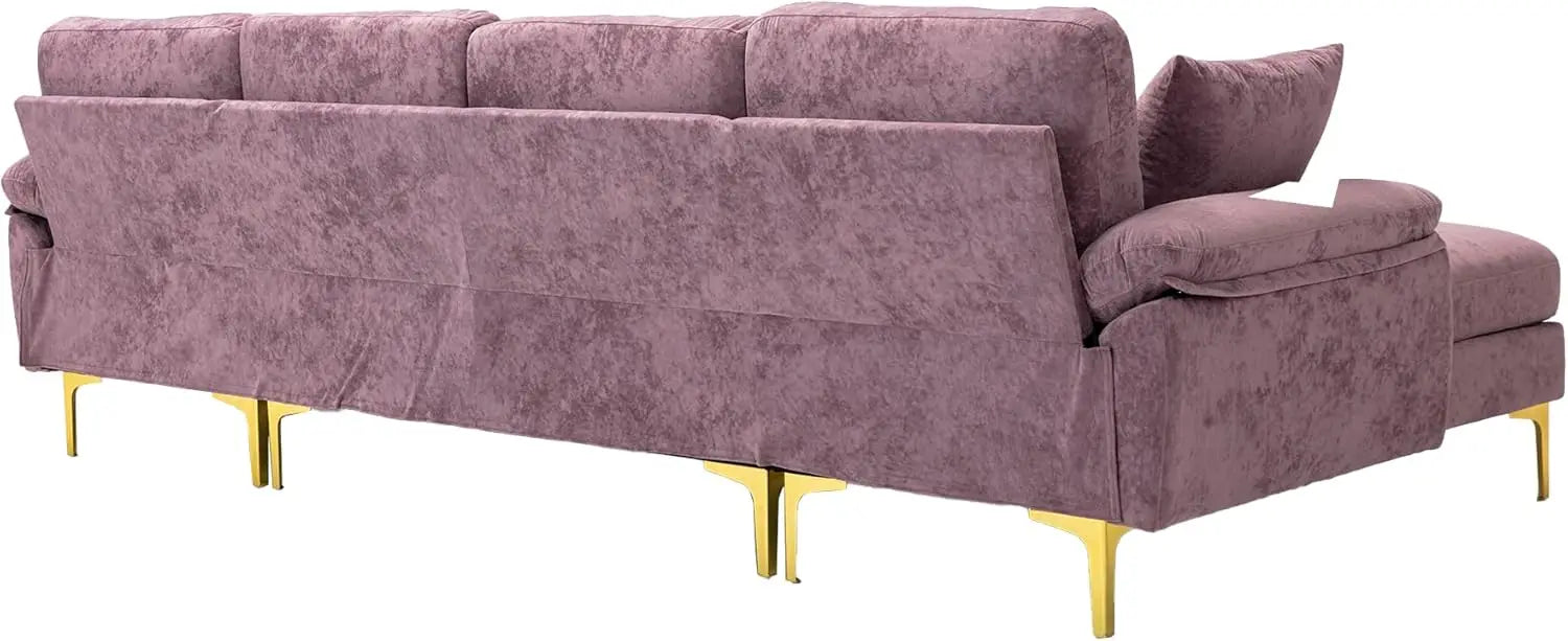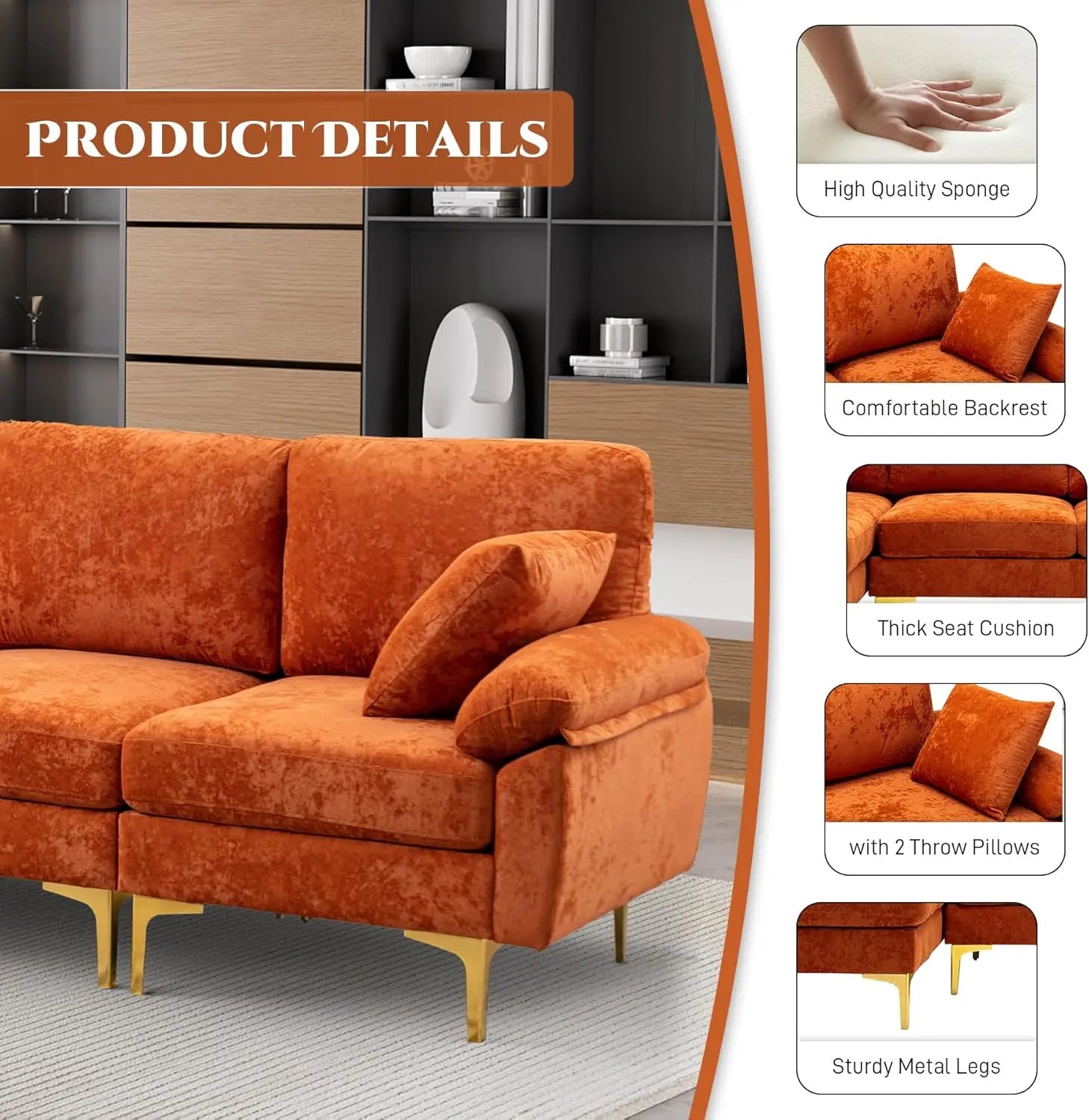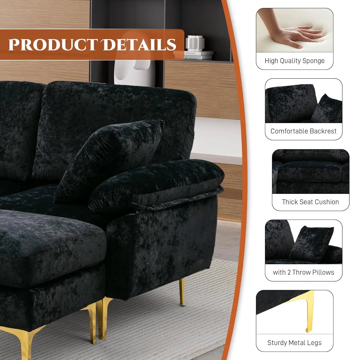 - 【Soft and Comfy】Upholstered in velvet, padded with thick, high-density foam, this sectional sofa for living room provide ultra comfort and support, allowing you, your family and guest to enjoy great days and nights. The futon sofa comes with 2 throw pillows for additional support.