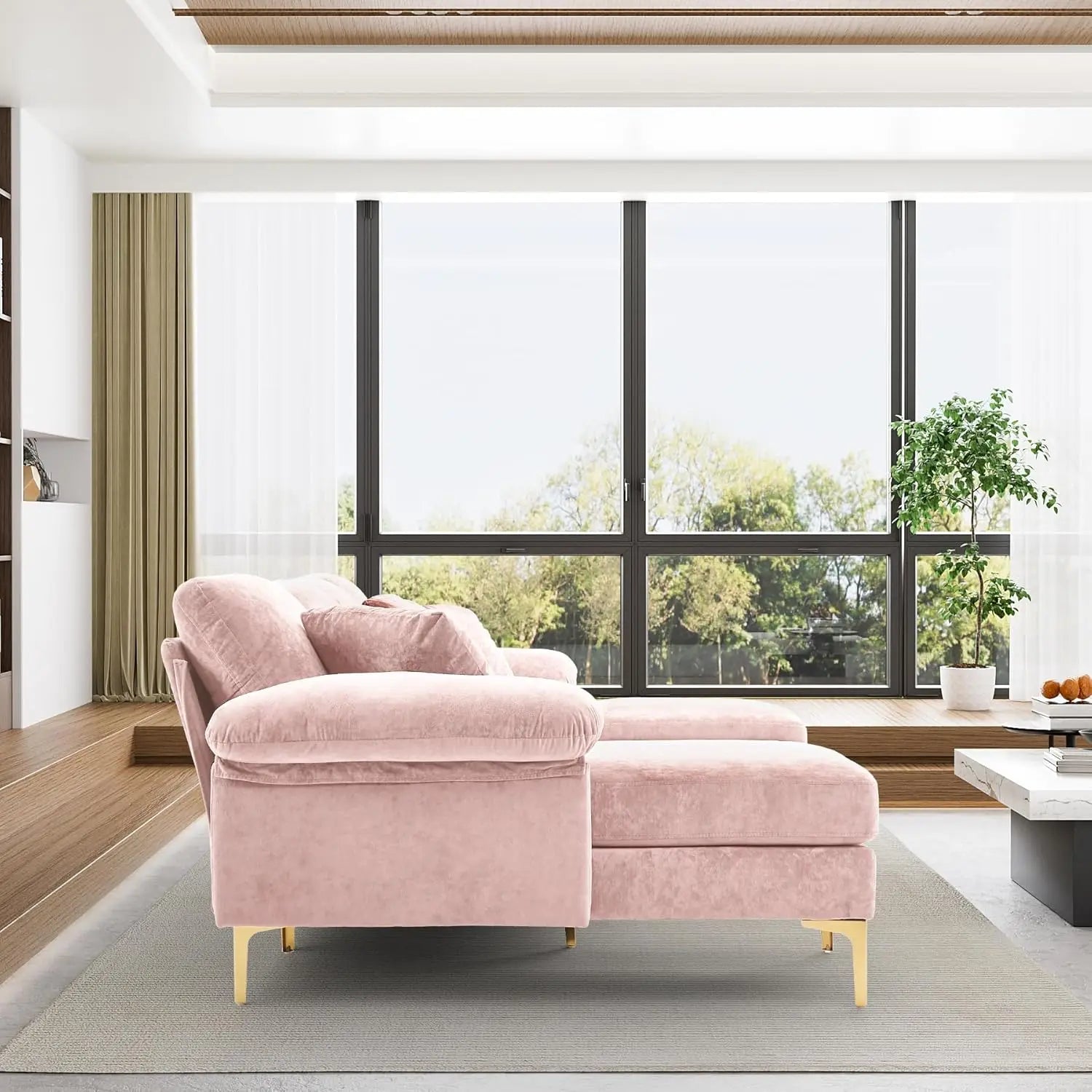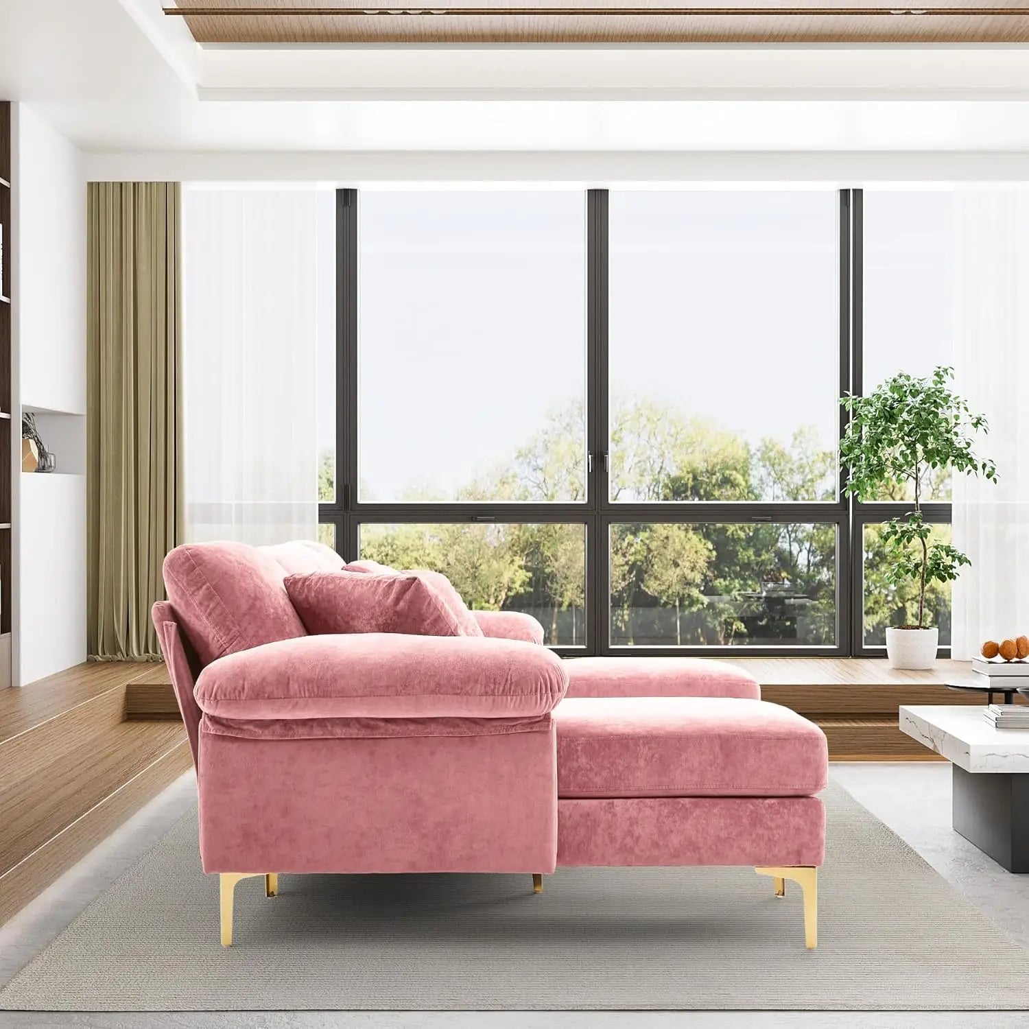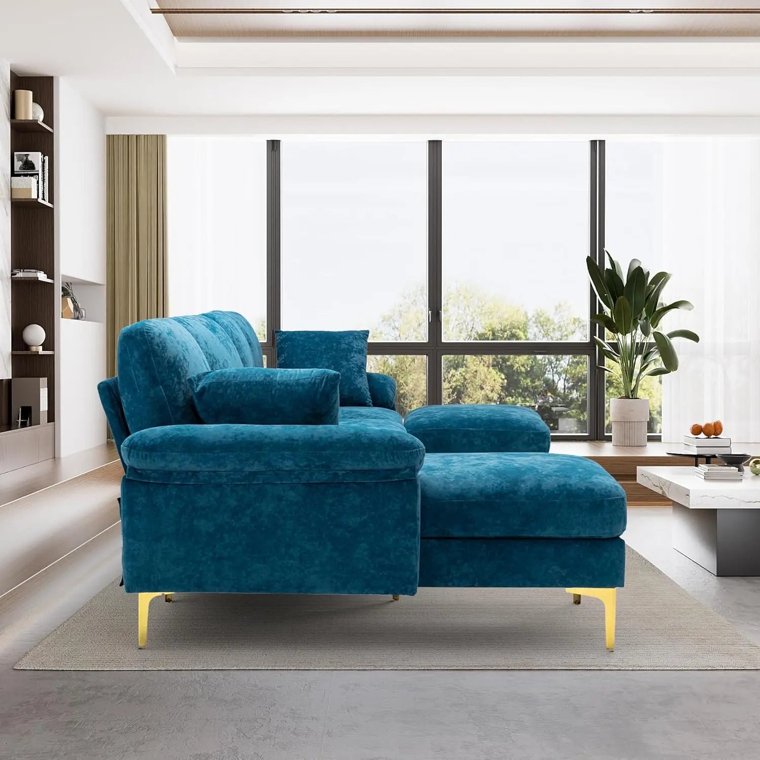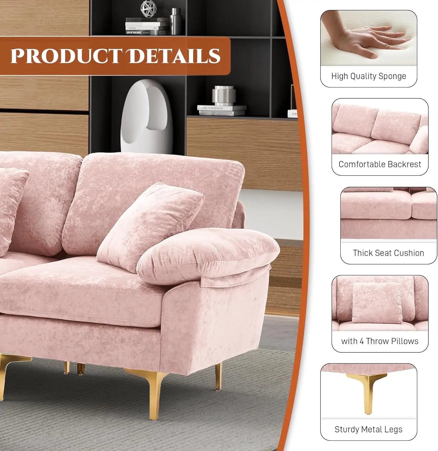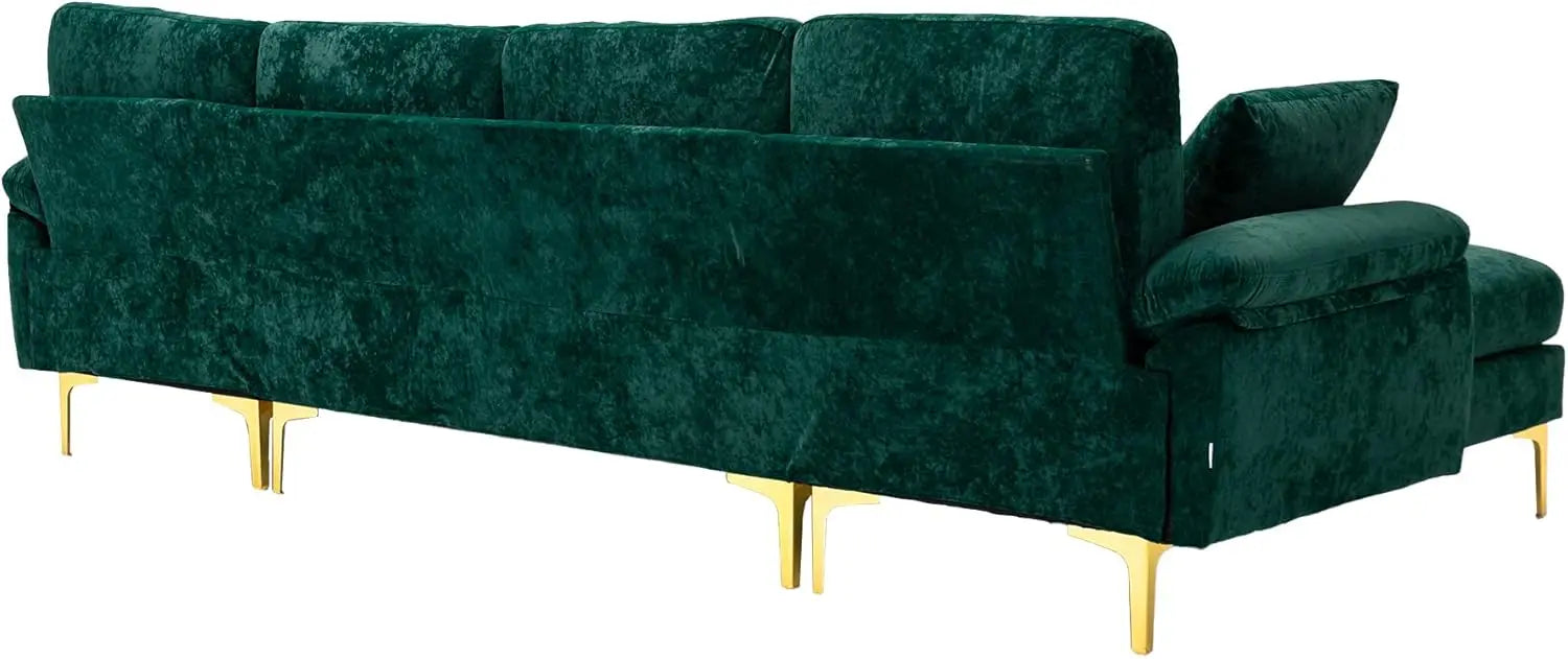 - 【Soft and Comfy】Upholstered in velvet, padded with thick, high-density foam, this sectional sofa for living room provide ultra comfort and support, allowing you, your family and guest to enjoy great days and nights. The futon sofa comes with 2 throw pillows for additional support.