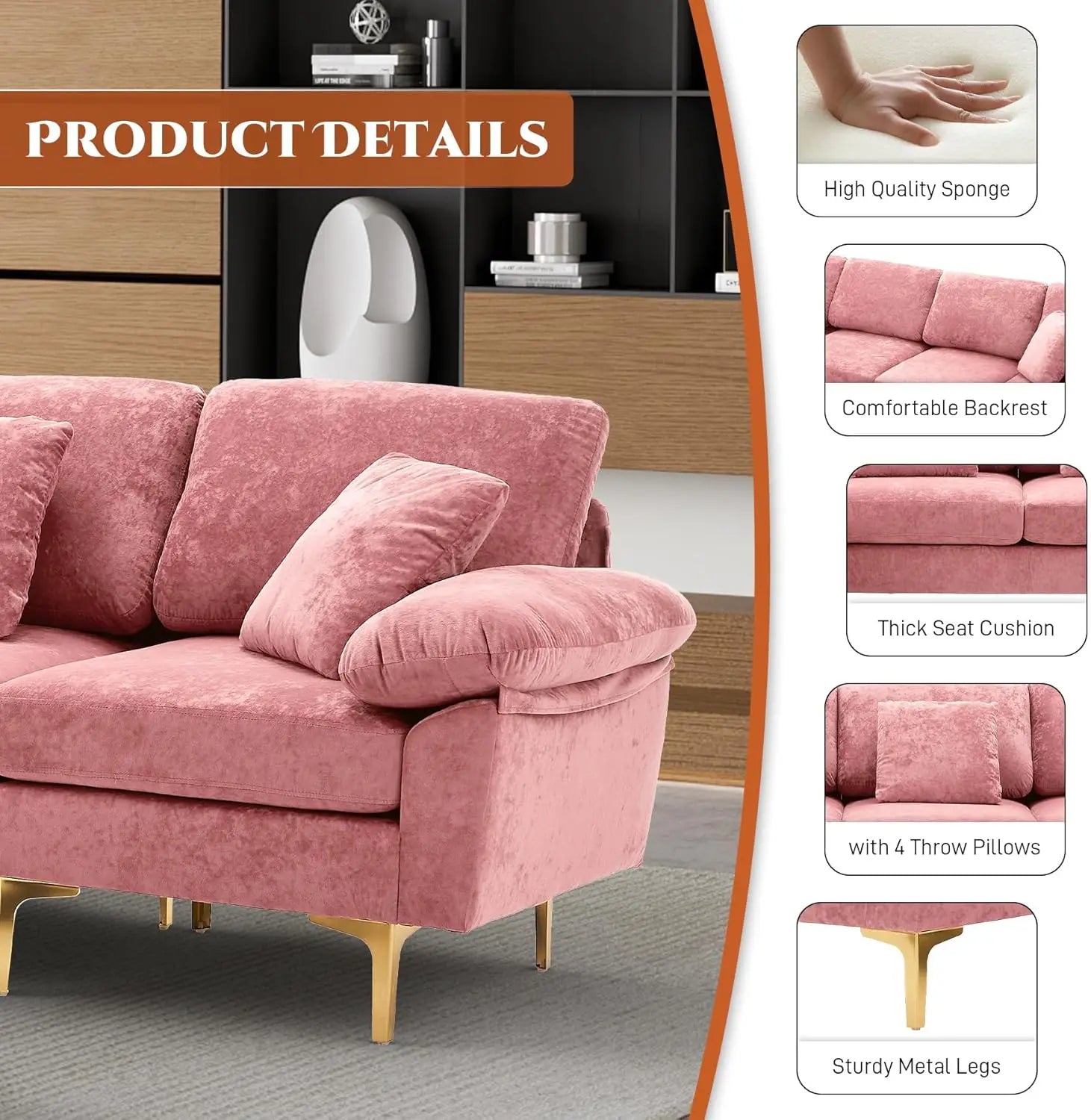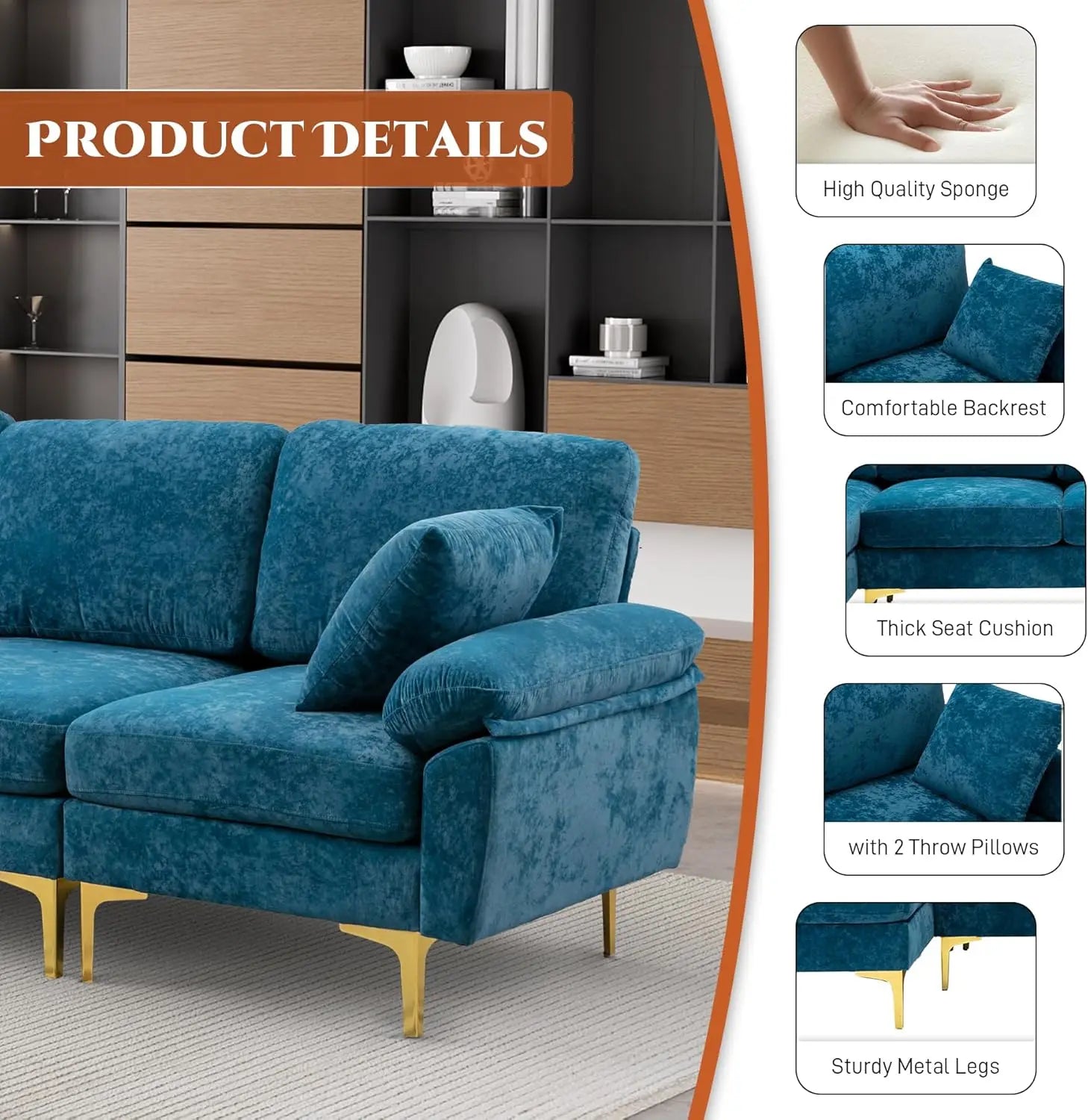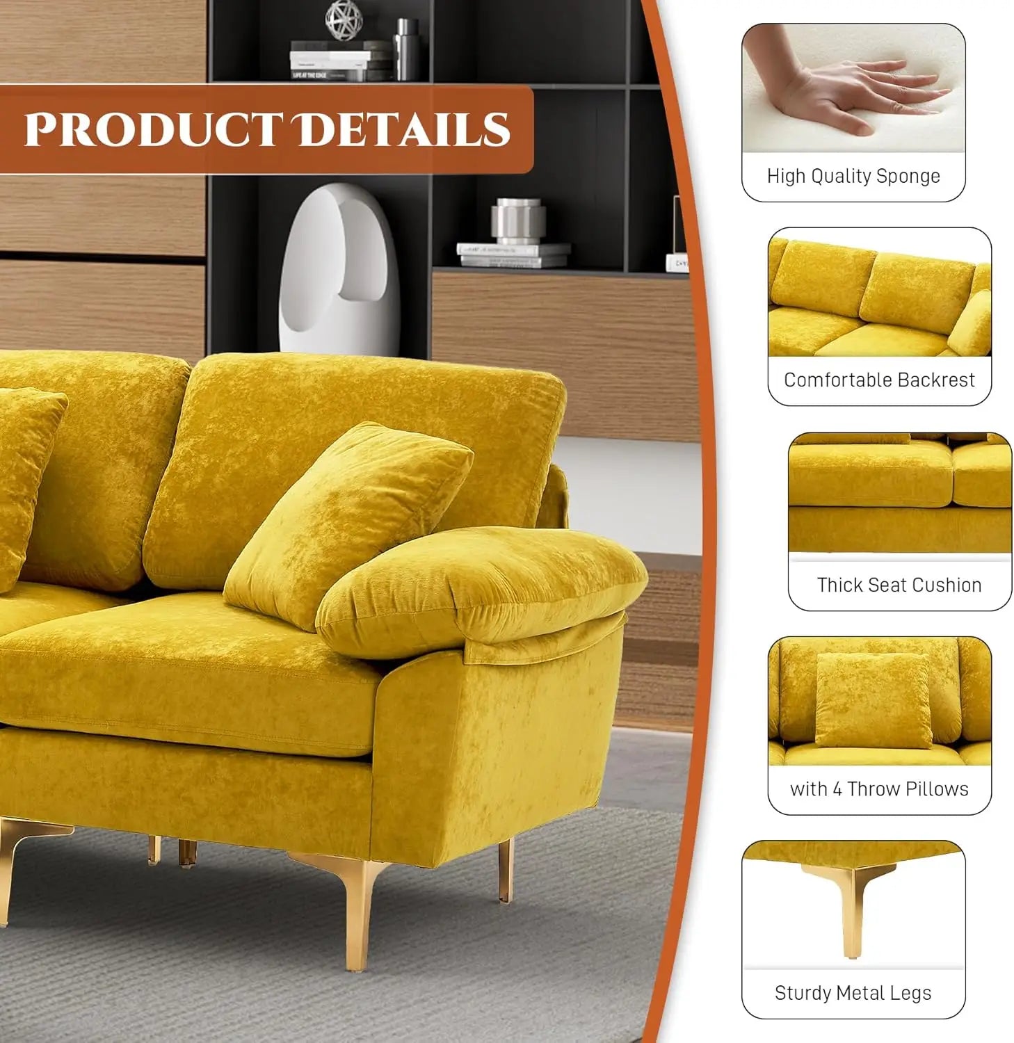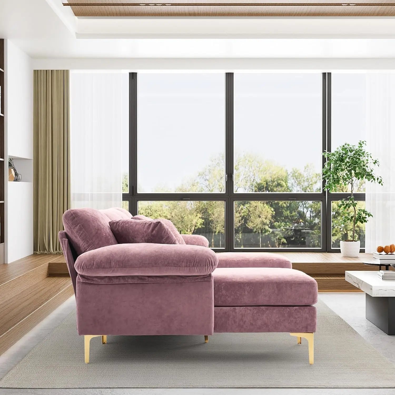 - 【Soft and Comfy】Upholstered in velvet, padded with thick, high-density foam, this sectional sofa for living room provide ultra comfort and support, allowing you, your family and guest to enjoy great days and nights. The futon sofa comes with 2 throw pillows for additional support.