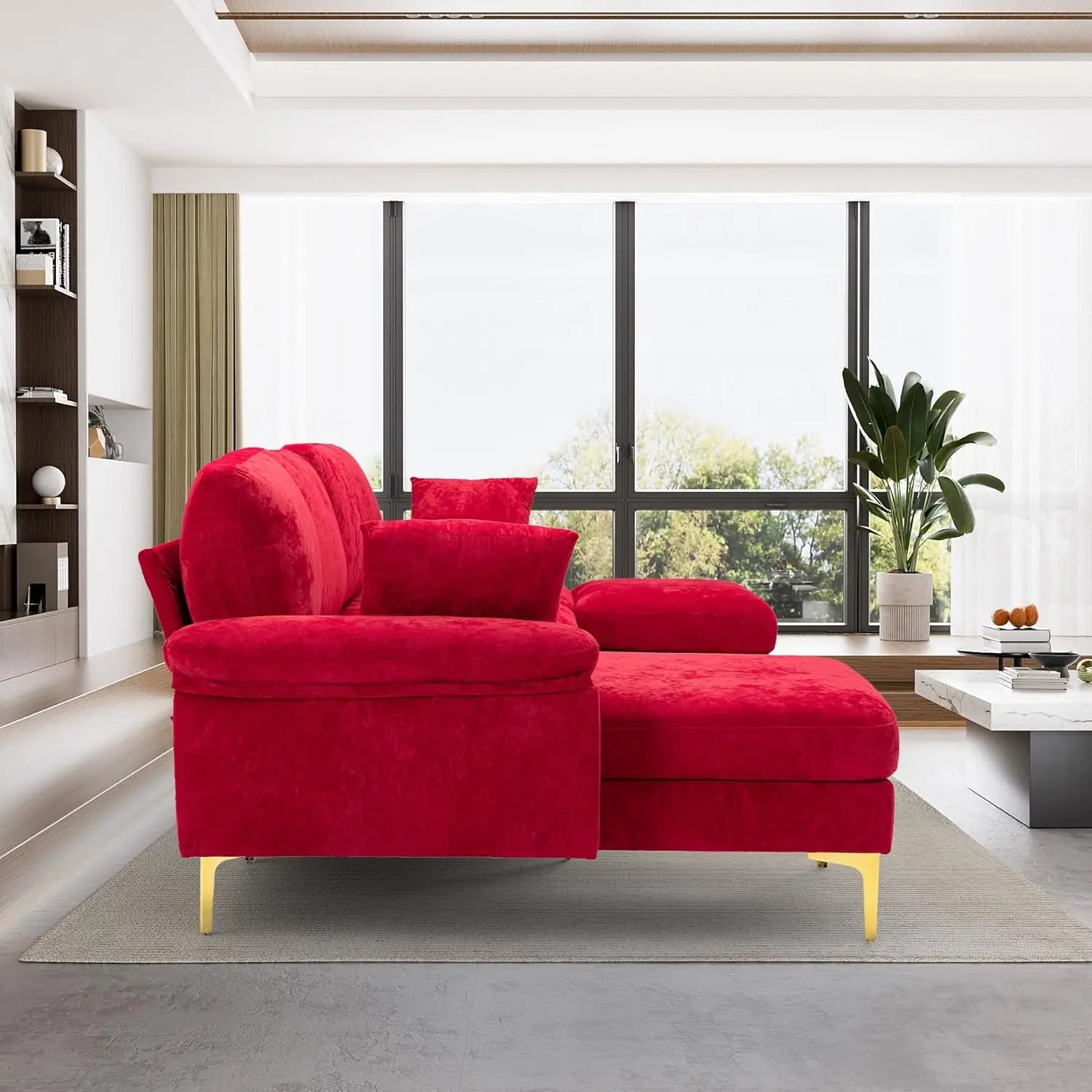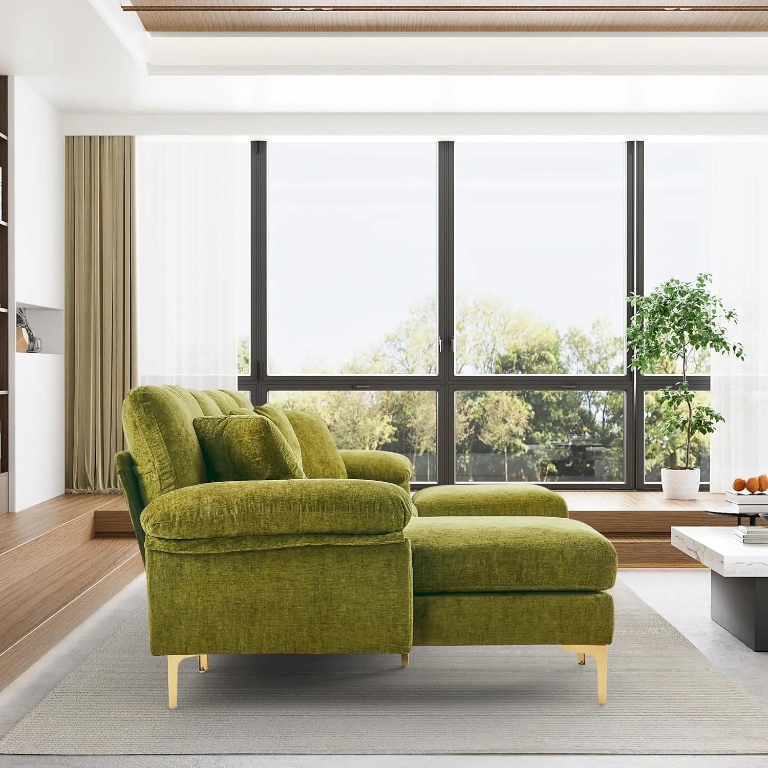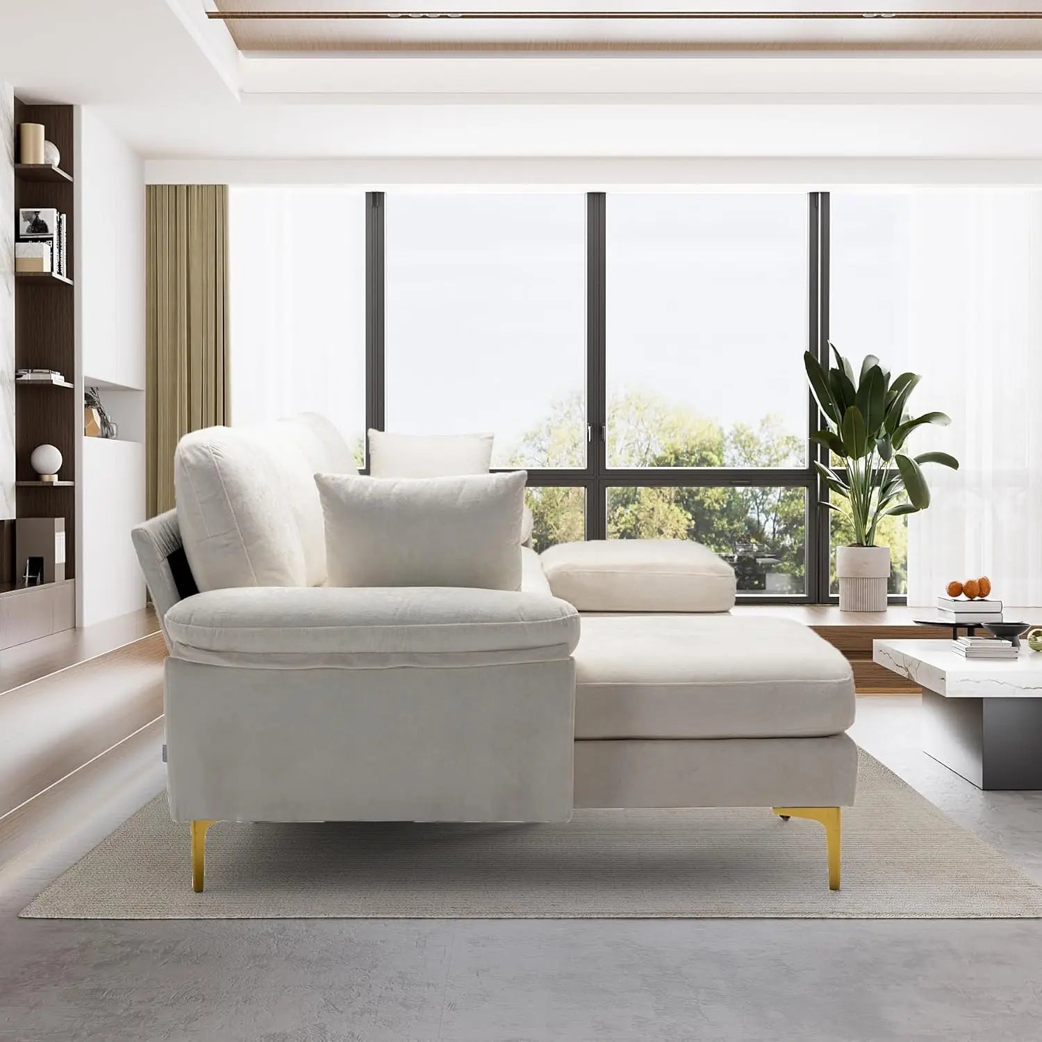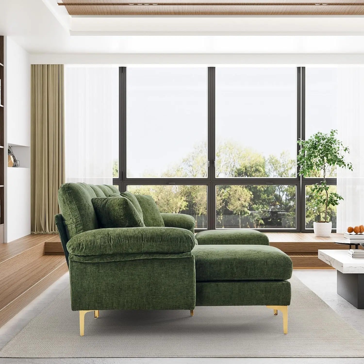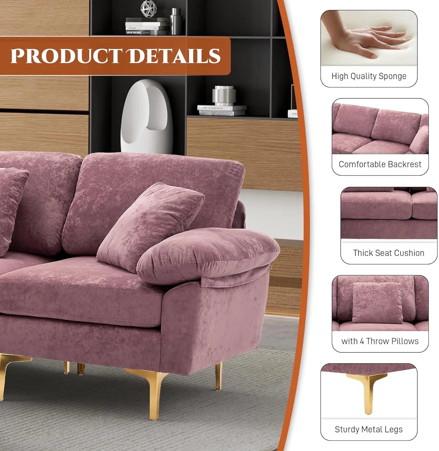 - 【Soft and Comfy】Upholstered in velvet, padded with thick, high-density foam, this sectional sofa for living room provide ultra comfort and support, allowing you, your family and guest to enjoy great days and nights. The futon sofa comes with 2 throw pillows for additional support.