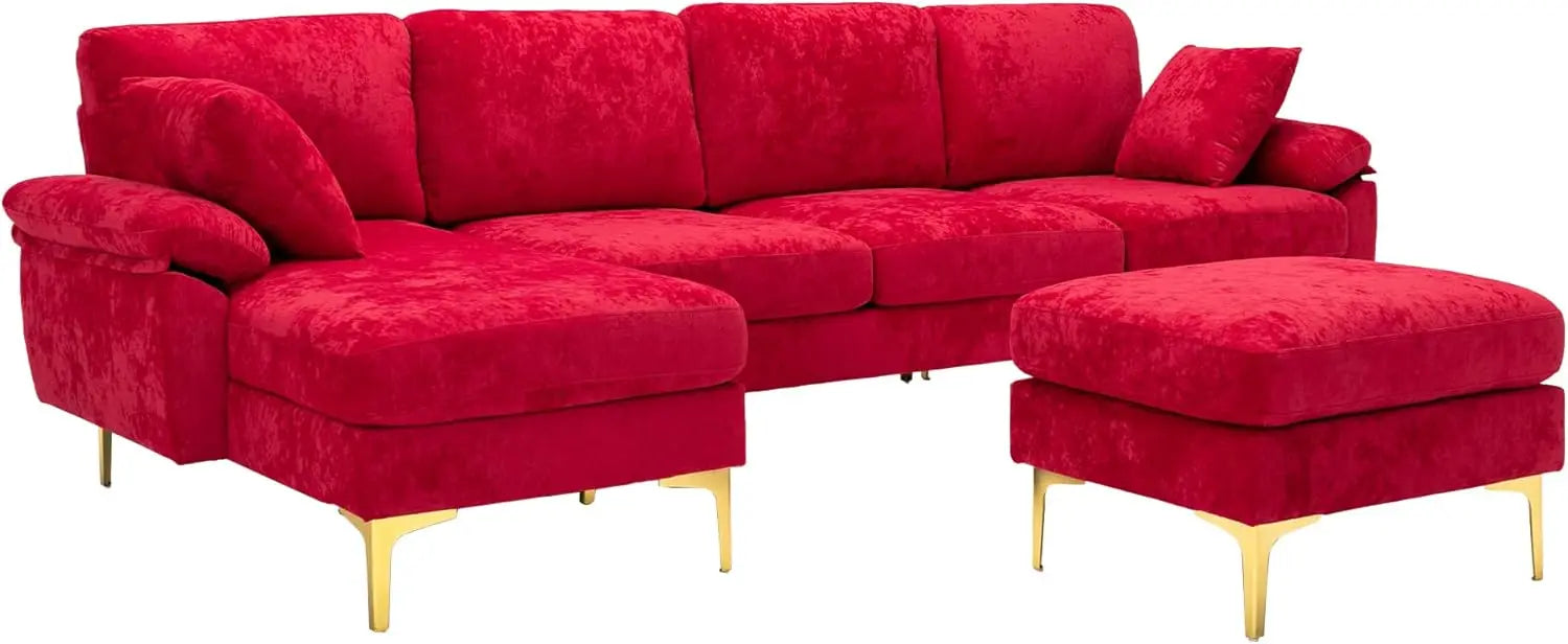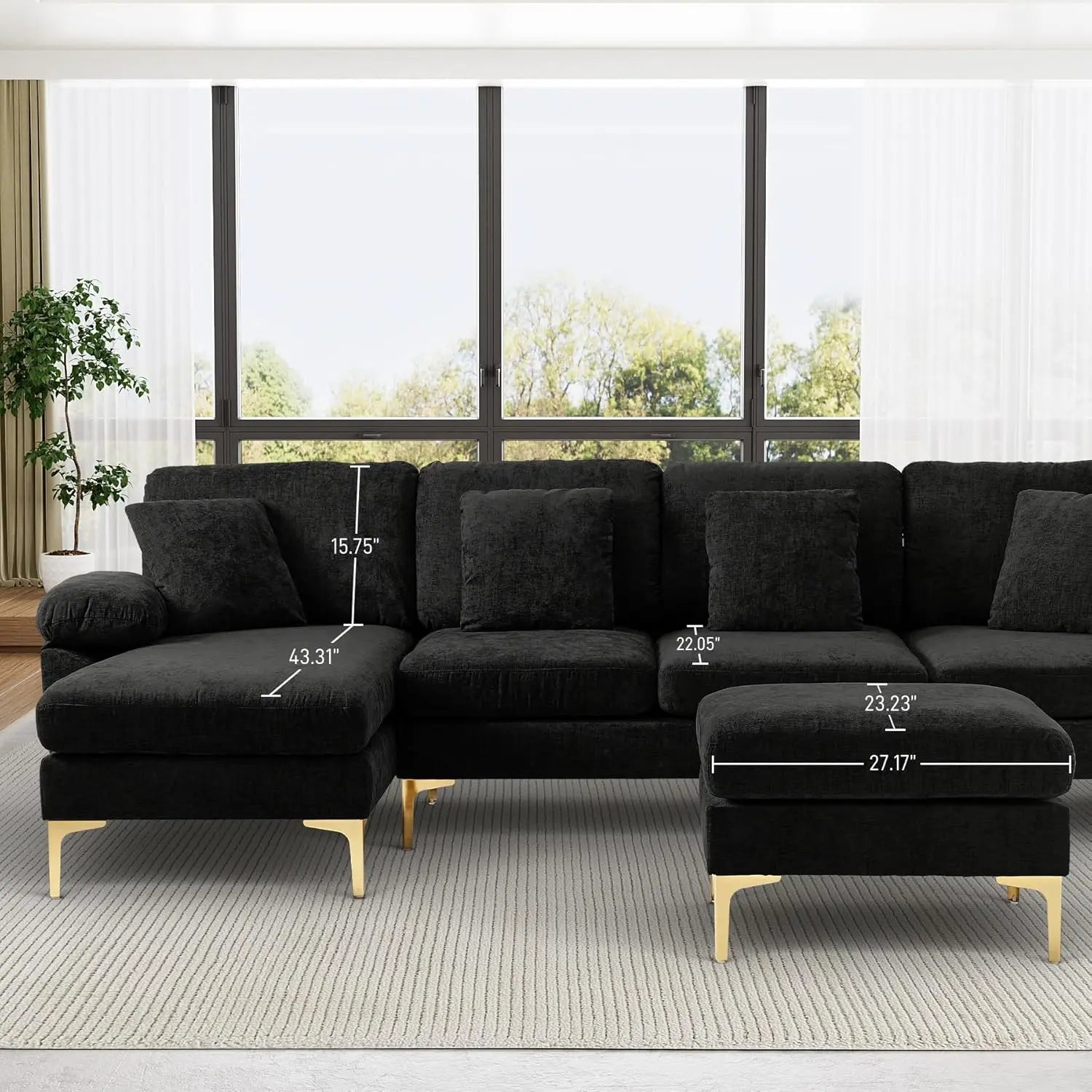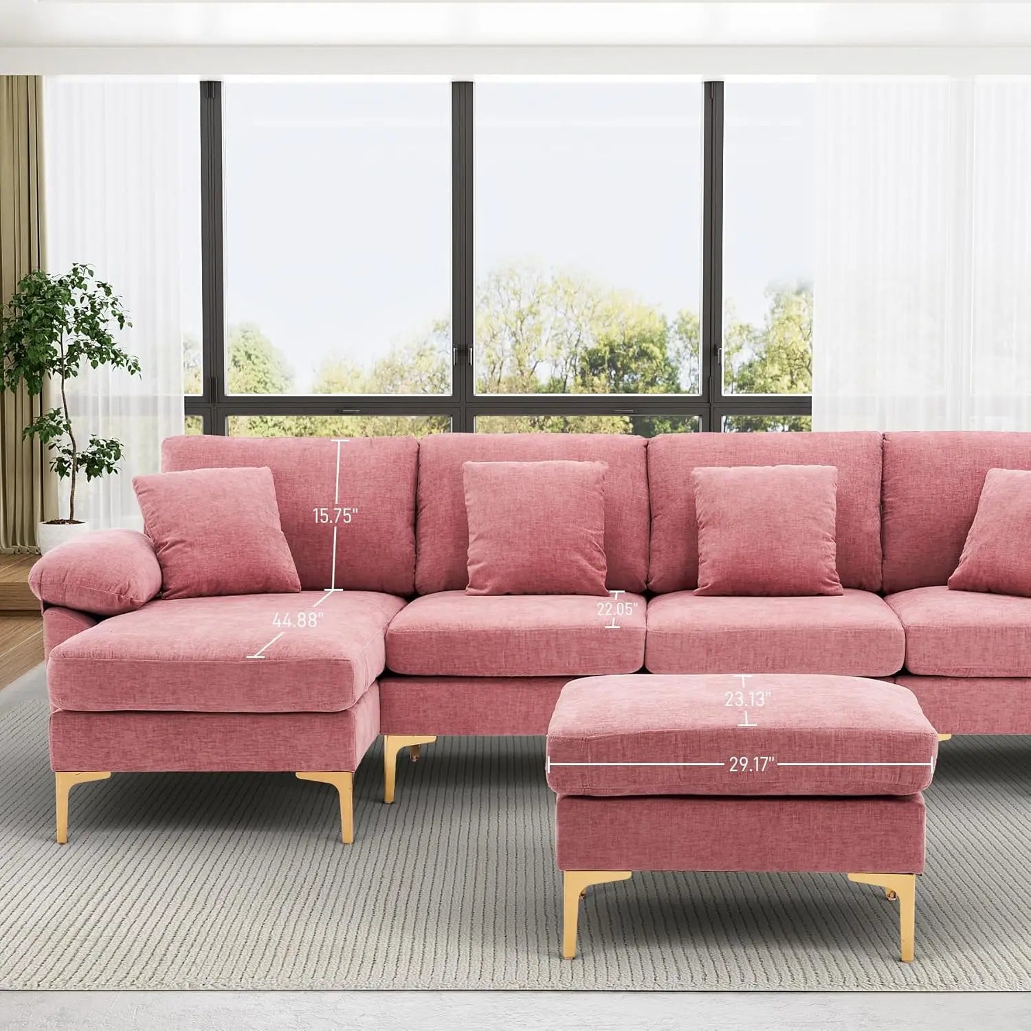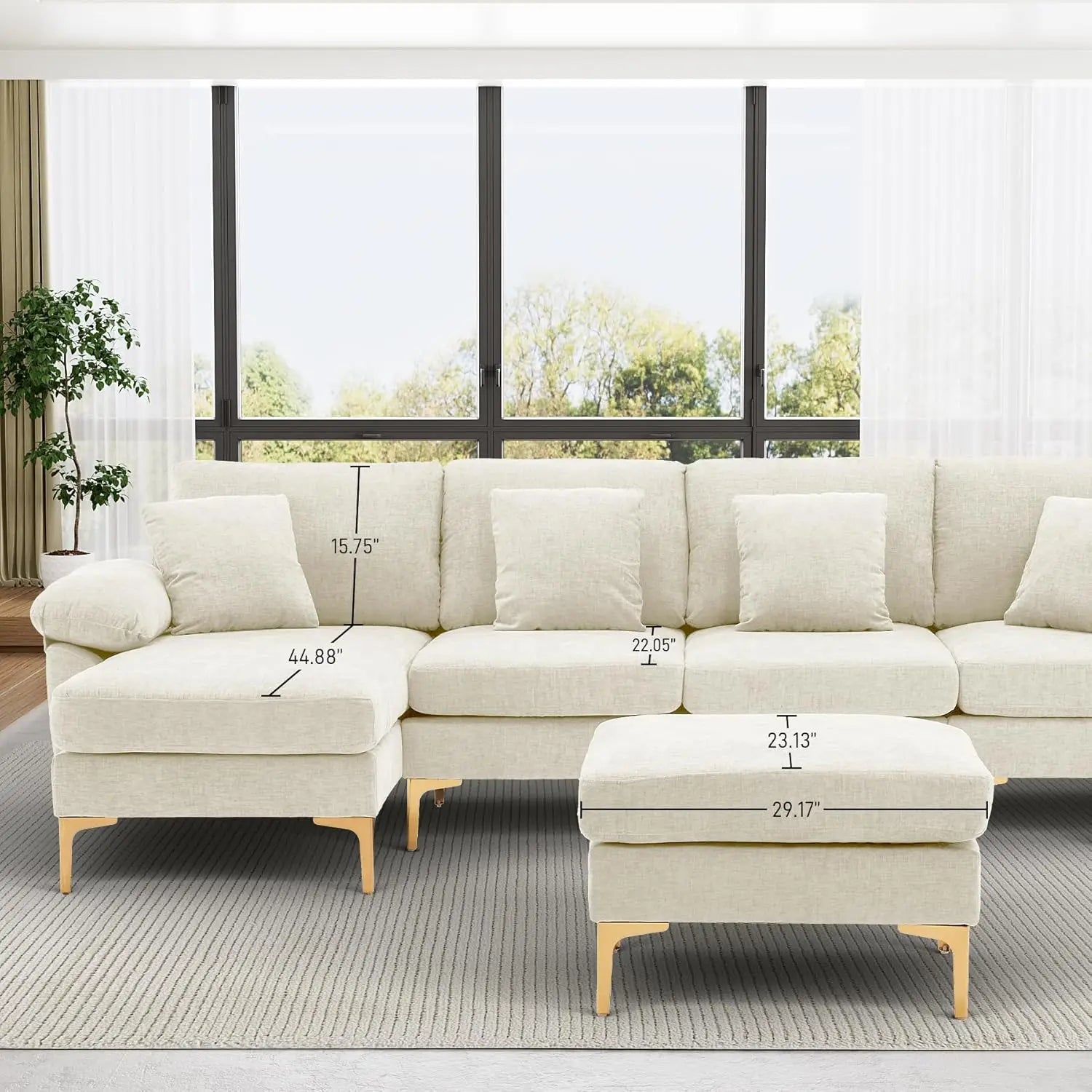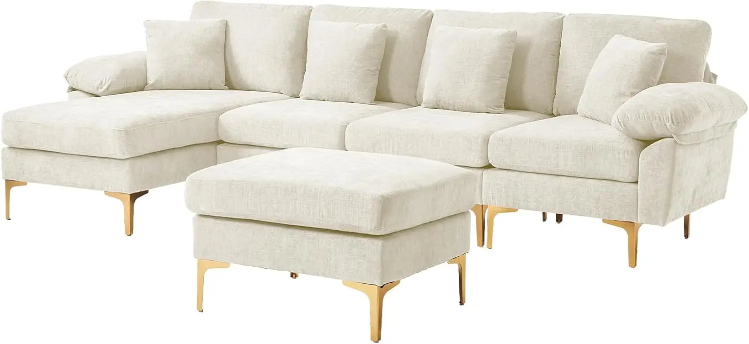 - 【Sofa Set Includes】L shape couch with chaise lounge + 1 Ottoman. The independent ottoman can be combined with the sofa to form a U-shaped sofa with double chaise.