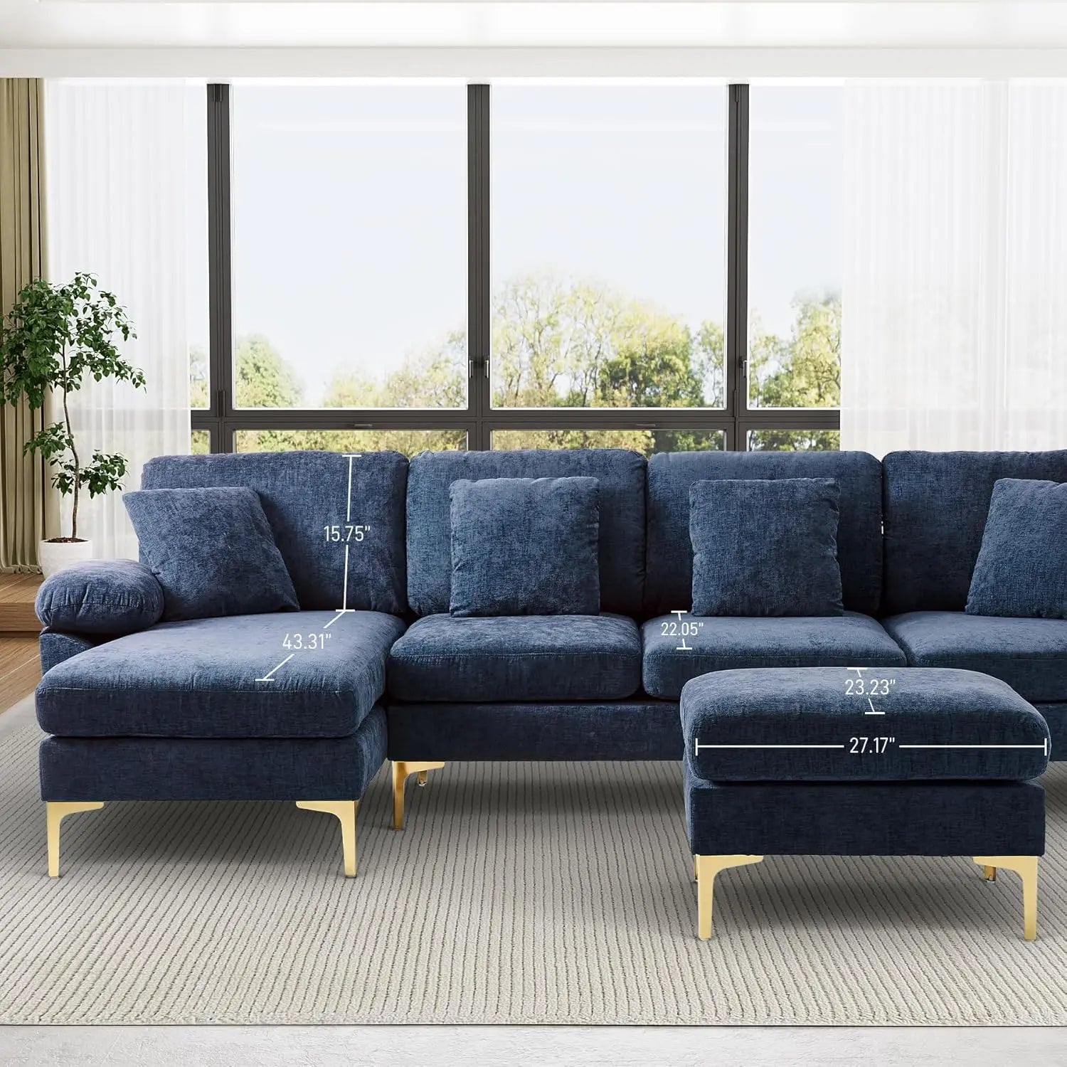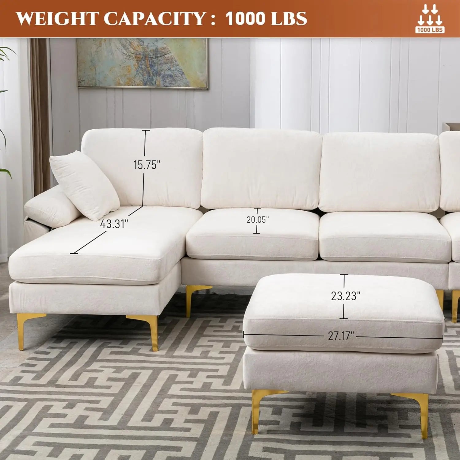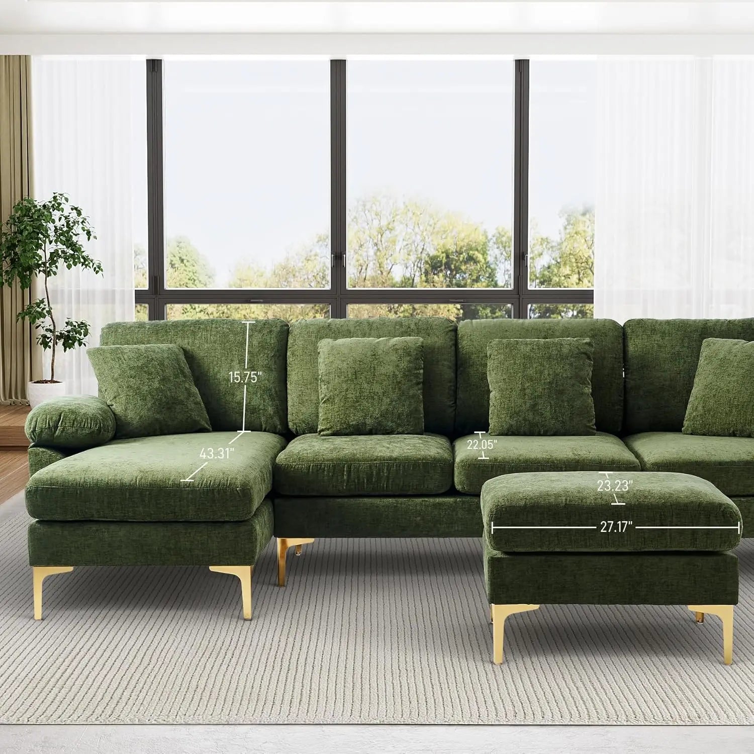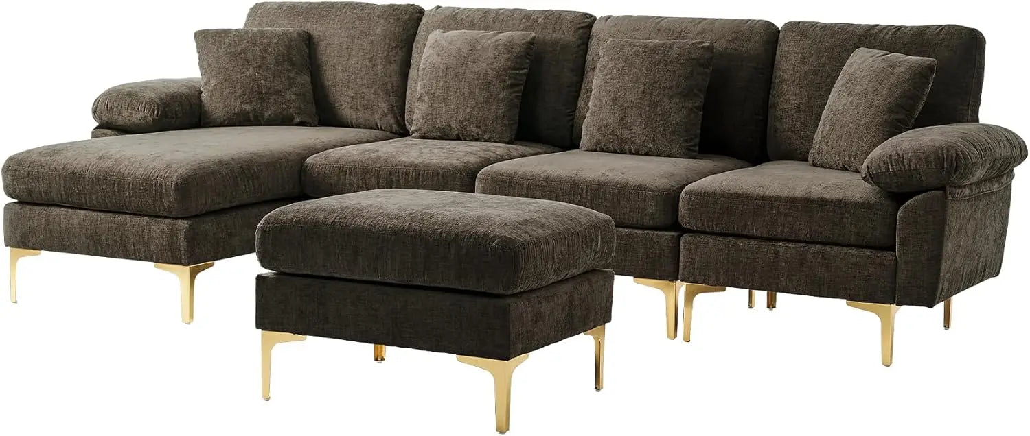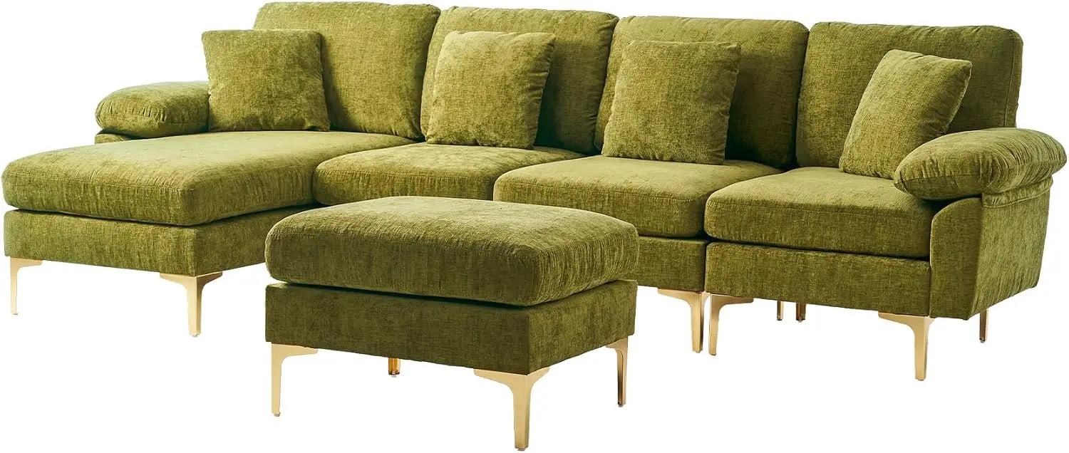 - 【Sofa Set Includes】L shape couch with chaise lounge + 1 Ottoman. The independent ottoman can be combined with the sofa to form a U-shaped sofa with double chaise.