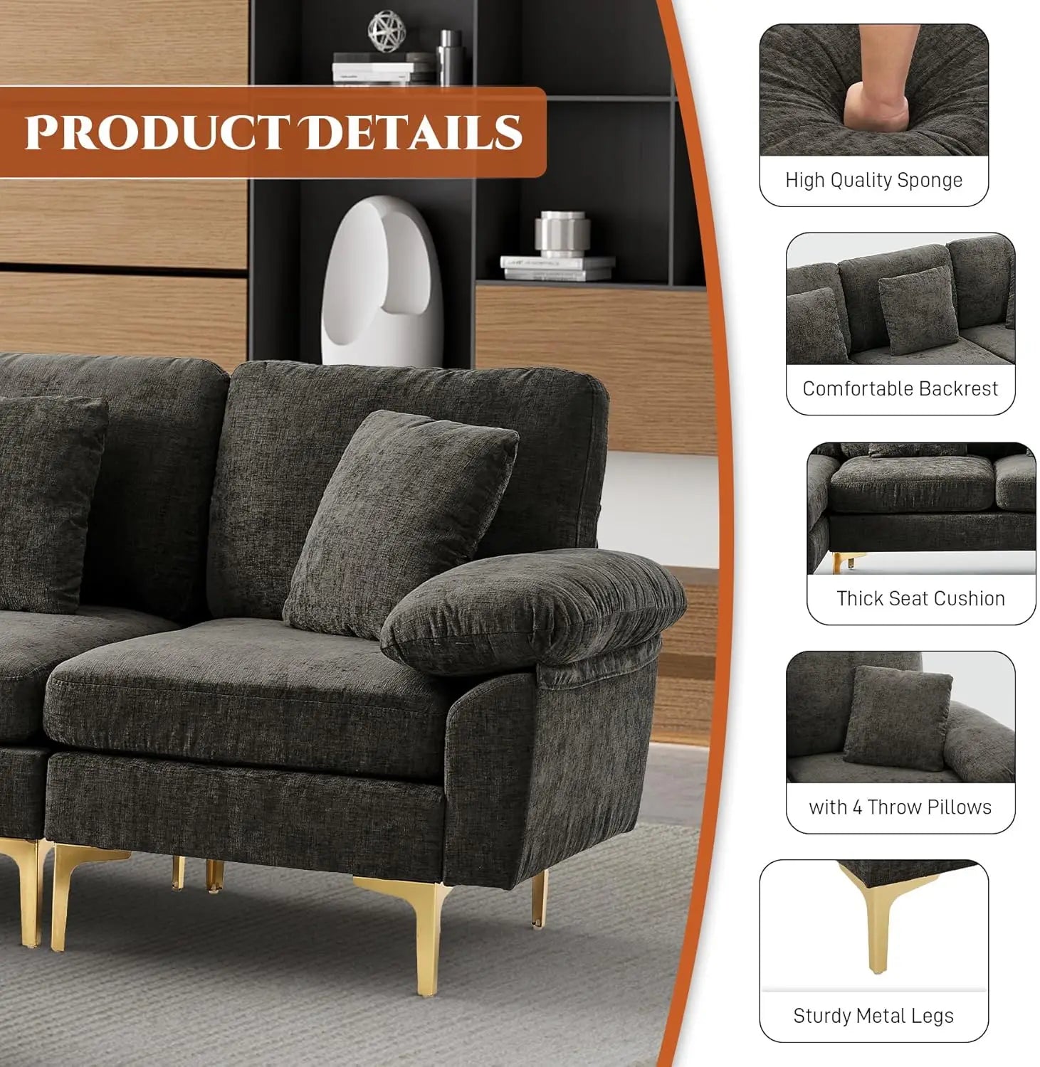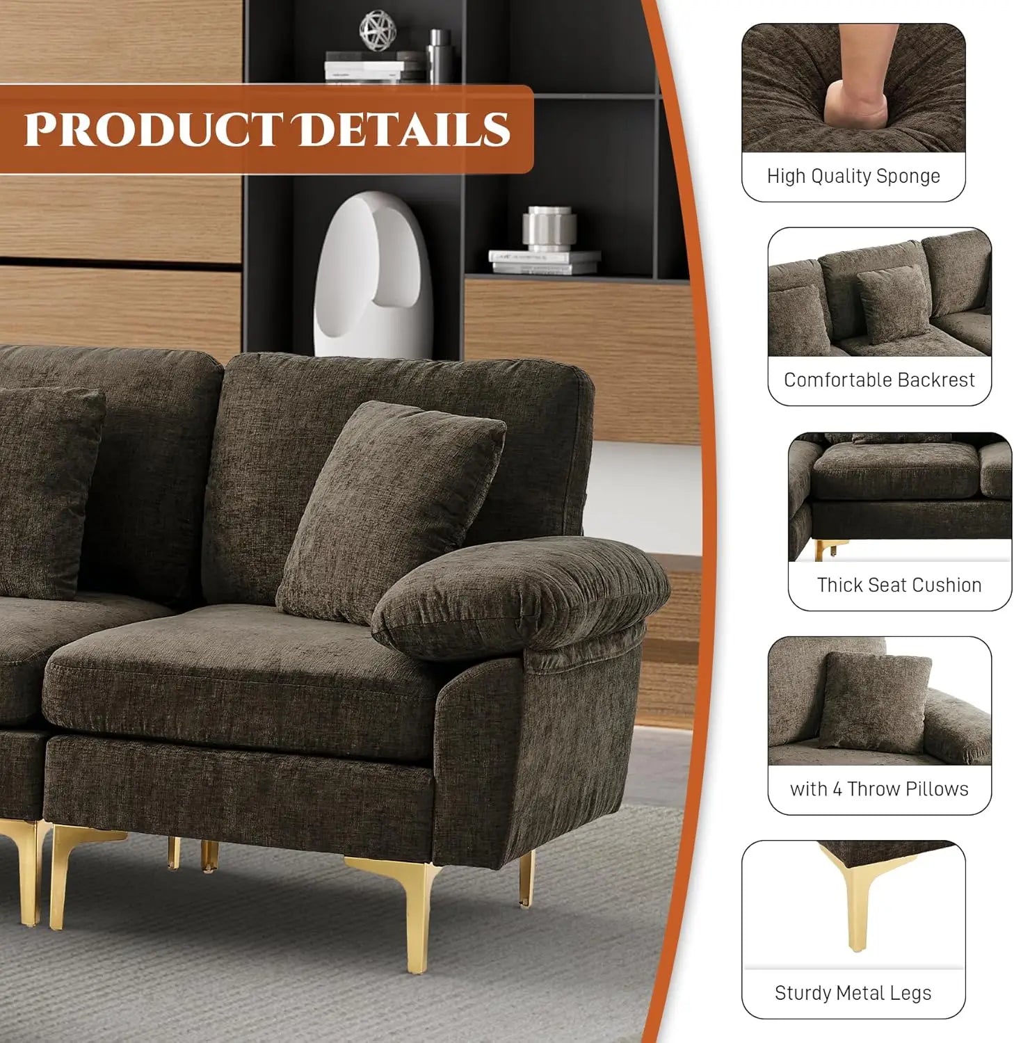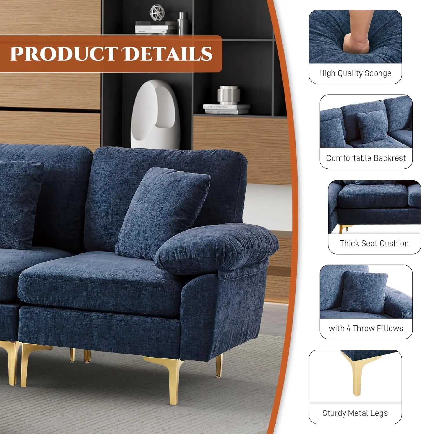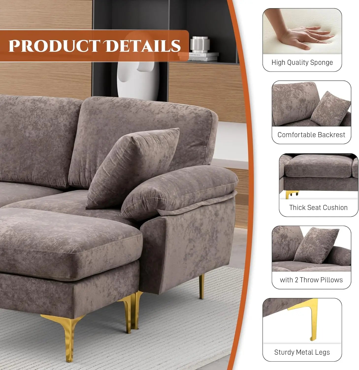 - 【Sturdy and Durable】Supported by high-quality plywood frame and chrome-plated sturdy metal legs, these sectional couches for living room are built to last for years. The seat and back cushion covers are removable and washable, you can keep clean and comfy easily.