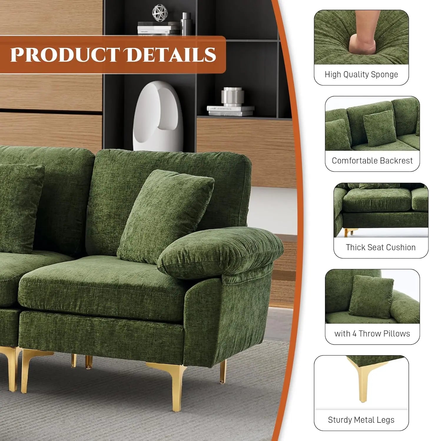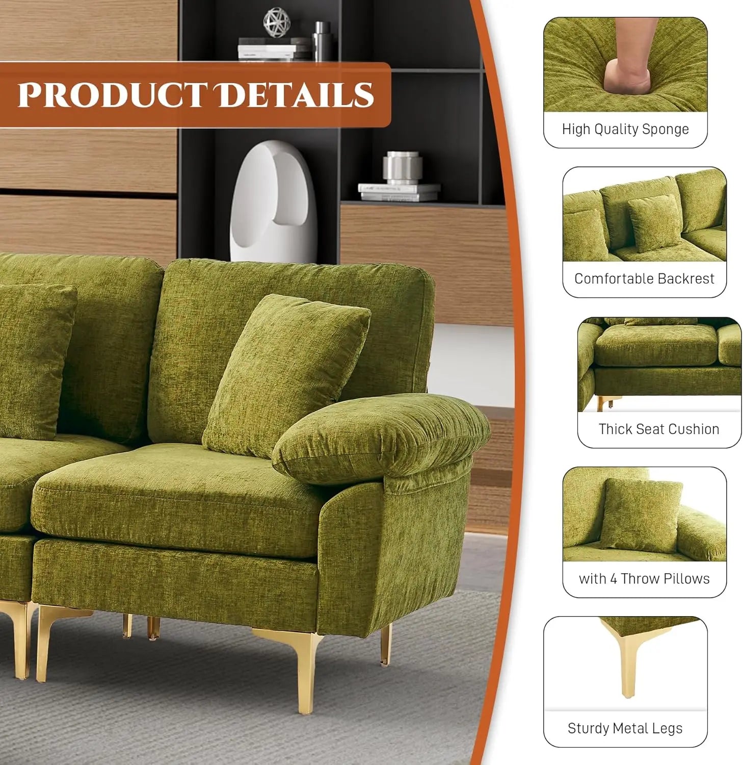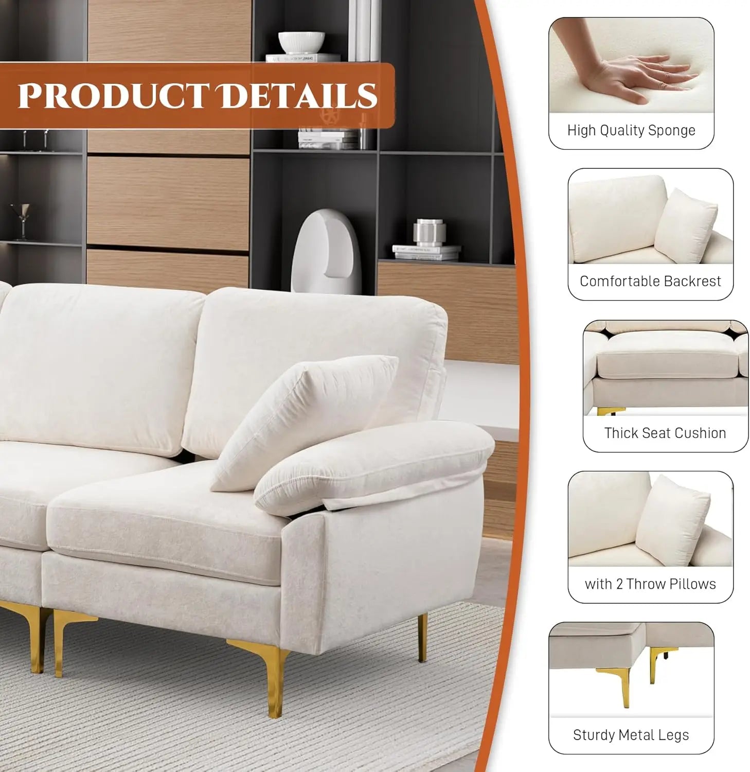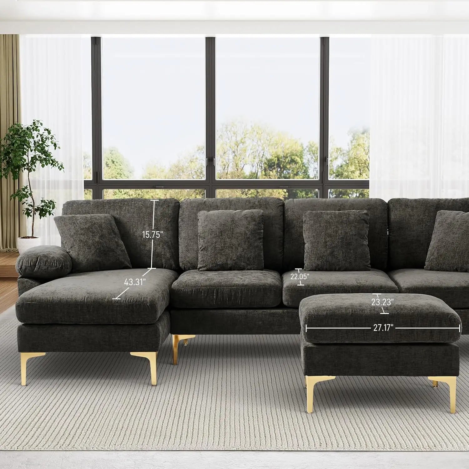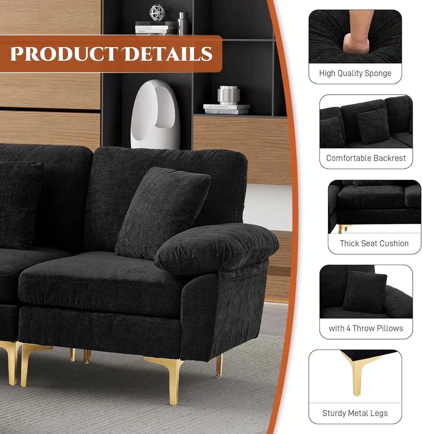 - 【Sturdy and Durable】Supported by high-quality plywood frame and chrome-plated sturdy metal legs, these sectional couches for living room are built to last for years. The seat and back cushion covers are removable and washable, you can keep clean and comfy easily.