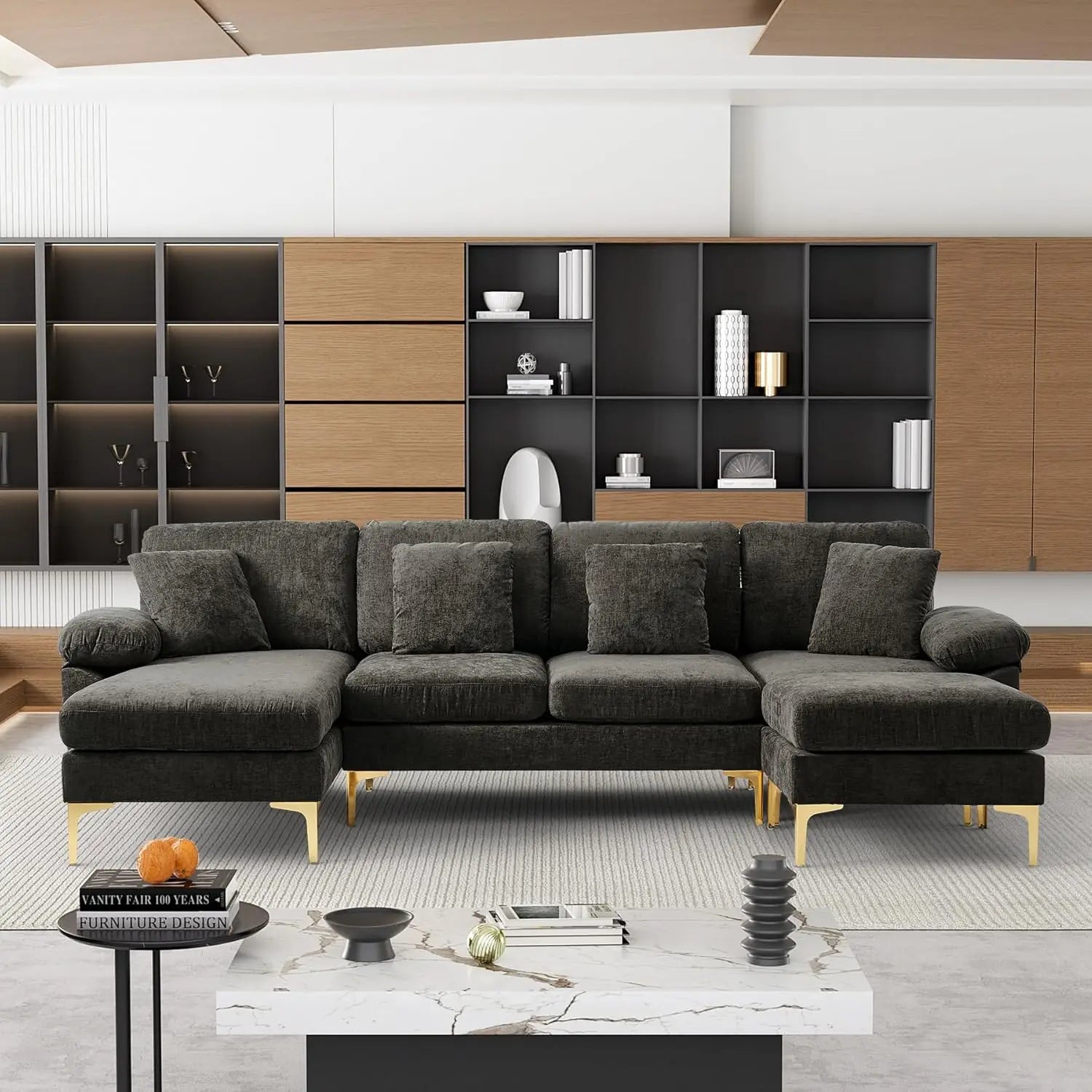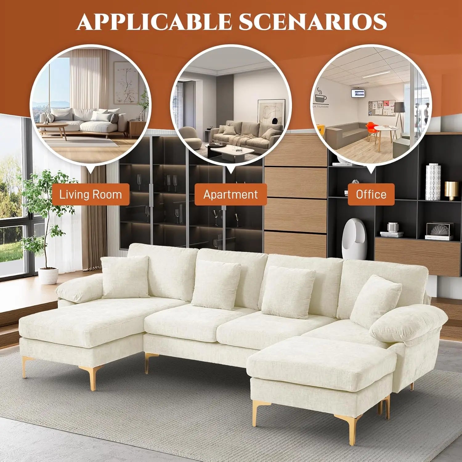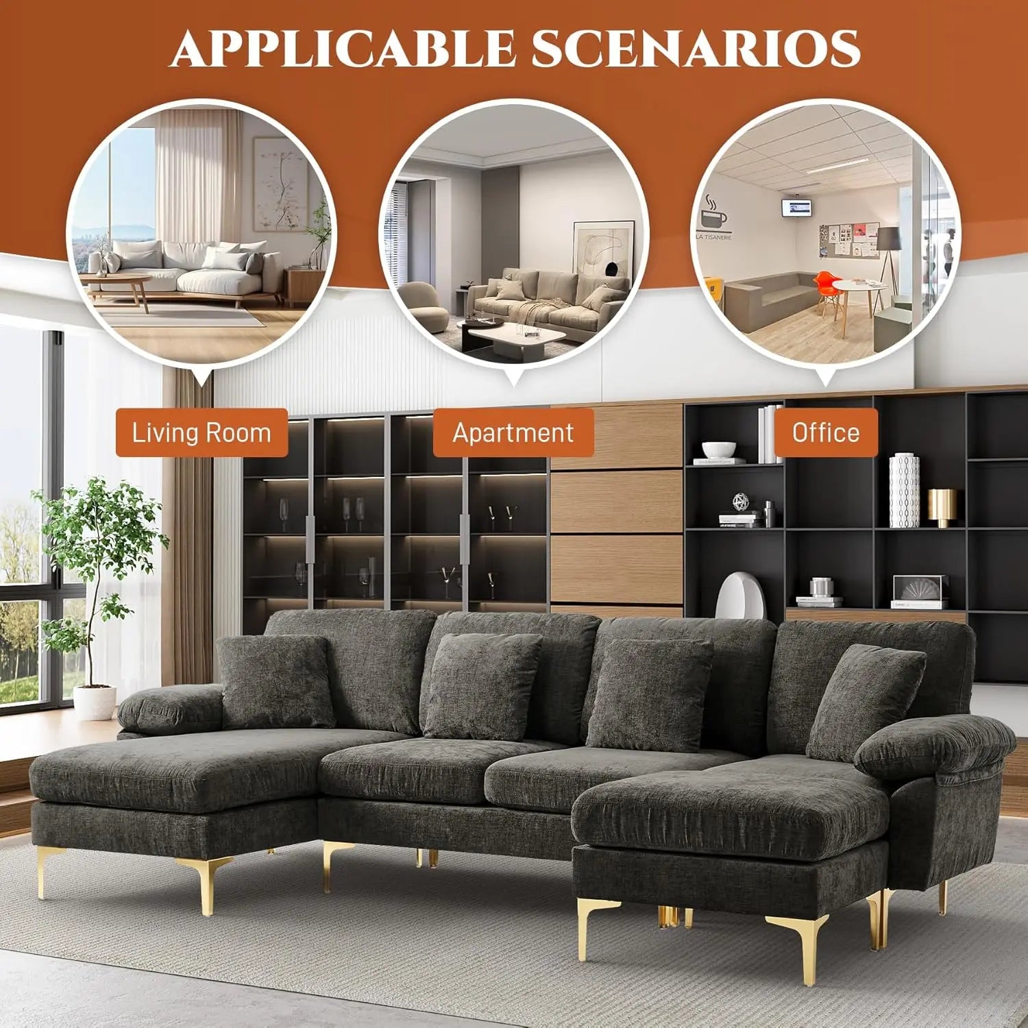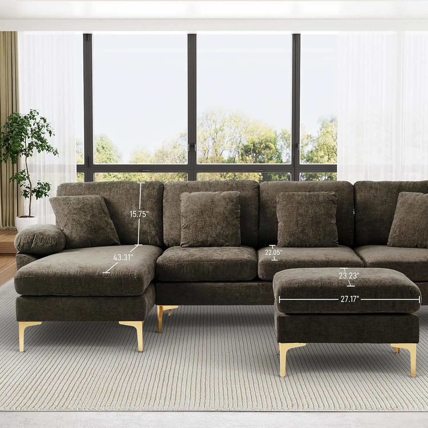 - 【Sturdy and Durable】Supported by high-quality plywood frame and chrome-plated sturdy metal legs, these sectional couches for living room are built to last for years. The seat and back cushion covers are removable and washable, you can keep clean and comfy easily.